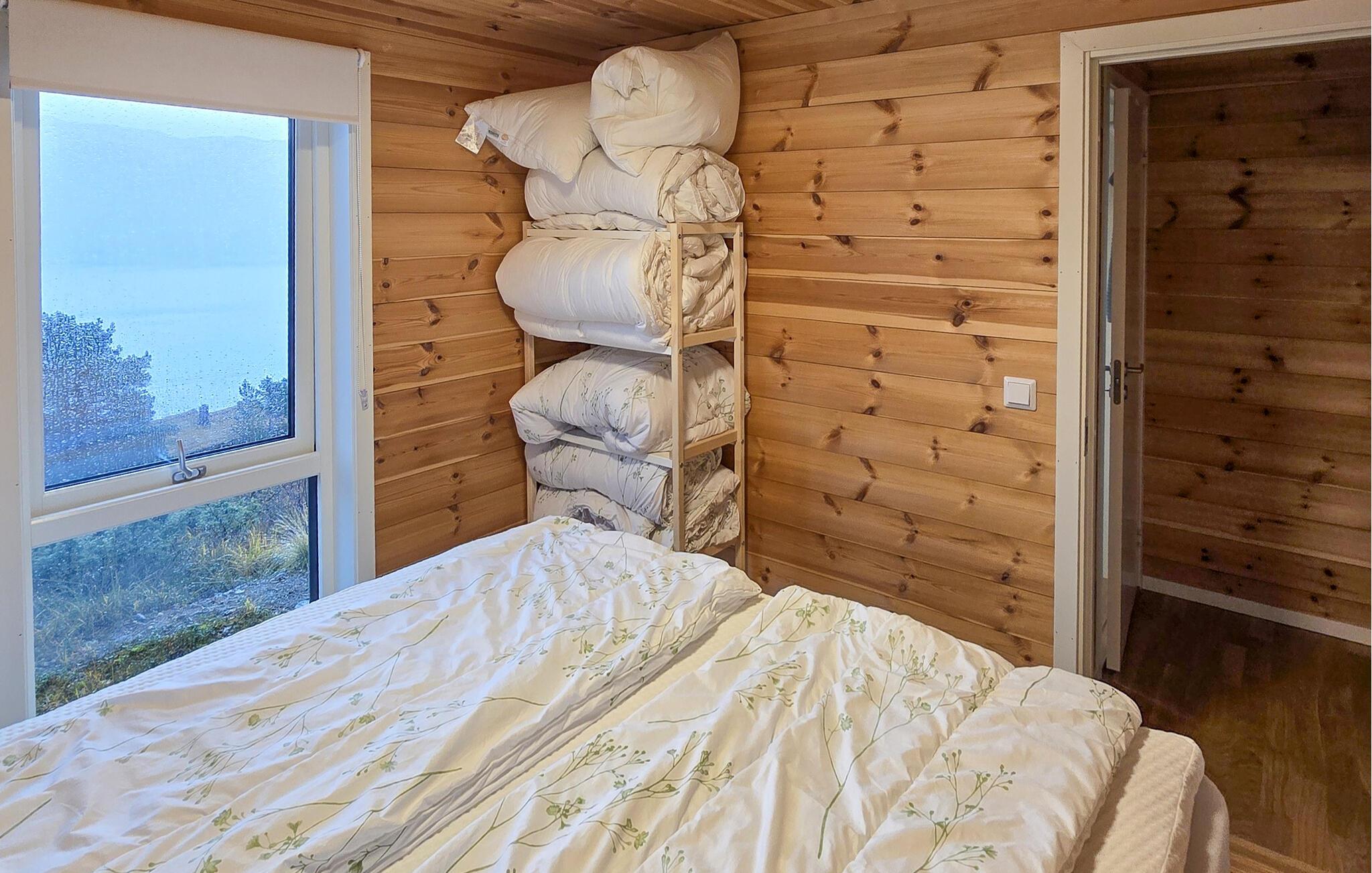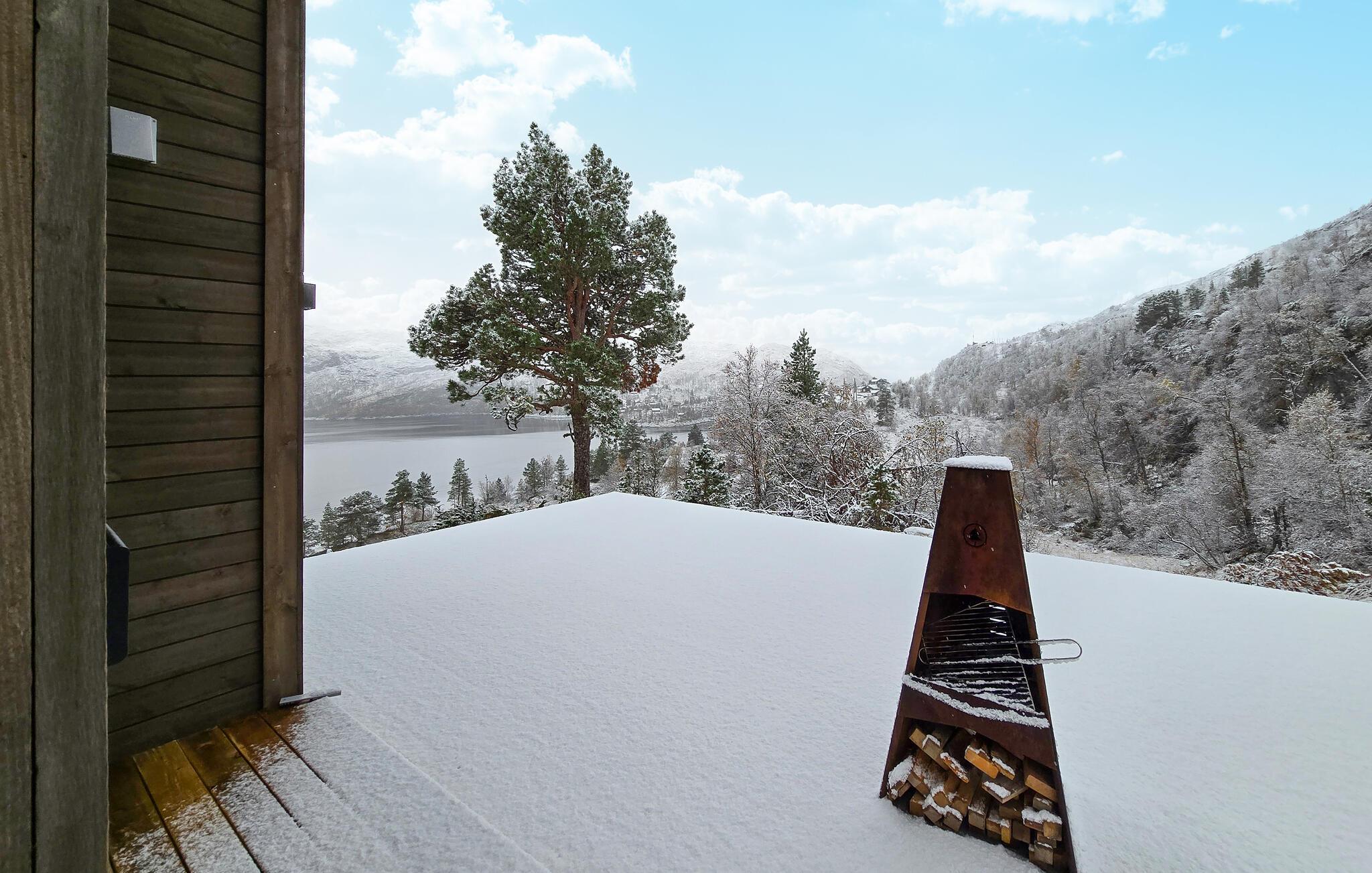 Tæt ved bredden af ??Stordalsvatnet i Stordalen kan I lade jer fortrylle af de fredfyldte omgivelser til dette feriehus og begynde dagene med en afslappet morgenmad ved spisebordet, som har panoramaudsigt over søen og de omkringliggende bjerge gennem de store vinduer. Mærk den fred, som dette sted udstråler, mens I nyder den friske luft og den storslåede udsigt. Gør det behageligt i den lyse stue med de behagelige lænestole og sofa. Slap af efter en aktiv dag, eller lad jer fordybe i en spændende bog. Brug den store terrasse til at afslutte dagene i fred og ro eller blot nyde naturens skønhed.