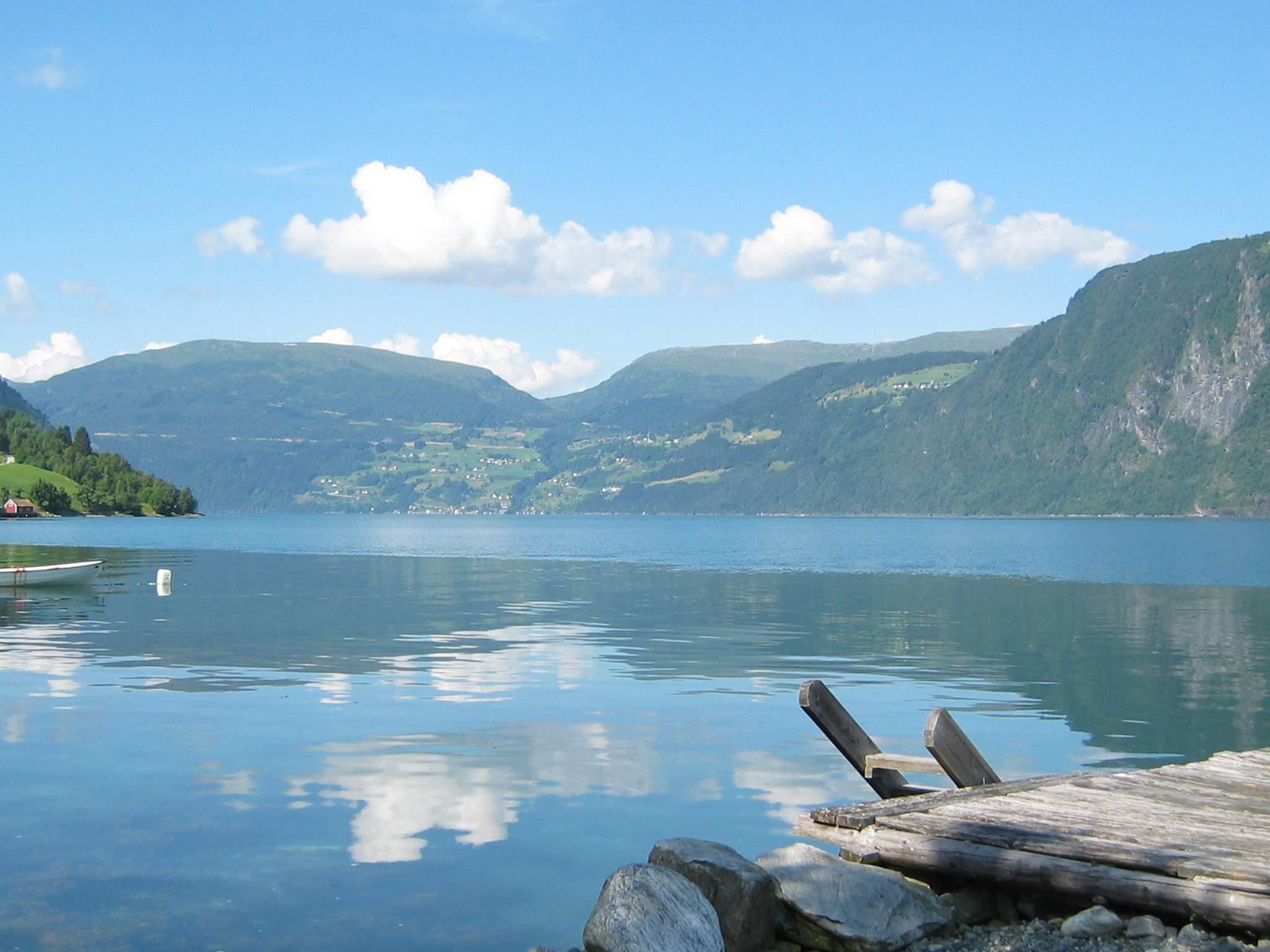 Bademuligheter 30 m. Breimselva med laks og ørret 43 km, og Breimsvatnet 39 km for stor ørret. Tettstedet Sandane 43 km. Isbreen Briksdalsbreen 60 km. På motsatt side av fjorden har du Panoramaveien 80 km unna med: utsiktspunkt med 500 m stup rett ned, eget vassmiljø med hjul som driver 7 kvernhus, sag, smie og eldhus med brødbaking. Landets eldste vetestove (vakthus) ca. 1000 år gammelt. Bagehola, en hule i fjellet hvor en lovløs skjulte seg. Tvinnefossen, en foss du kan gå bak.