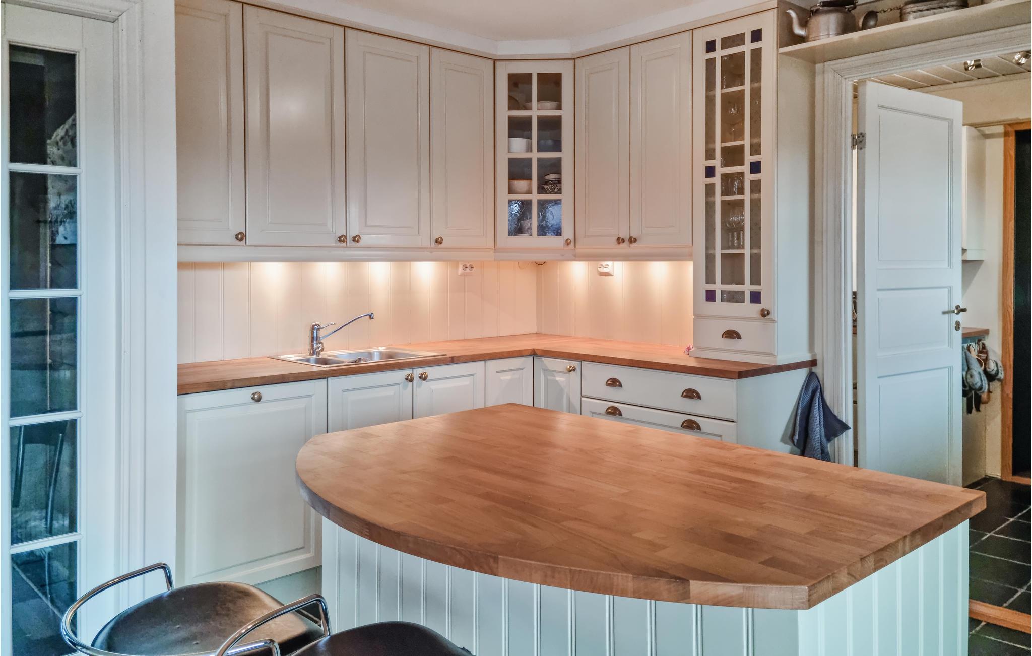 I denne smukt designede hytte kan I slappe af på husets to etager. Her kan I lade amatørkokkene trylle i køkkenet, mens andre hygger sig med brætspil. I kan samle jer om langbordet til en lækker morgenmad, og bagefter kan I udfordre hinanden til et slag pool. Om morgenen kan I også gå ud på terrassen og indånde den friske luft helt ned i lungerne, før I går en tur til søen.