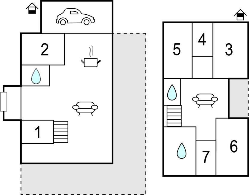 Soveværelse (nr. 6) - 1 Soveplads. (Enkeltseng(e)). 2 Sovepladser. (Dobbeltseng(e)).