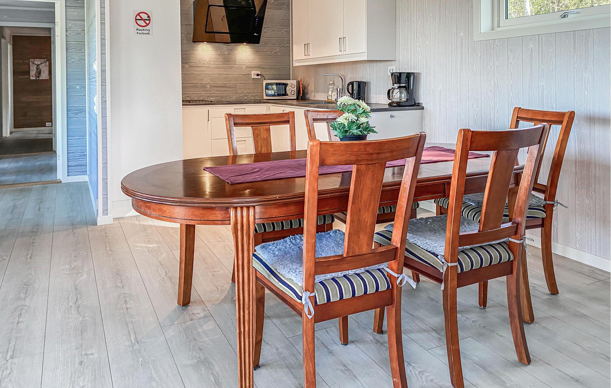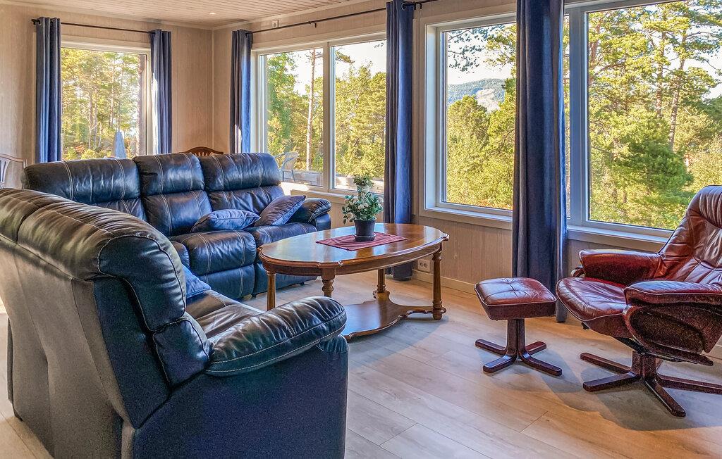 Dette charmerende feriehus i Torvikbukt giver jer et roligt tilflugtssted direkte ved fjorden. Den hyggelige og moderne indretning skaber en indbydende atmosfære, hvor I straks vil føle jer hjemme. Store vinduer lukker masser af dagslys ind og giver en vidunderlig udsigt til den omkringliggende natur. Træd ud på træterrassen og lyt til fuglene i de omkringliggende træer.