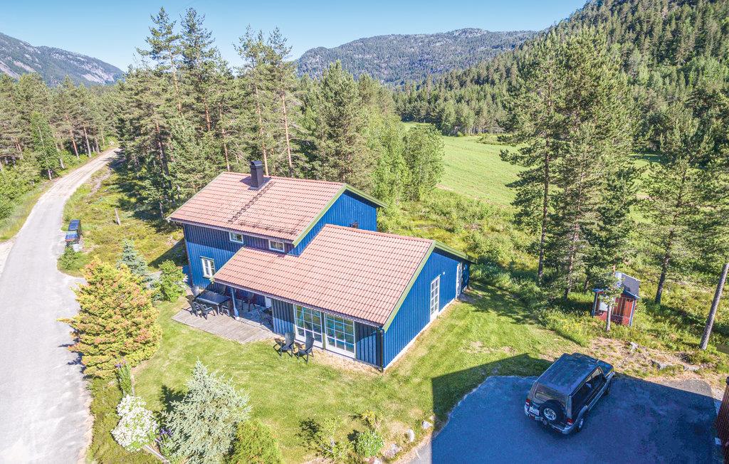 Feriehuset er uforstyrret i et skovklædt område, kun 50 m fra Fosslaugfossen og Tveitvatnet. Der er gode børnevenlige bademuligheder på en lille privat sandstrand. Feriehusets båd venter også på jer der, så prøv lykken med at fiske fra båden. Ellers byder sommerhusets omgivelser på meget gode vandreture i skoven og bjergene. Om vinteren kan I leje langrendsski fra Hillestad Gallery.