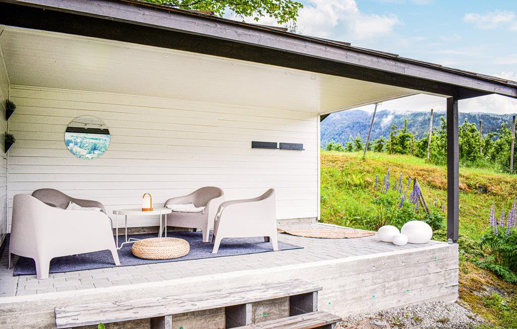 Der er en vidunderlig fjordudsigt fra huset, og flere terrasser med fuld solskin.