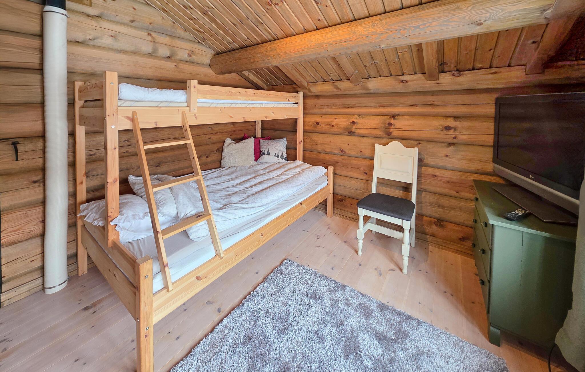 Dette maleriske hus, beliggende i bjergene, er perfekt, hvis I længes efter en ferie omgivet af naturen. Rigeligt med brænde, en behagelig sofa og en brændeovn skaber en atmosfære, hvor I hurtigt kan slappe af. Tilbring hyggelige eftermiddage med at spille kort med børnene eller se de nyeste tv-serier sammen.