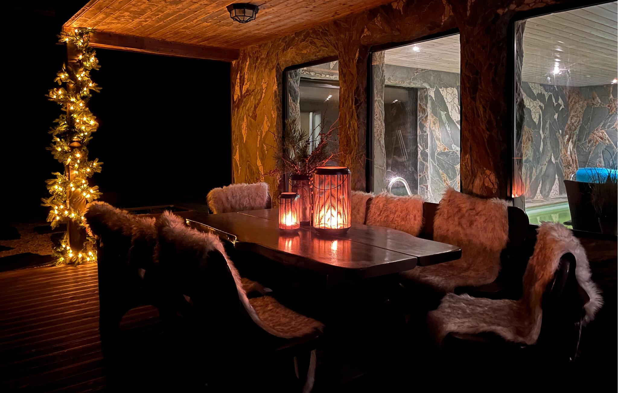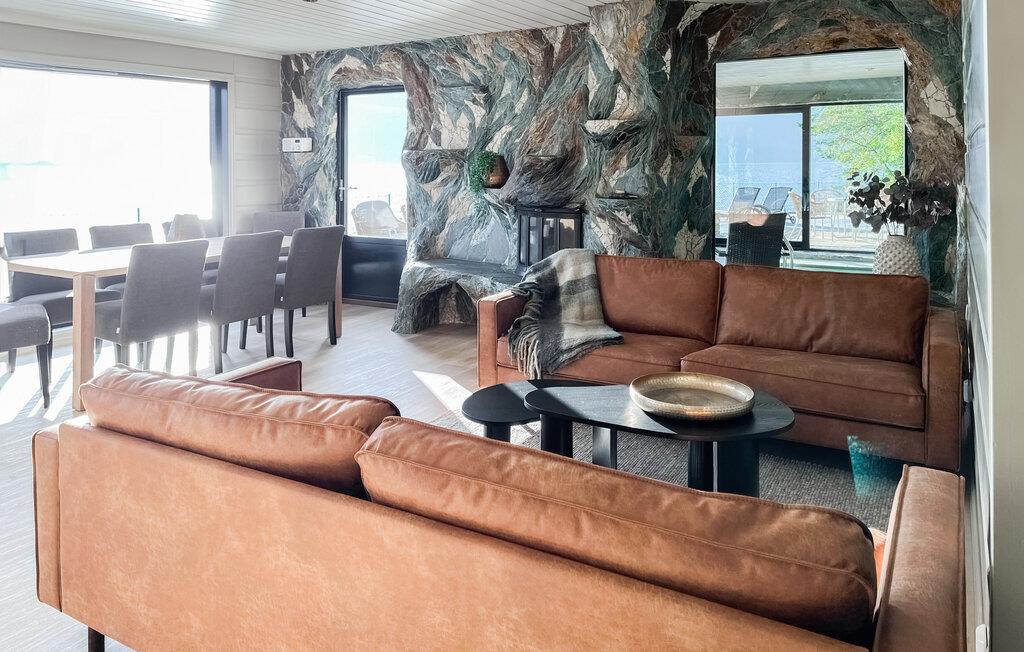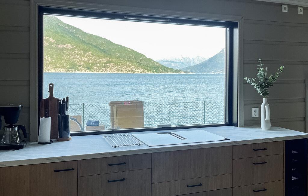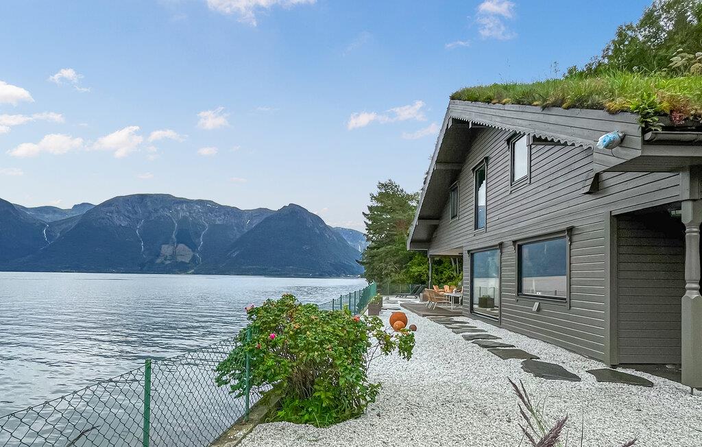 Oplev en vidunderlig luksusferie i dette luksusferiehus, som året rundt giver jer en helt særlig ferieoplevelse. Den stilfulde indretning byder jeg velkommen. Slap af i den rummelige opholdsstue med bløde sofaer, panoramavinduer og direkte udsigt over vandet. Nyd varmen fra pejsen, eller sæt jer sammen ved spisebordet. Lav mad i det moderne køkken med udsigt til det omgivende bjerglandskab. Brug poolen, spabadet og saunaen til ren afslapning, eller vær aktiv i fitnessrummet.