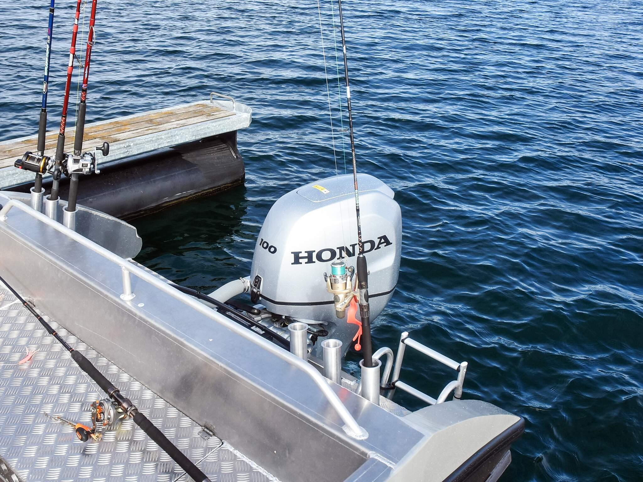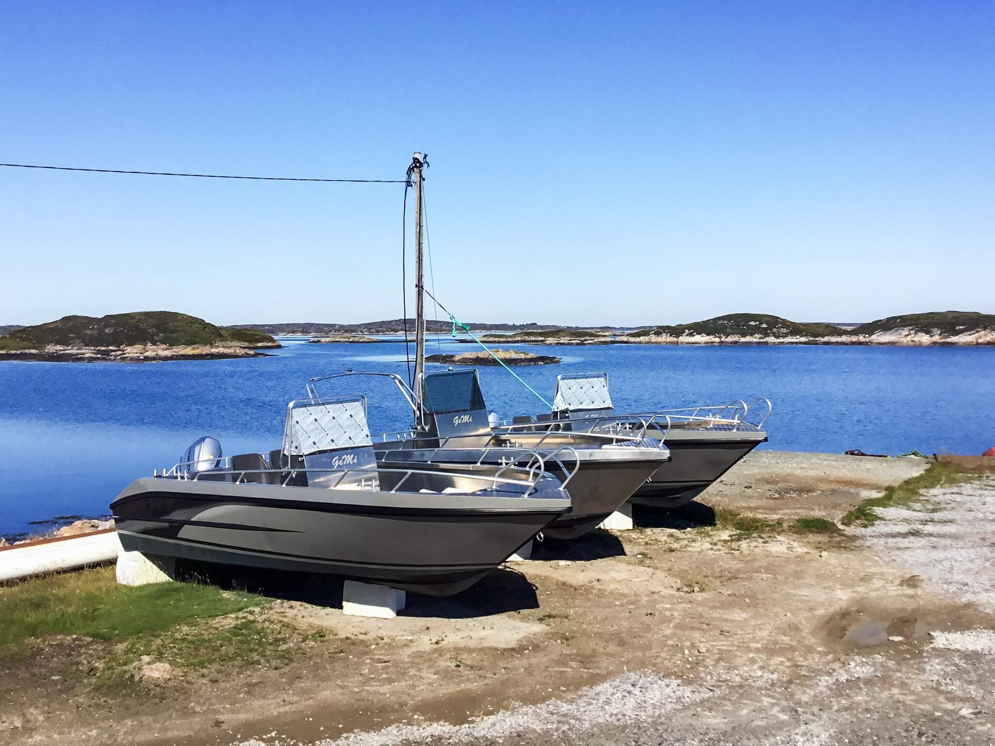 Til leie, den ene båten på forespørsel: 2 x 21 fots Gemi 630 båt med 100 HK Honda 4-taktsmotor, Garmin 5-toms GPS/kartplotter/ekkolodd. Flytevester inklusiv.