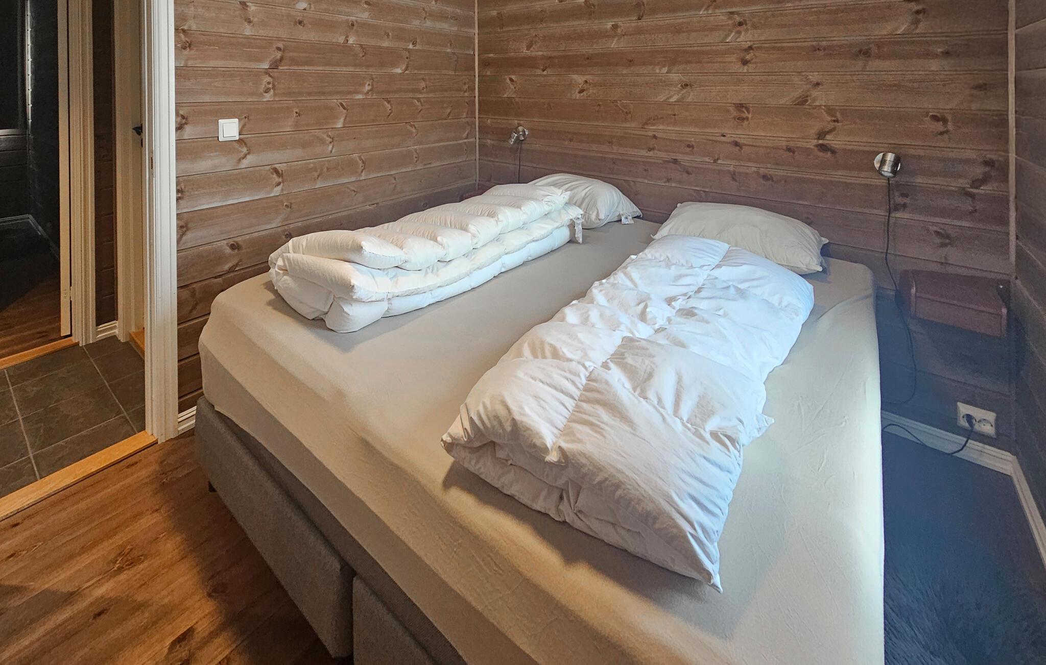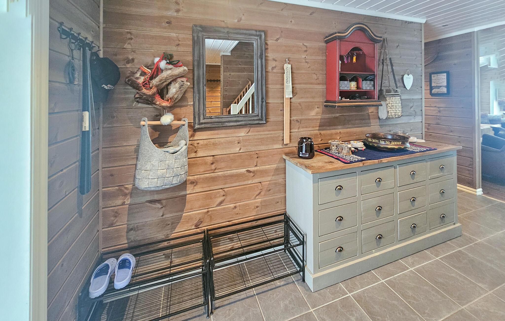 Nyd en hyggelig ferie i dette komfortable feriehus med sauna og fortryllende panoramaudsigt. Beliggende i en sublim, høj beliggenhed og omgivet af Valdres rolige natur, venter denne hyggelige og rummelige hytte på uforglemmelige dage med venner eller familie. Saml jer til lange måltider omkring det lange spisebord, forkæl jer selv med afslappende øjeblikke i saunaen, hold harmoniske spilleaftener i den hyggelige opholdsstue, eller nyd en god bog, mens I lytter til den bløde knitren fra pejsen. På jeres åbne terrasse kan I nyde en varm drik, mens I kigger ud over Jotunheimen Nationalpark. Tænd op i grillen og oplev stemningsfulde timer under stjernehimlen. Oplev den uberørte natur på idylliske vandrestier som Bondens Vei i Valdres eller bestigning af Nøskampen. Cykl gennem det fantastiske landskab med frilandsgårde i Vaset eller prøv lykken med at fiske i rolige, klare søer. Fordyb jer i traditionel kultur på Valdres Folkemuseum i Fagernes, og om vinteren kan I nyde langrendsløjperne og pisterne på Vaset skisportssteder.