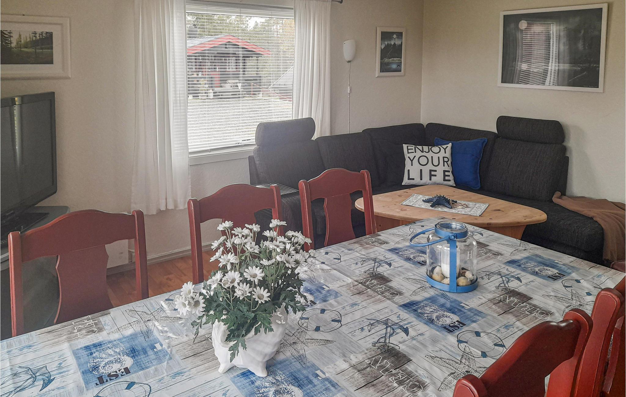 Mærk den venlige atmosfære i dette typisk norske hus. Træhuset udstråler varme og er det ideelle feriested for familier og naturglade gæster. Træd ind i den hyggelige opholdsstue, og hyg jer sammen i sofaområdet. Brug det store spisebord til fælles måltider og lange aftener med samtaler og sjove spil. Det praktiske køkken med god skabsplads giver jer mulighed for at tilberede lækre retter. Nyd udsigten til den omkringliggende natur gennem vinduerne.