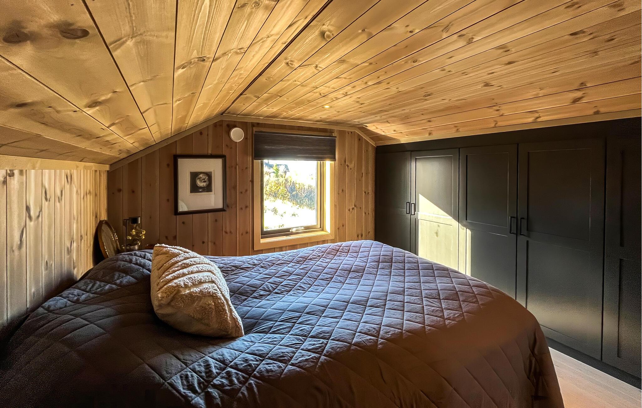 Dette hus kan prale af en fantastisk beliggenhed og lyse opholdsrum med store vinduer, der tilbyder en betagende udsigt over det omkringliggende landskab. Slap af i sofaerne, læs en bog ved pejsen eller tilbered lækre måltider i køkkenet. Efter en lang dag i naturen inviterer saunaen jer til at slappe af.