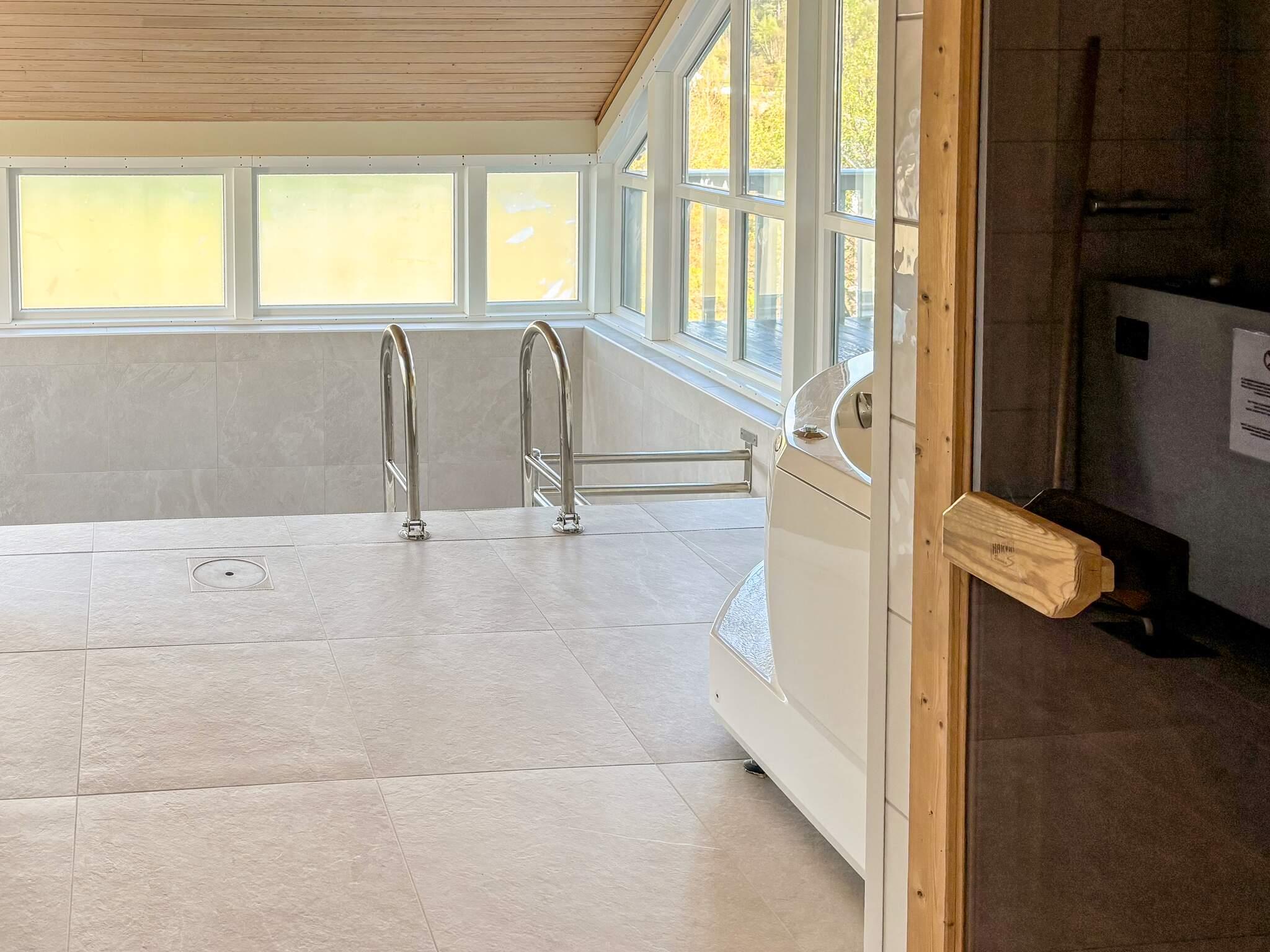 Flott feriehus i naturskjønne omgivelser med eget innendørs svømmebasseng, boblebad og sauna.