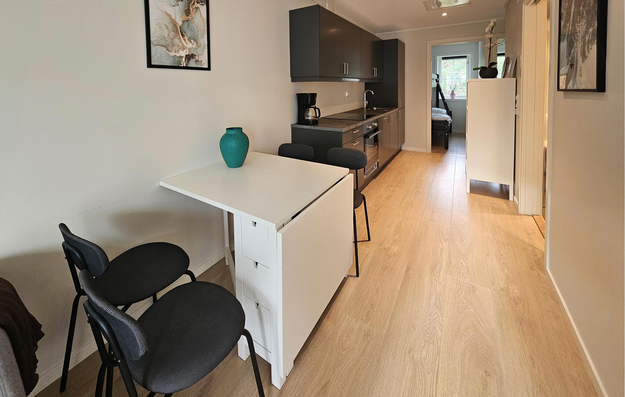 Oplev en afslappende og aktiv ferie i denne charmerende ferielejlighed nær attraktive destinationer. Denne lyse og komfortable ferielejlighed tilbyder et hyggeligt tilflugtssted i enhver sæson, hvor I kan slappe af med venner eller familie og planlægge jeres aktiviteter. Tilbered jeres yndlingsretter i det moderne, åbne køkken, nyd harmoniske måltider og hyg jer sammen i sofaen med et brætspil efter en lang dag udenfor. Jeres altan er det ideelle sted til en friskbrygget morgenkaffe, mens I nyder den panoramiske udsigt over bjergene. På den fælles grund finder jeres børn indbydende legeområder, hvor de kan få nye venner. Oplev idylliske vandrestier, cykl til Nisser-søen eller Vråvatn for en forfriskende svømmetur eller kanotur, eller forfølg jeres passion på den nærliggende golfbane. I kan også besøge Vrådal Naturcenter, prøve lokale retter i en hyggelig restaurant og nyde de nærliggende langrendsløjper og pister om vinteren.