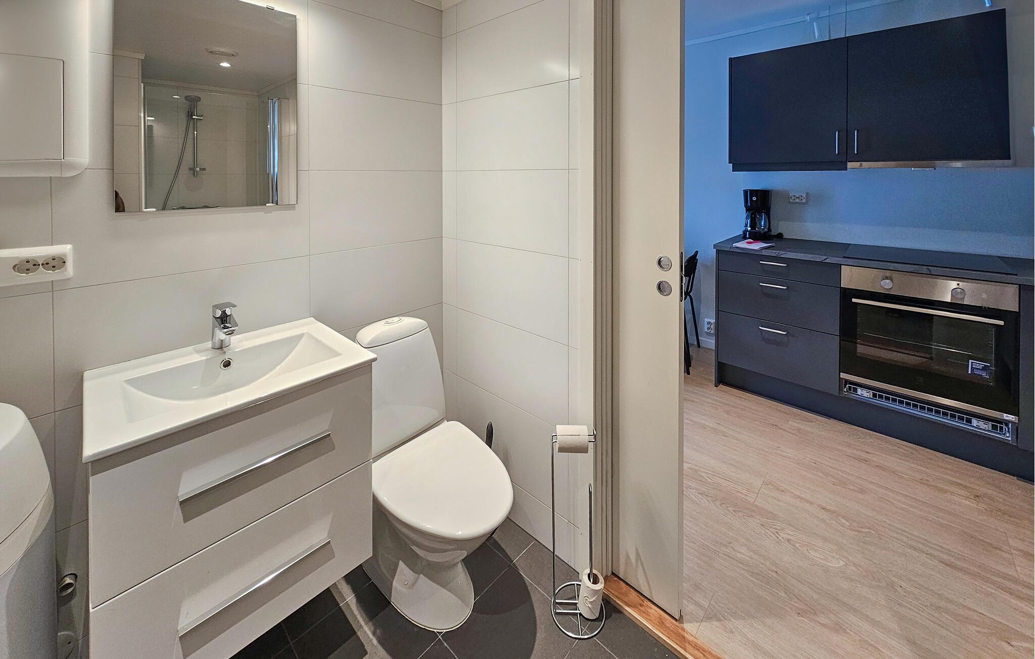 Badeværelse (nr. 1) - WC. Varmt og koldt vand. Bruser