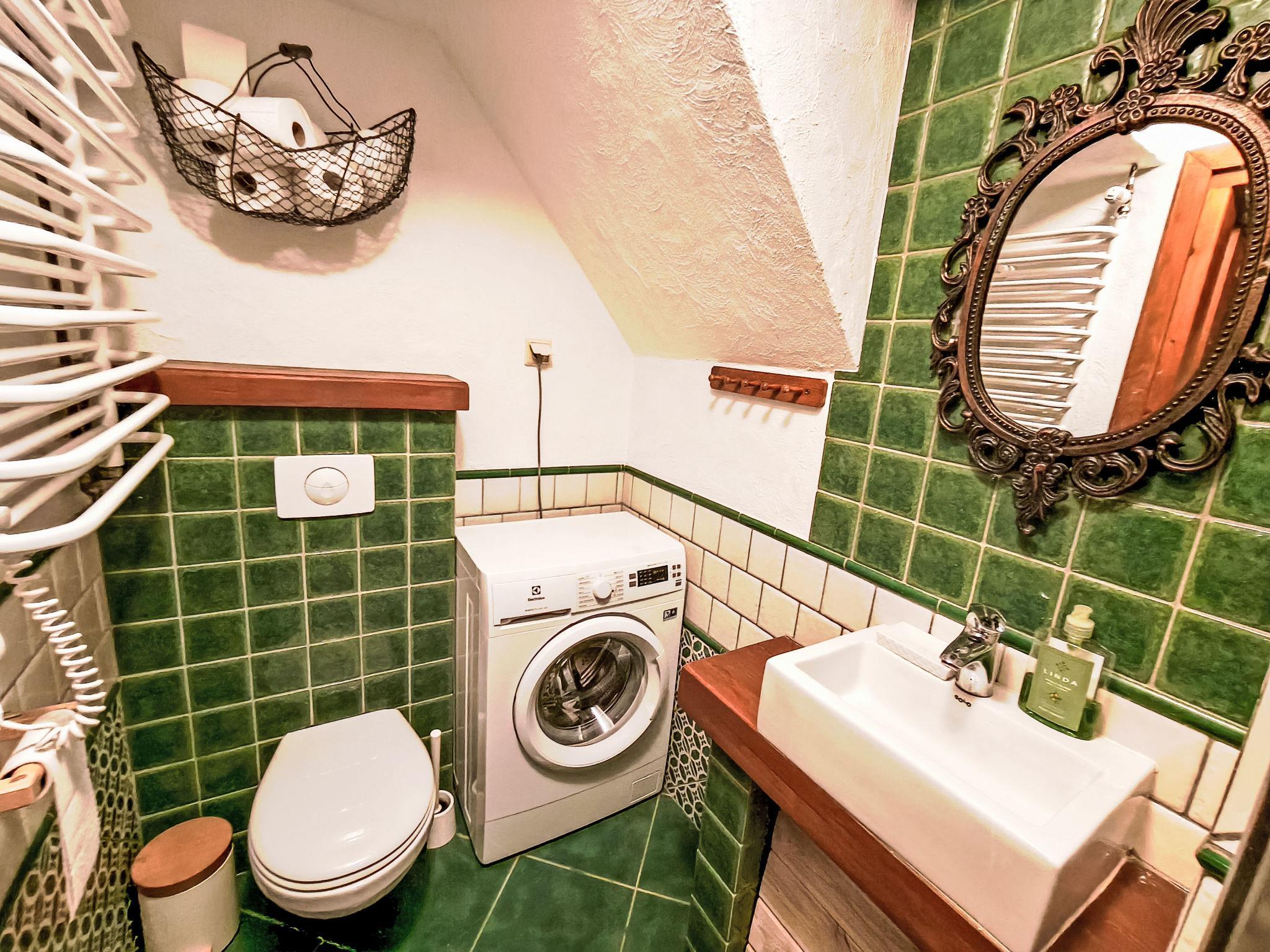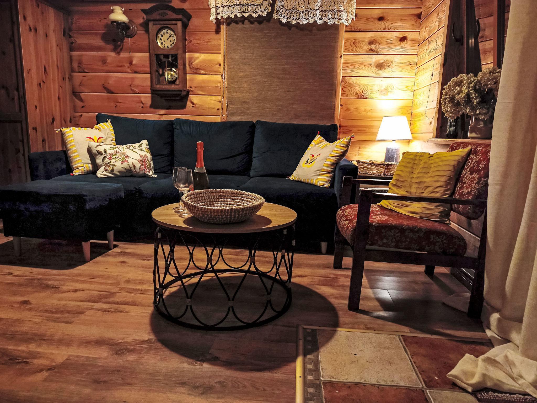 "Julia", 2-room apartment. Practical furnishings: living/sleeping room with 1 sofabed (140 cm, length 200 cm), open-hearth fireplace, dining table and TV. Exit to the terrace. 1 room 9 m2 with 1 double bed (140 cm, length 200 cm). Open kitchen (dishwasher, 4 ceramic glass hob hotplates, microwave). Shower/WC. Terrace, garden. Maximum 1 pet/ dog allowed. No internal connecting door between the separated properties. Apartment PL1723.300.2 and PL1723.300.3 are located on the same plot (they can be rented as a whole: house PL1723.300.2).
