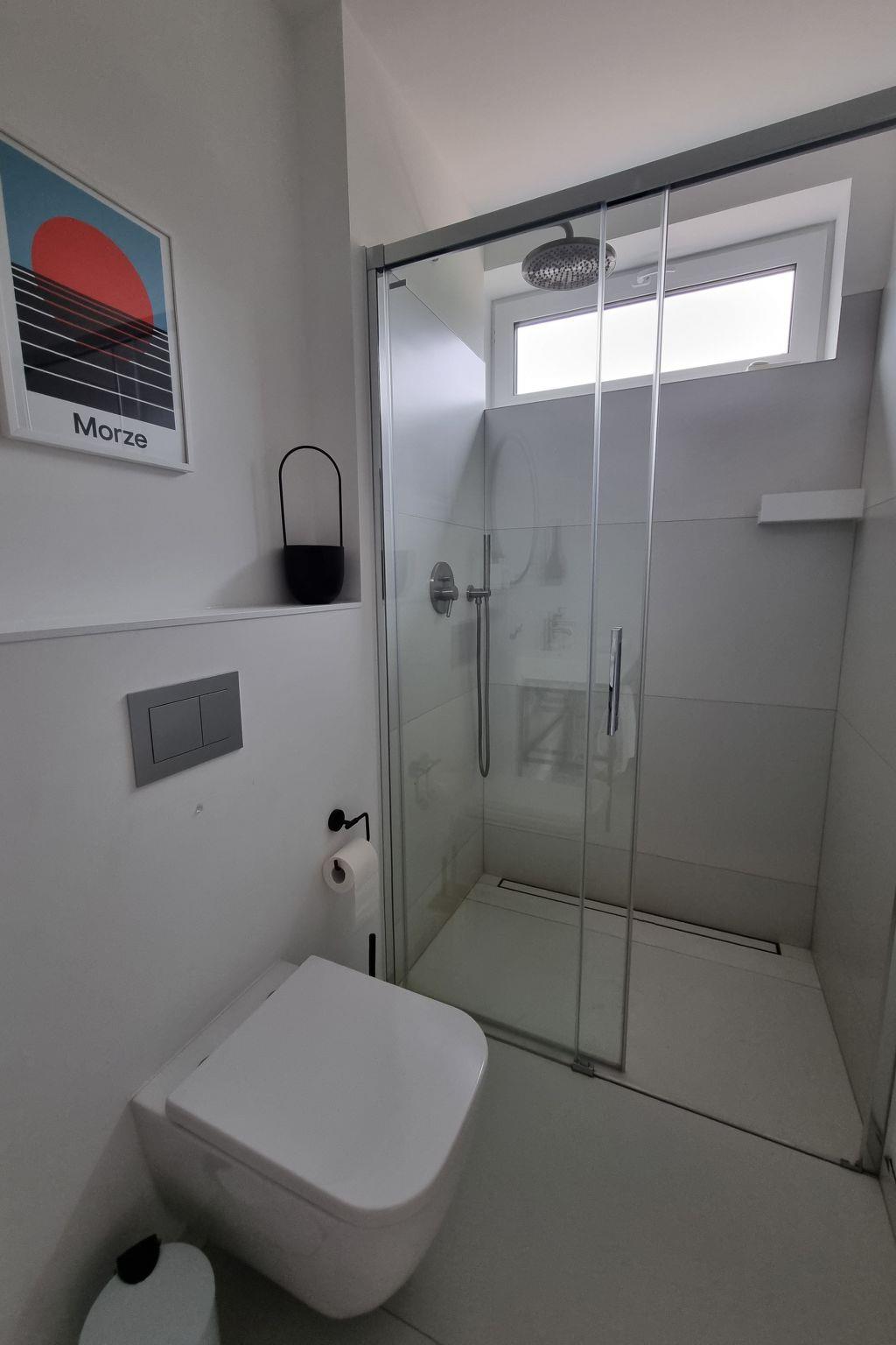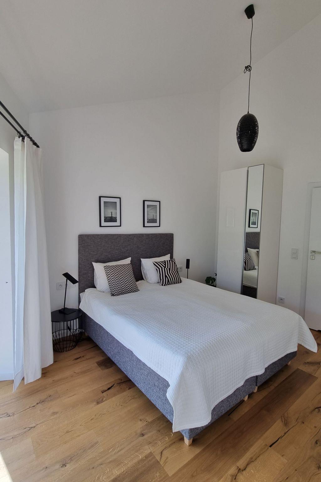 For groups of up to six people, we have spacious houses with a living room, a kitchen, two comfortable bedrooms, each with its own bathroom and shower, and an additional 1.6 x 2 metre bed on the gallery. Our houses are fully equipped and offer you a comfortable stay. For your convenience, our houses are equipped with modern kitchen facilities such as a fridge, dishwasher, induction hob and complete crockery.
