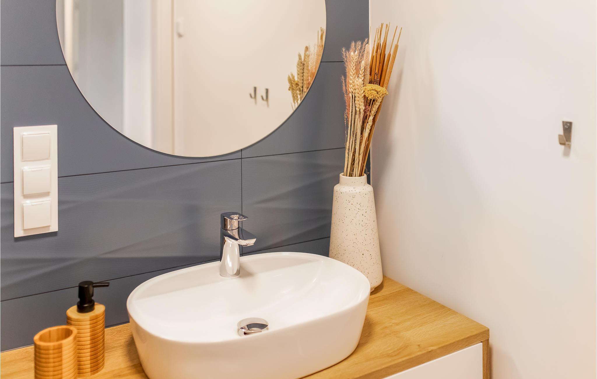 Dette skønne feriehus ligger på en grund med flere feriehuse. Her får I en dejlig base i de moderne, smagfulde moderne lokaler, som giver jer gode rammer til at slappe af. De store vinduespartier lukker det naturlige lys ind i rummene, og skulle I trænge til lidt ekstra forkælelse oven på en lang dag, kan I læne jer tilbage i badekarret.
