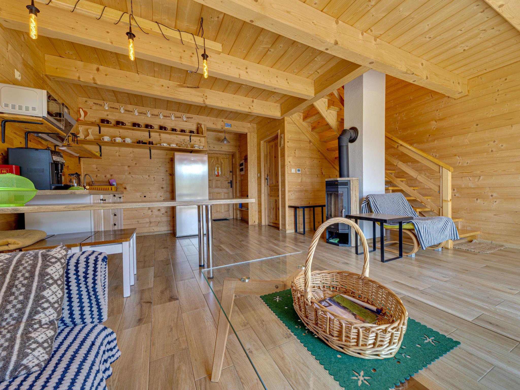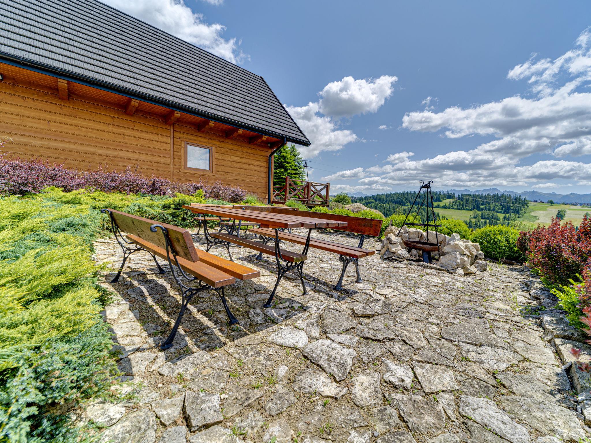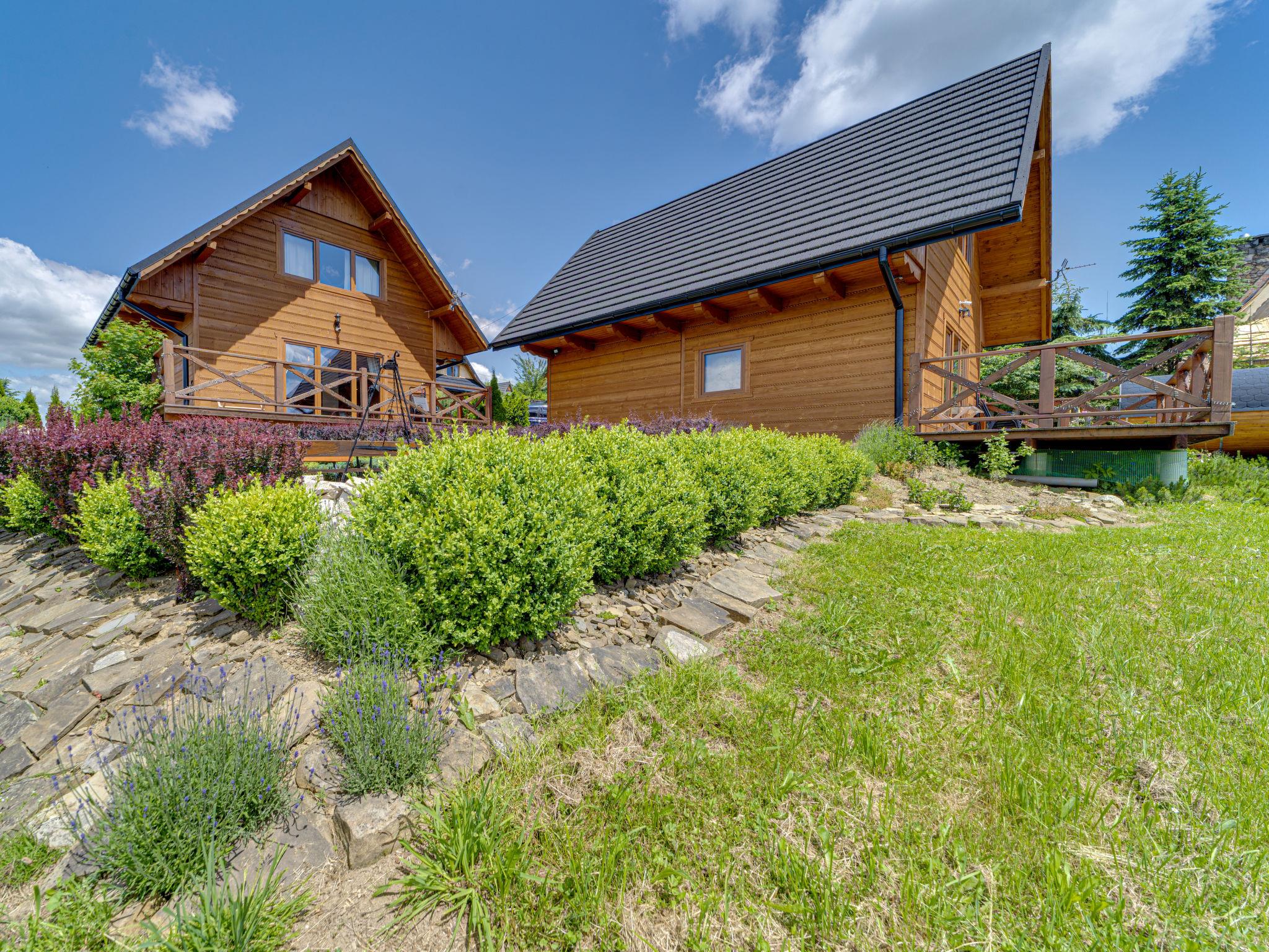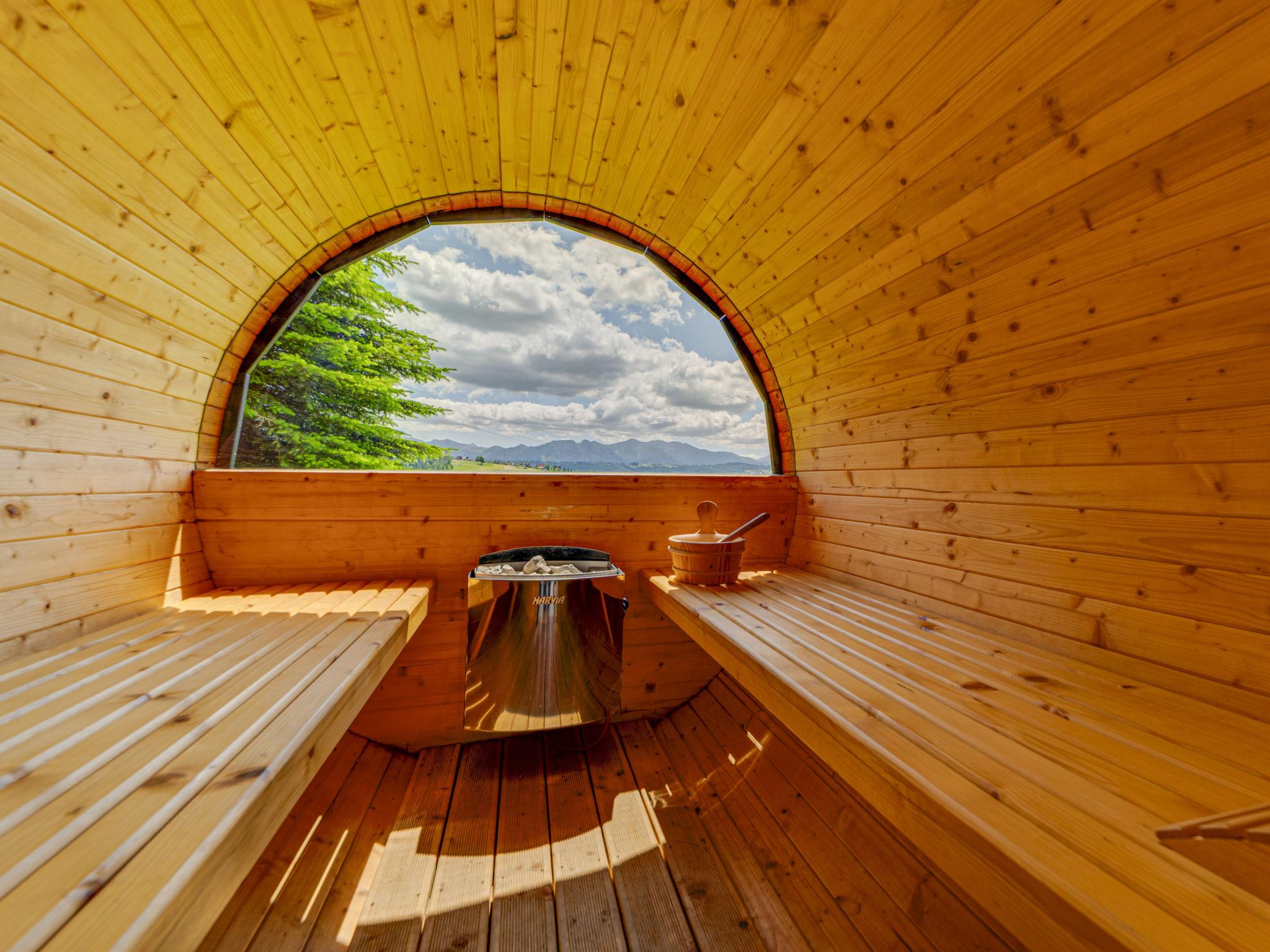 Cosy, comfortable chalet, built in 2020. 2 houses in the resort. On the outskirts, in a sunny, elevated position, in the countryside. For shared use: property, meadow. Barbecue. In the house: WiFi, sauna, washing machine, tumble dryer. Parking at the house. Grocery 300 m, supermarket 2.5 km, restaurant 1 km, bus stop 300 m, railway station 5 km, indoor swimming pool 1.5 km, public bathing area 8 km. Riding stable 3 km. Nearby attractions: Szlak Rowerowy Wokól Tatr, Suche 6 km, Zakopane 12 km. Well-known ski regions can easily be reached: Czerwienne SKI 2.5 km, Zab 3 km, Harenda 5.5 km. Please note: the complex has another 2 houses for rent.