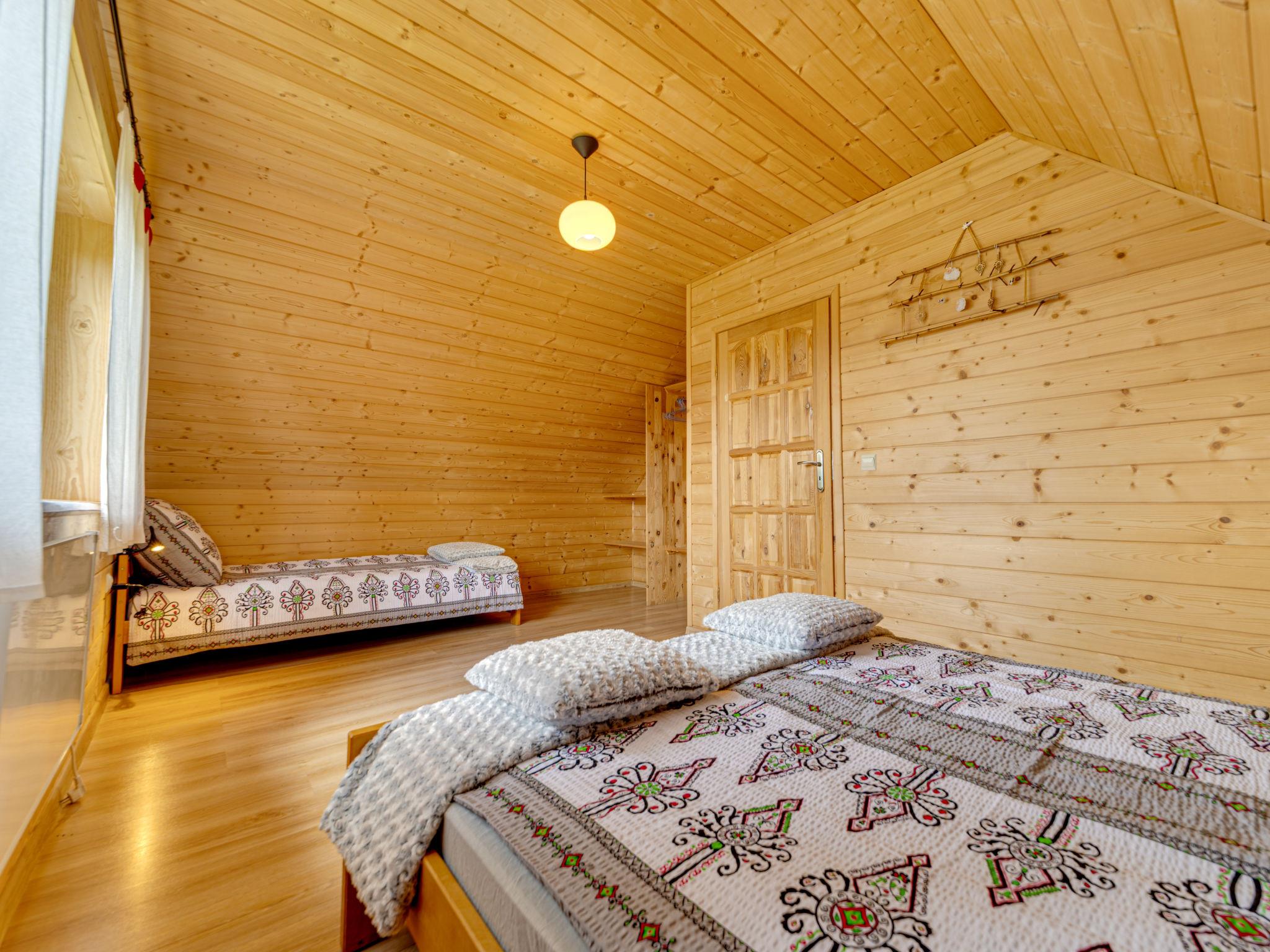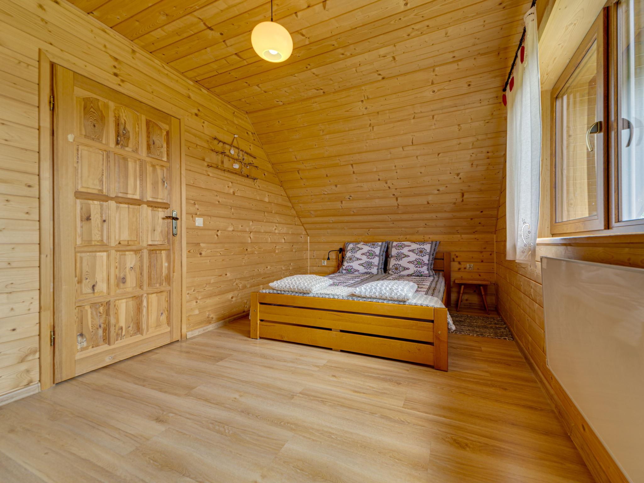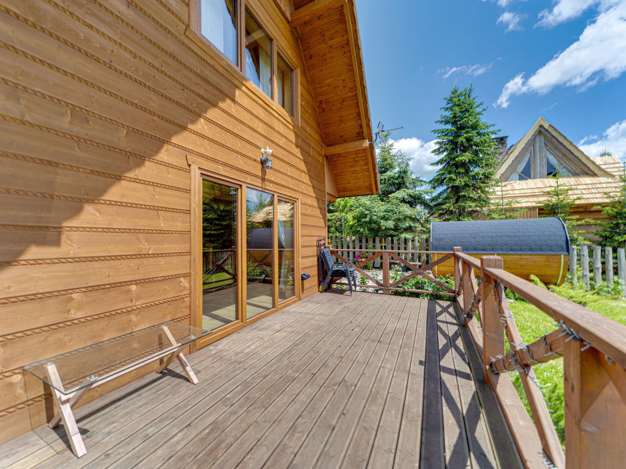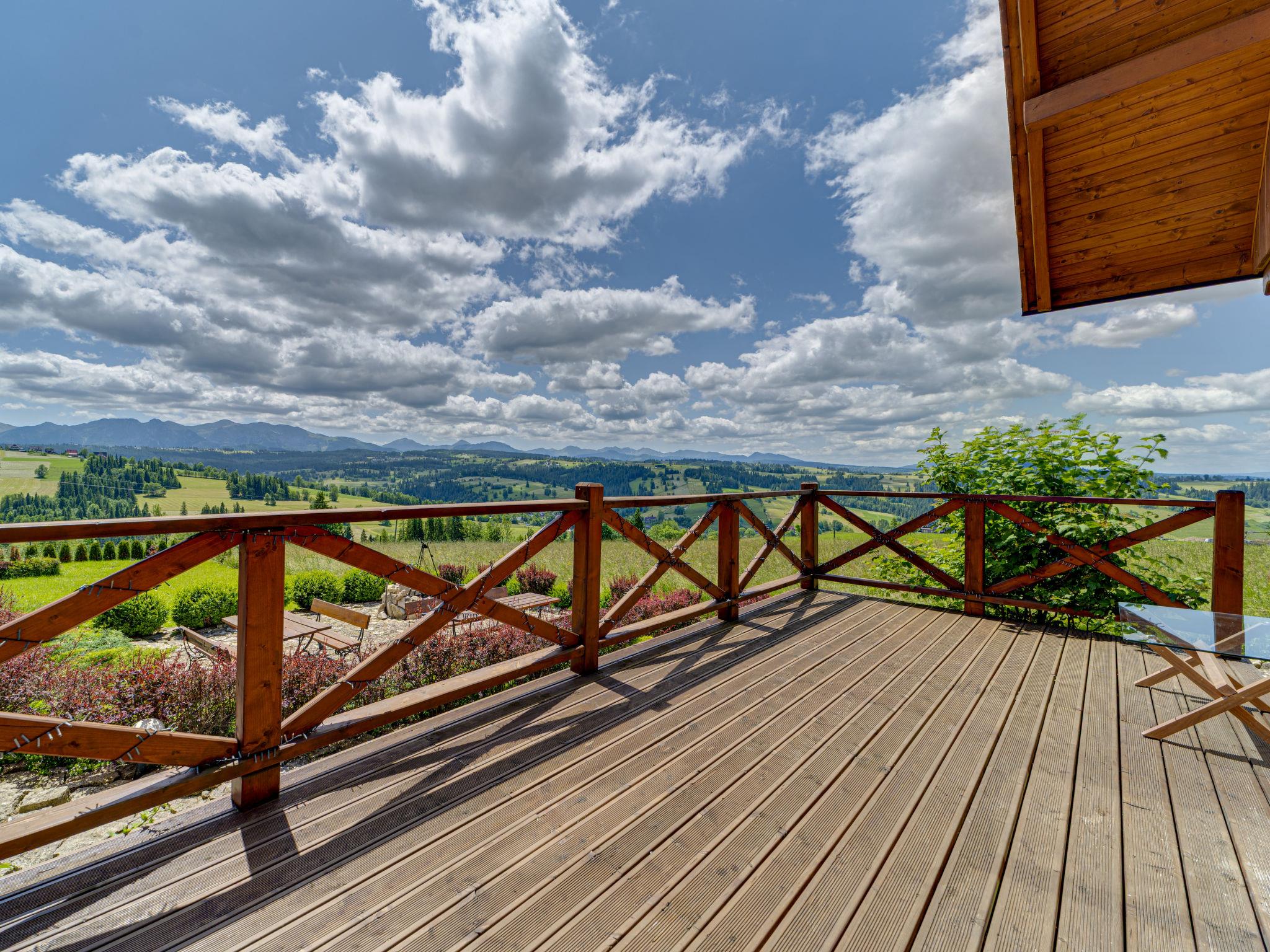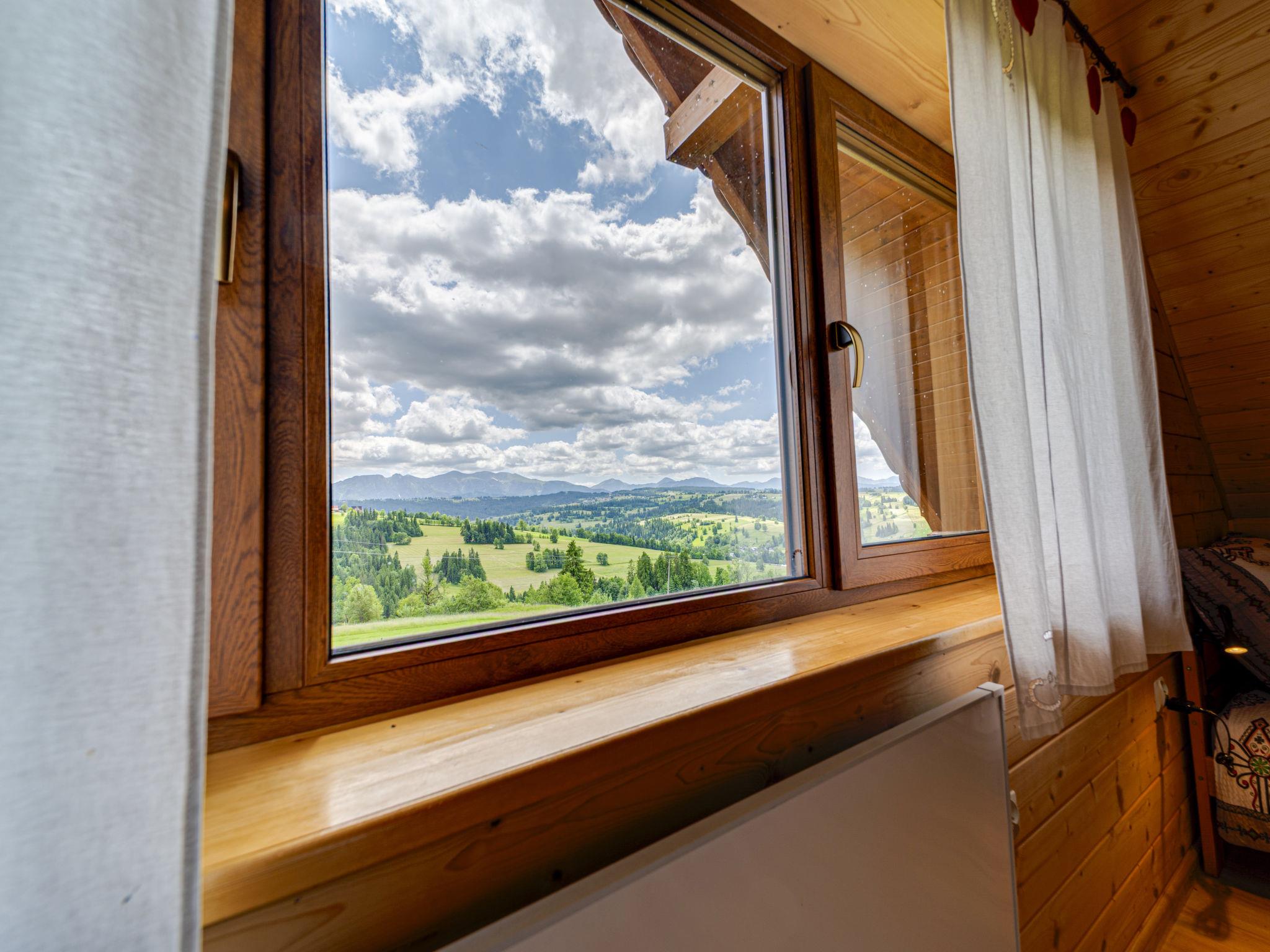 Cosy, comfortable chalet, built in 2020. 2 houses in the resort. On the outskirts, in a sunny, elevated position, in the countryside. For shared use: property, meadow. Barbecue. In the house: WiFi, sauna, washing machine, tumble dryer. Parking at the house. Grocery 300 m, supermarket 2.5 km, restaurant 1 km, bus stop 300 m, railway station 5 km, indoor swimming pool 1.5 km, public bathing area 8 km. Riding stable 3 km. Nearby attractions: Szlak Rowerowy Wokól Tatr, Suche 6 km, Zakopane 12 km. Well-known ski regions can easily be reached: Czerwienne SKI 2.5 km, Zab 3 km, Harenda 5.5 km. Please note: the complex has another 2 houses for rent.