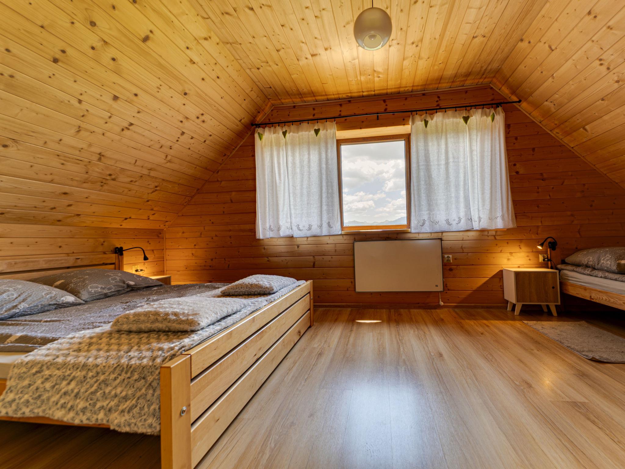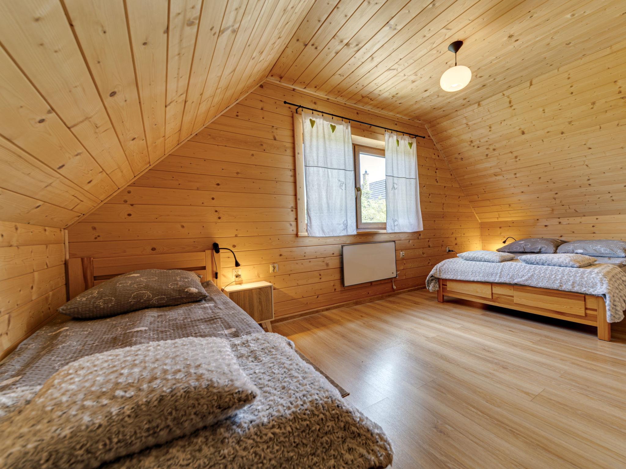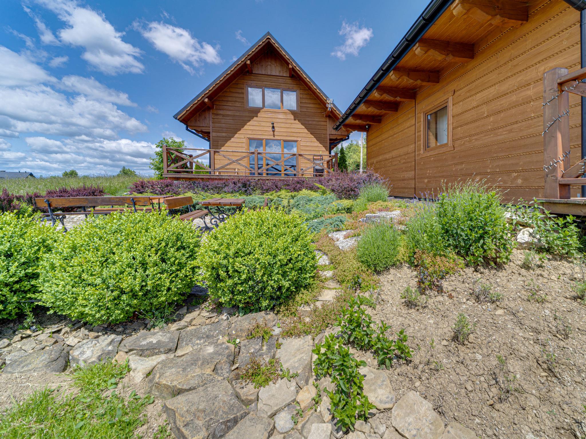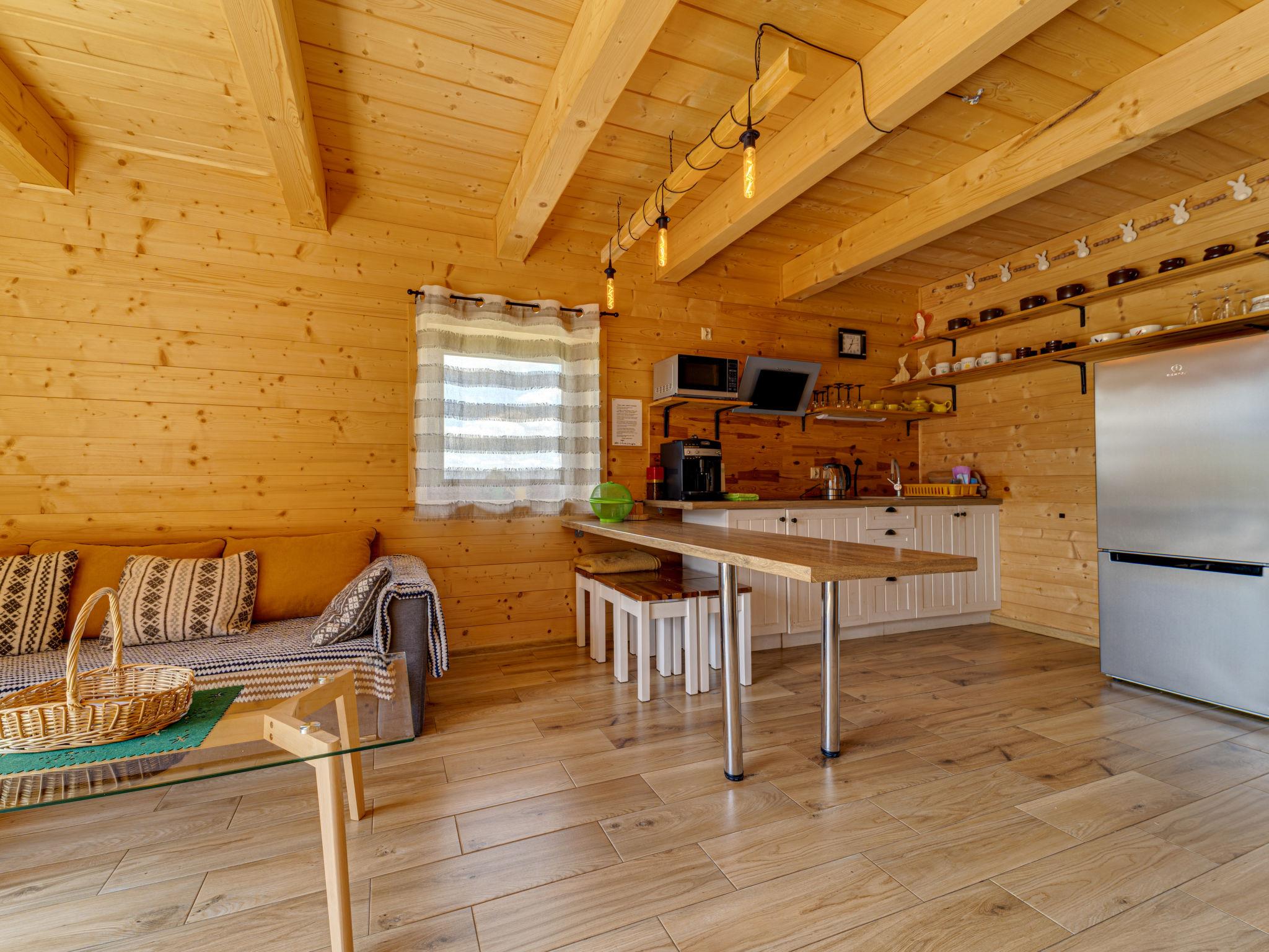 Cosy, comfortable chalet, built in 2020. 2 houses in the resort. On the outskirts, in a sunny, elevated position, in the countryside. For shared use: property, meadow. Barbecue. In the house: WiFi, sauna, washing machine, tumble dryer. Parking at the house. Grocery 300 m, supermarket 2.5 km, restaurant 1 km, bus stop 300 m, railway station 5 km, indoor swimming pool 1.5 km, public bathing area 8 km. Riding stable 3 km. Nearby attractions: Szlak Rowerowy Wokól Tatr, Suche 6 km, Zakopane 12 km. Well-known ski regions can easily be reached: Czerwienne SKI 2.5 km, Zab 3 km, Harenda 5.5 km. Please note: the complex has another 2 houses for rent.