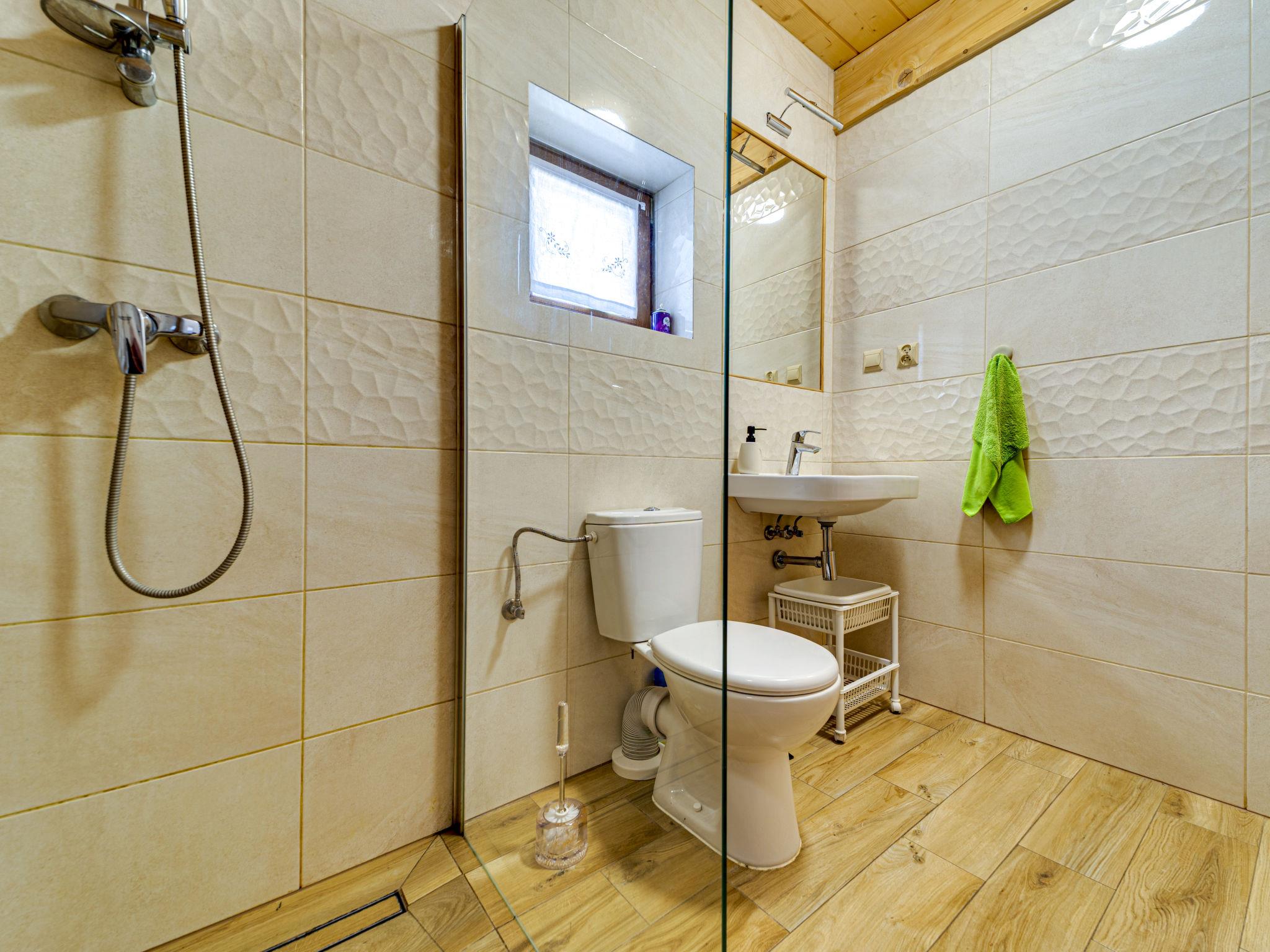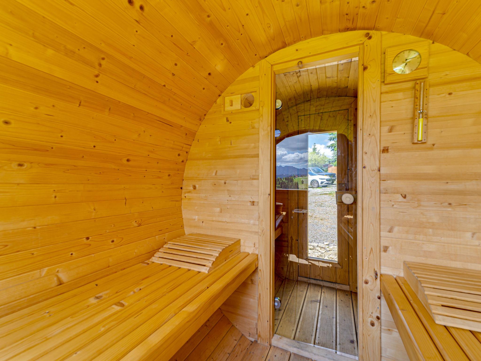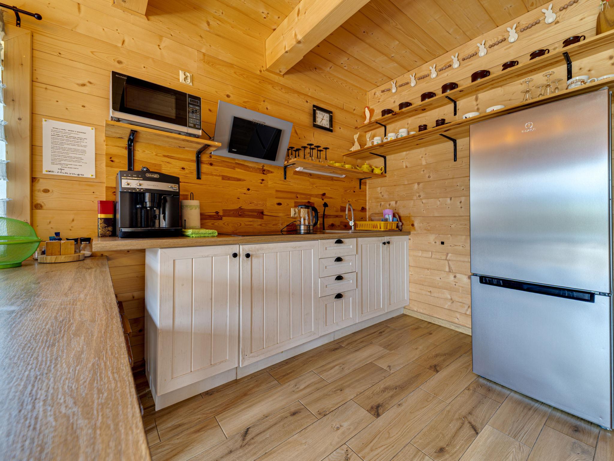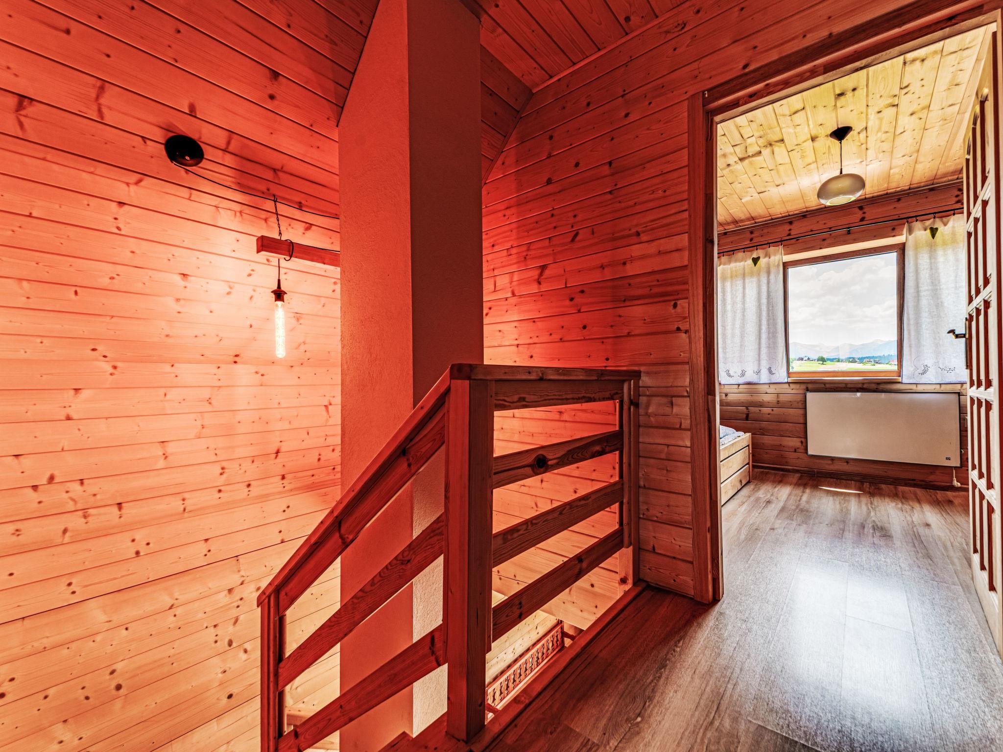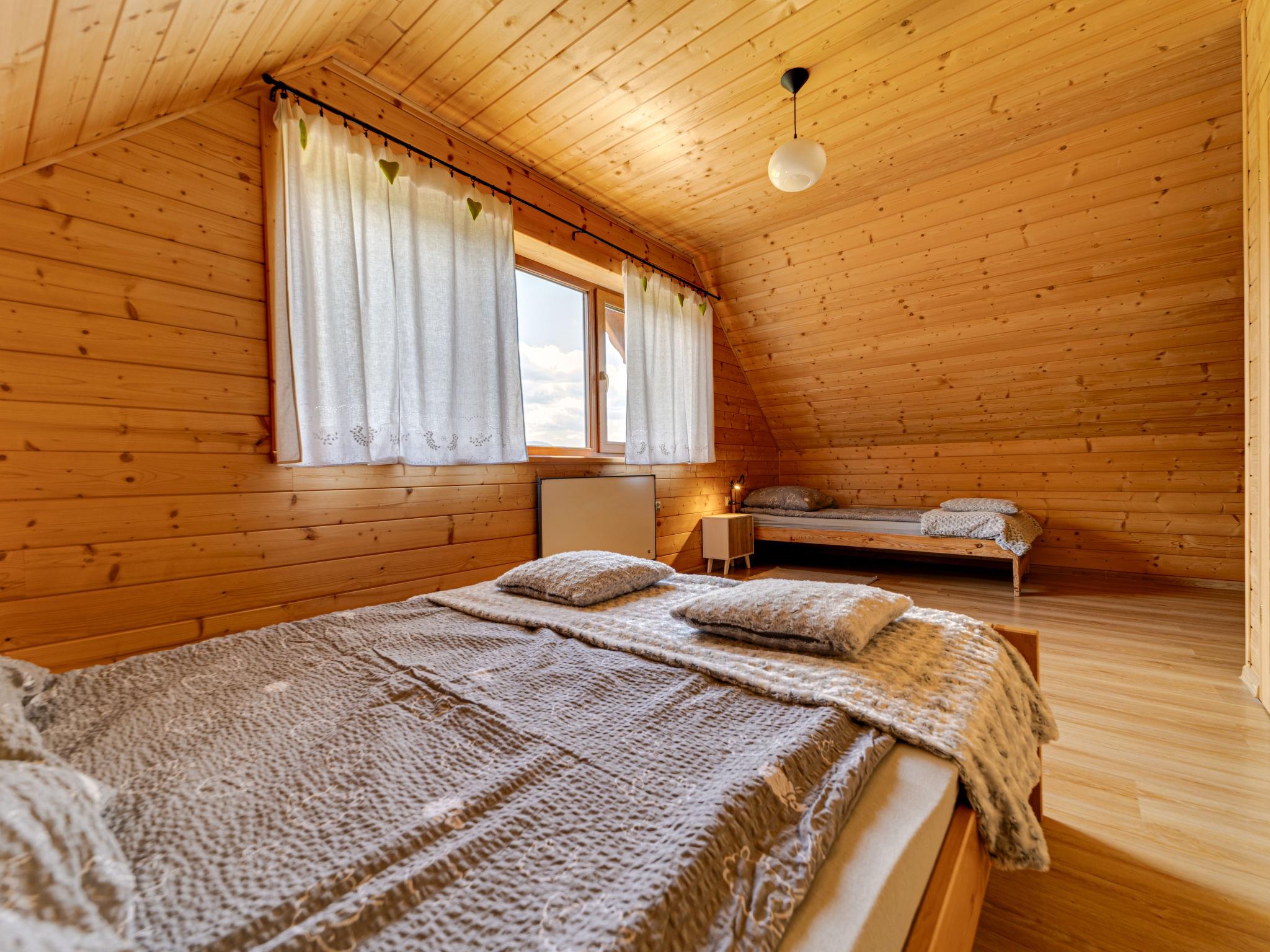 Cosy, comfortable chalet, built in 2020. 2 houses in the resort. On the outskirts, in a sunny, elevated position, in the countryside. For shared use: property, meadow. Barbecue. In the house: WiFi, sauna, washing machine, tumble dryer. Parking at the house. Grocery 300 m, supermarket 2.5 km, restaurant 1 km, bus stop 300 m, railway station 5 km, indoor swimming pool 1.5 km, public bathing area 8 km. Riding stable 3 km. Nearby attractions: Szlak Rowerowy Wokól Tatr, Suche 6 km, Zakopane 12 km. Well-known ski regions can easily be reached: Czerwienne SKI 2.5 km, Zab 3 km, Harenda 5.5 km. Please note: the complex has another 2 houses for rent.
