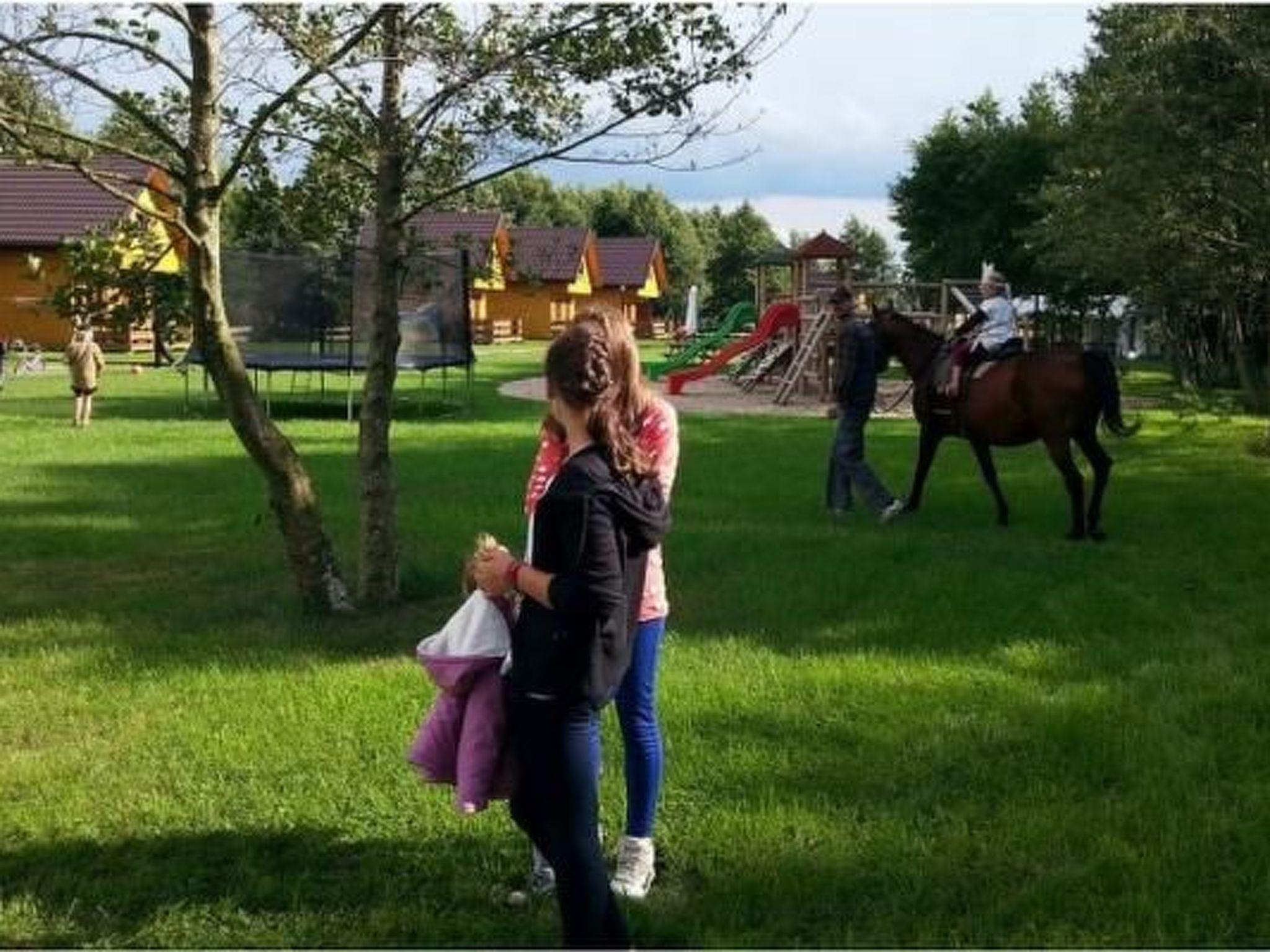 The two-storey log cabins, built entirely of wood, have a large living room with kitchen and bathroom, as well as a terrace on the ground floor and two bedrooms upstairs. With us you will find ideal conditions for an active holiday and a pleasant change from everyday life. On a total area of more than 2.6 hectares, we offer numerous sports fields for football, beach volleyball, basketball, badminton, etc., a 40-hectare pond where you can sail boats or pedal boats, and for those who prefer peace and quiet, an alder grove with hammocks for lazing around. The whole area is fenced, allowing our little guests to play safely in the large playground with trampolines and other attractions. The quiet and clean surroundings and the specific microclimate of the pine forest are conducive to walks and bike rides, and the beach in Dabki, 6 km away, will be a great addition to your holiday experience on the Baltic Sea. Silence, tranquillity...simply free time. Welcome to Gleznówek. Our log cabins are built entirely of wood, which provides relaxation and a specific atmosphere. We have 7 log cabins. Each cabin can accommodate 4-6 people and is equipped with the following: Large living room with seating area 32-inch satellite TV Fully equipped kitchen with dining table Fridge Microwave Gas oven Dishes Bathroom (shower, toilet, washbasin with cabinet) Terrace with seating area and barbecue Two separate bedrooms in the attic Bedroom with double bed and spacious dresser Bedroom with twin beds and large wardrobe