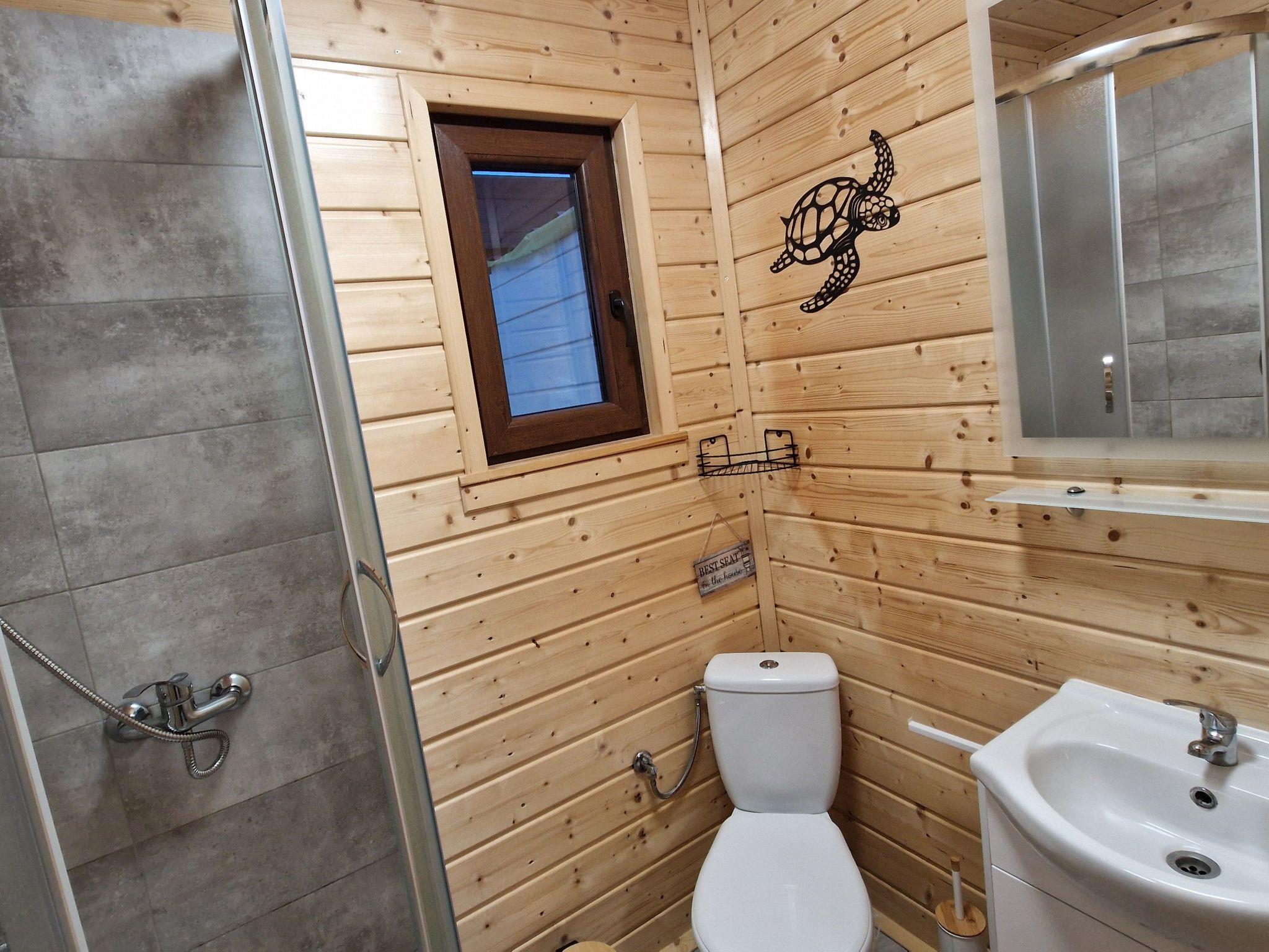 We have 6 new holiday cottages, each with an area of 35m2 with a covered terrace. Each house (for 4-5 people) consists of two bedrooms, a living room/kitchen and a bathroom.