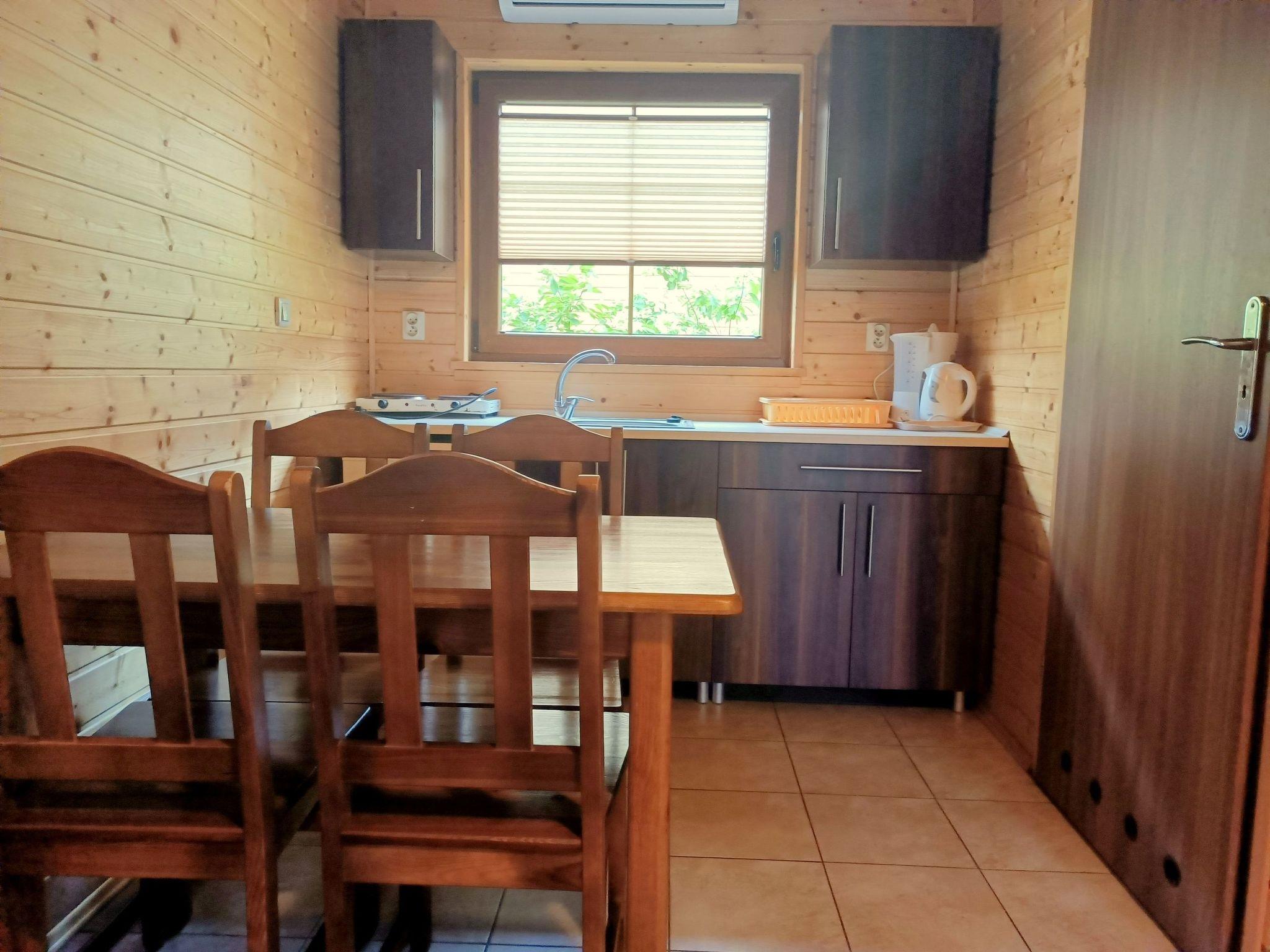Each of the eight cottages provides a comfortable stay for 2 to 6 people on a living area of 42 m2. On the ground floor there is a cosy living room with a sofa bed, coffee table, TV and a kitchenette equipped with basic appliances and utensils. A bathroom with a shower, washbasin, toilet and electric water heater completes the comfort. For those interested, some cottages offer air conditioning.