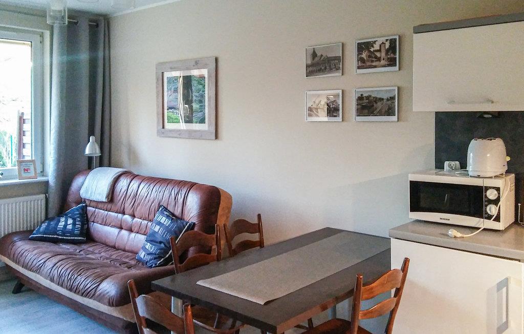 Ferielejlighed i byen Darlowo. Tilbring jeres ferie i en komfortabelt og praktisk møbleret ferielejlighed med adgang til haven. I nærheden, 1,5 km herfra, er der en strand og mange ferieattraktioner som badeland, arkitektoniske seværdigheder, fiskevande, rideundervisning og stier. Børnefamilier kan glæde sig til en klatre- og forlystelsespark, eller tage til en legeplads kun 40 m herfra. Næsten lige foran huset fører en promenade langs Wieprzafloden, hvor der også er anlagt et udendørs fitnessstudio. Lystfiskere kan både fiske i floden og i en stor sø. Der er både klatrepark og en svømmehal i byen. For personer, der længes efter fred og ro, er en kurby 7 km fra Darlowo en anbefaling værd. Her er der dagen lang mulighed for at forkæle jer selv.