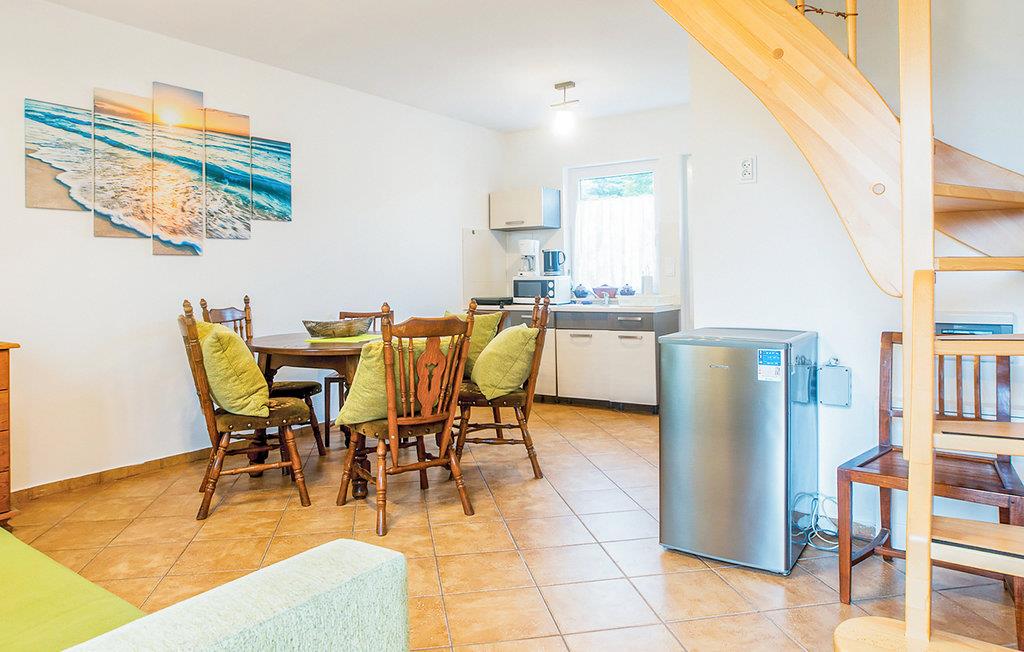 Dette rækkehus byder dig velkommen i et smukt boligkompleks. Ud over dette hus kan I booke andre huse til jeres store familieferie. Det smukke hus med enkel komfort tilbyder jer en dejlig ramme for jeres ubekymrede ferie på to etager. Her finder I alt, hvad I har brug for og kan komme til ro. Nyd jeres morgenkaffe på havemøblerne på jeres terrasse og tag feriedagene stille og roligt.