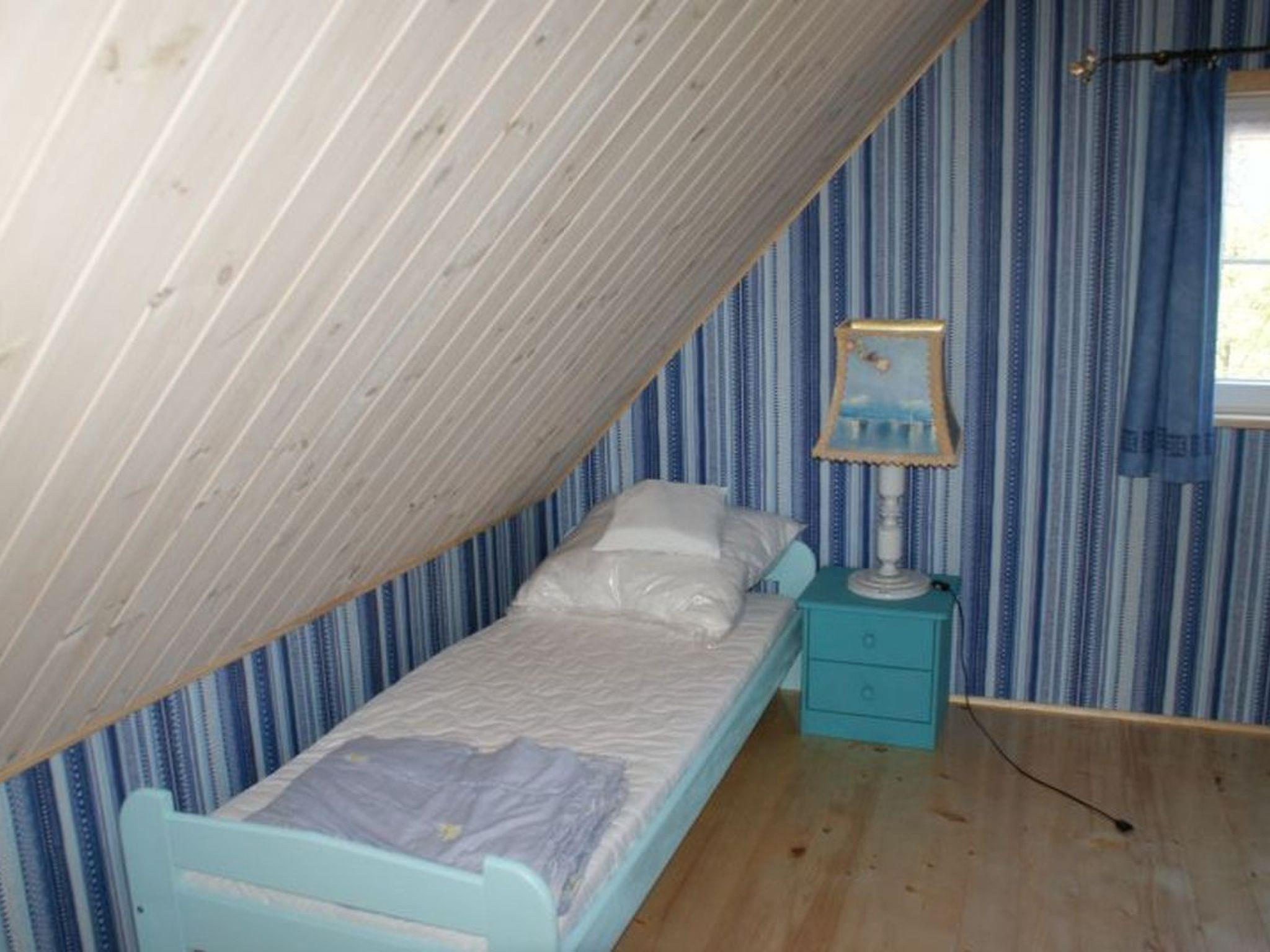 On the first floor there is a large bedroom with three single beds.