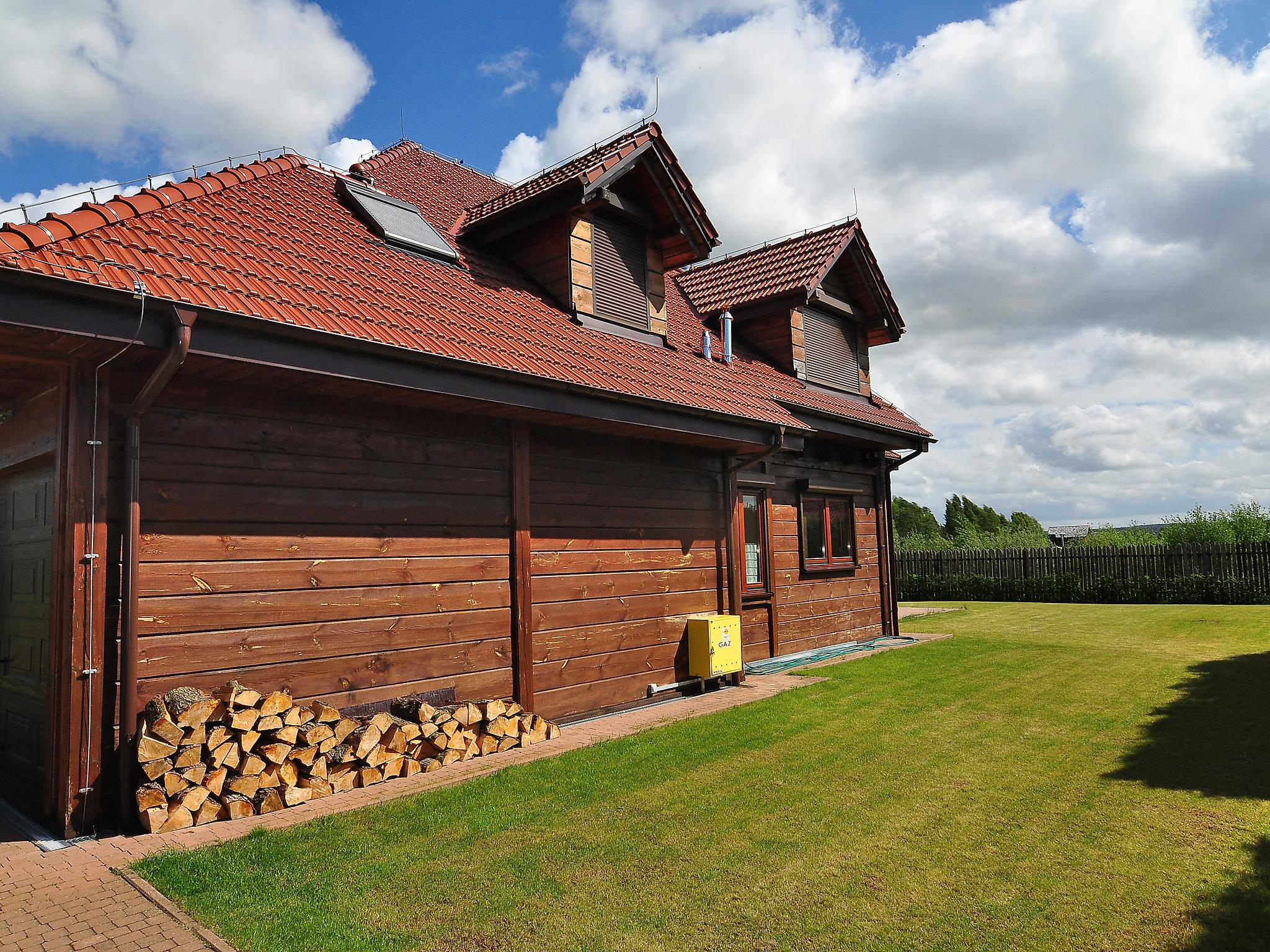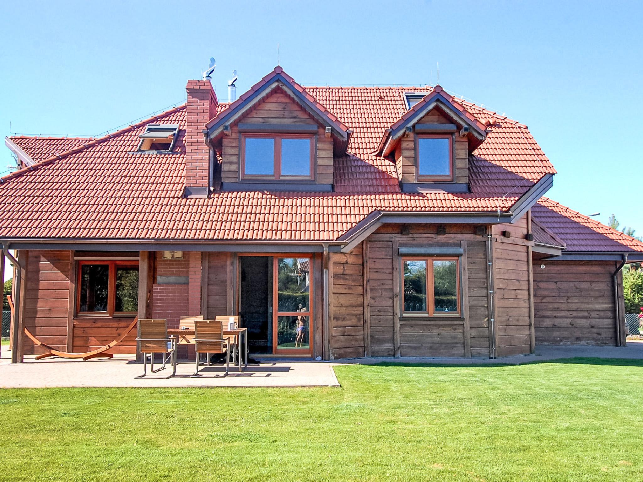 Single-family house "Nad Morzem", built in 2010. In the resort, in a quiet, sunny position, 550 m from the sea, 500 m from the beach, 1 km from the river, in the countryside. Private: property 1'500 m2 (fenced), lawn, swimming pool angular, heated (4 x 9 m, seasonal availability: 01.Apr. and 31.Oct.). Terrace (70 m2), garden furniture, barbecue. In the house: sauna, washing machine, tumble dryer. Available: bicycles (2). Motor access to the house. Parking at the house on the premises. Grocery, supermarket 350 m, restaurant 150 m, bus stop 100 m, railway station "Wejherowo" 30 km, sandy beach 500 m, indoor swimming pool 15 km, public bathing area 500 m. Golf course (18 hole) 35 km, riding stable 7 km, children's playground 300 m. Well-known lakes can easily be reached: Jez. Zarnowieckie 10 km.