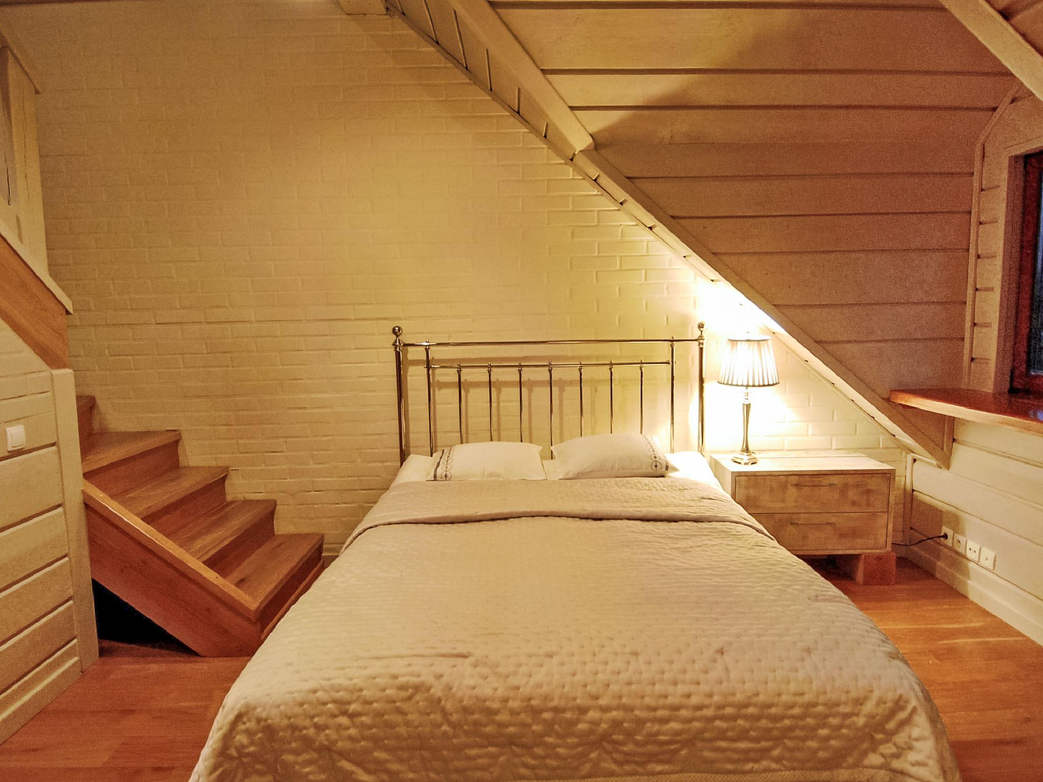 6-room house 250 m2 on 2 levels. Open living room 32 m2 with open-hearth fireplace, flat screen and DVD. Exit to the terrace. Dining room. Large, open kitchen 23 m2 (oven, dishwasher, 1 induction hot plates, microwave, freezer, electric coffee machine). Shower, sep. WC. Upper floor: 1 room with sloping ceilings with 2 beds (90 cm, length 200 cm). 1 room with sloping ceilings with 1 french bed (160 cm, length 200 cm). 1 room with sloping ceilings with 1 french bed (140 cm, length 200 cm). 1 room with sloping ceilings with 1 french bed (140 cm, length 200 cm). 1 large room with sloping ceilings, on 2 levels with 2 beds (90 cm, length 200 cm), 1 double bed (160 cm, length 200 cm). 2 showers/WC. Gas heating. Terrace 70 m2. Terrace furniture, barbecue, deck chairs (2). Facilities: Internet (WiFi). Parking at the house. Please note: suitable for families. Non-smoking house. Maximum 2 pets/ dogs allowed. Smoke alarm.