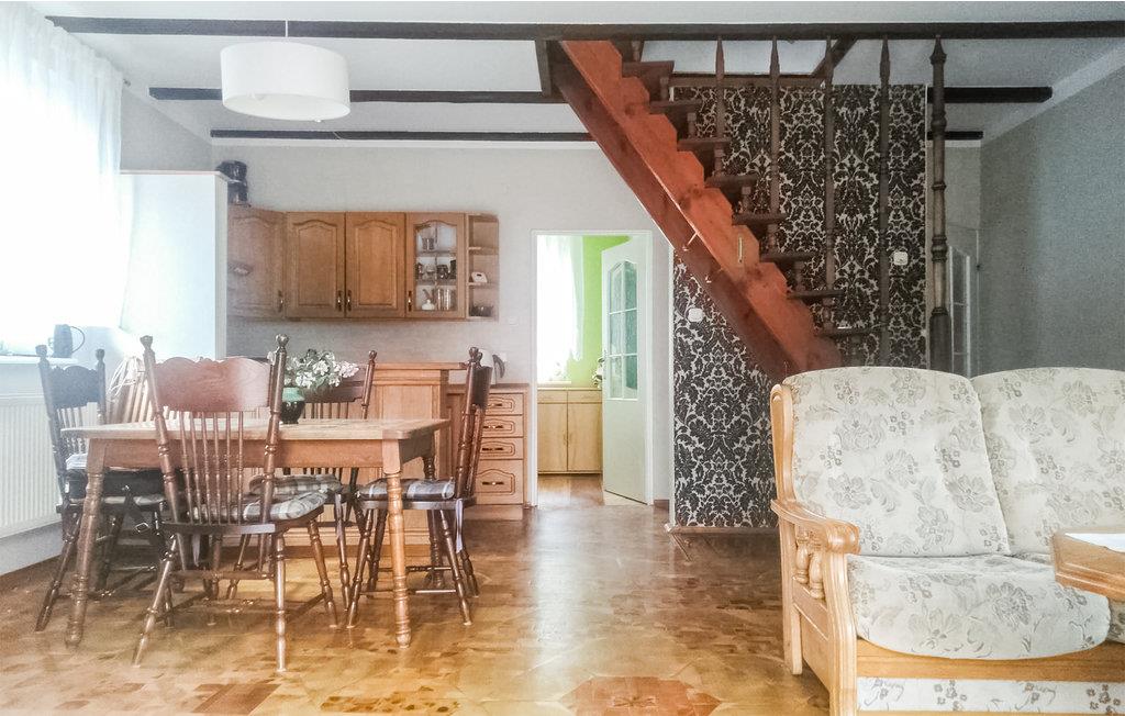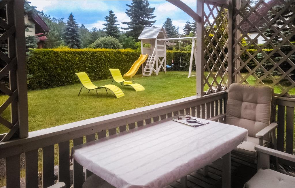 Rummeligt, familievenligt feriehus med rolig beliggenhed nær søen. Dette attraktive feriehus ligger i et skovområde øst for Szczecin. Det funktionelle interiør strækker sig over to etager og gør et venligt indtryk. Selv store familier vil finde plads, komfort og alt hvad du behøver til en afslappende ferie her. Nyd en kop kaffe om morgenen på den idylliske, overdækkede terrasse og tilbring timevis af sjov i løbet af dagen med et krydsord eller et spil backgammon. I den lukkede have finder du gode solforhold og god plads til sjov og leg. Den nærliggende sø Diminikowo inviterer dig til afslappede badeudflugter om sommeren. Lad børnene bygge sandslotte på kysten og nyd en idyllisk picnic, mens de kigger ud på vandet. Du kan også leje en båd og prøve dig frem i fiskeriet – måske fanger du aftensmaden?
