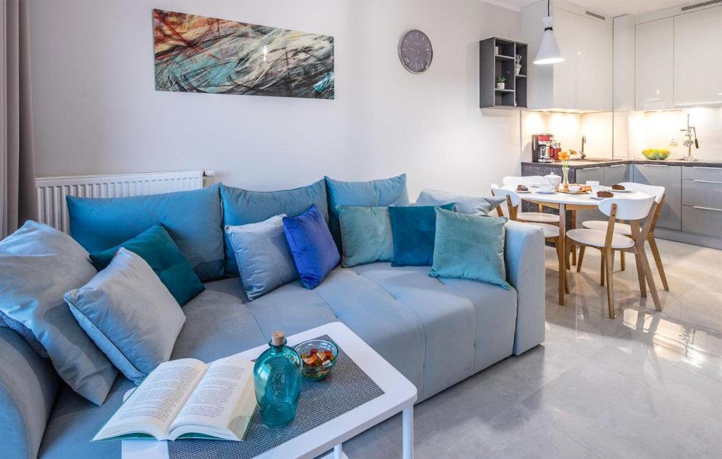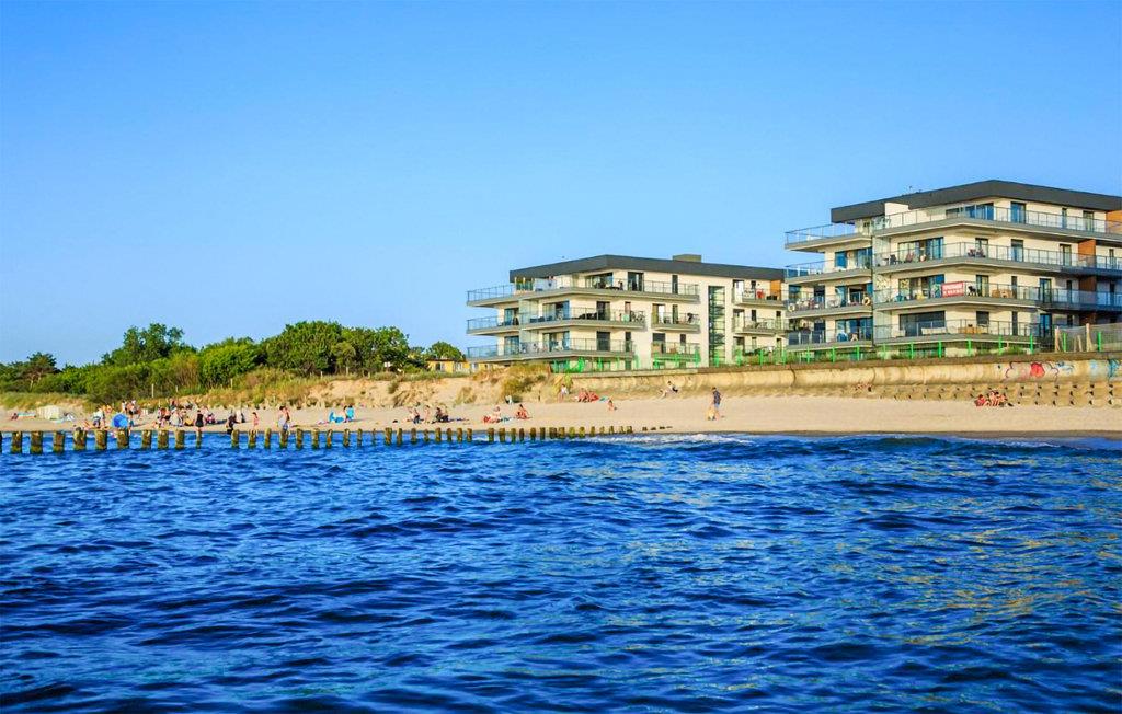 Velkommen til denne komfortable lille ferielejlighed, som er placeret i en luksuriøs etageejendom i første række til havet. Den flotte, enkle indretning kombineret med farverige detaljer giver jer skønne rammer til at slappe af. Boligen er godt indrettet til en familie eller to vennepar, der holder ferie sammen. Ud over den skønne lejlighed finder I en altan, hvor I kan nyde dagens måltider og udsigten over Østersøen.