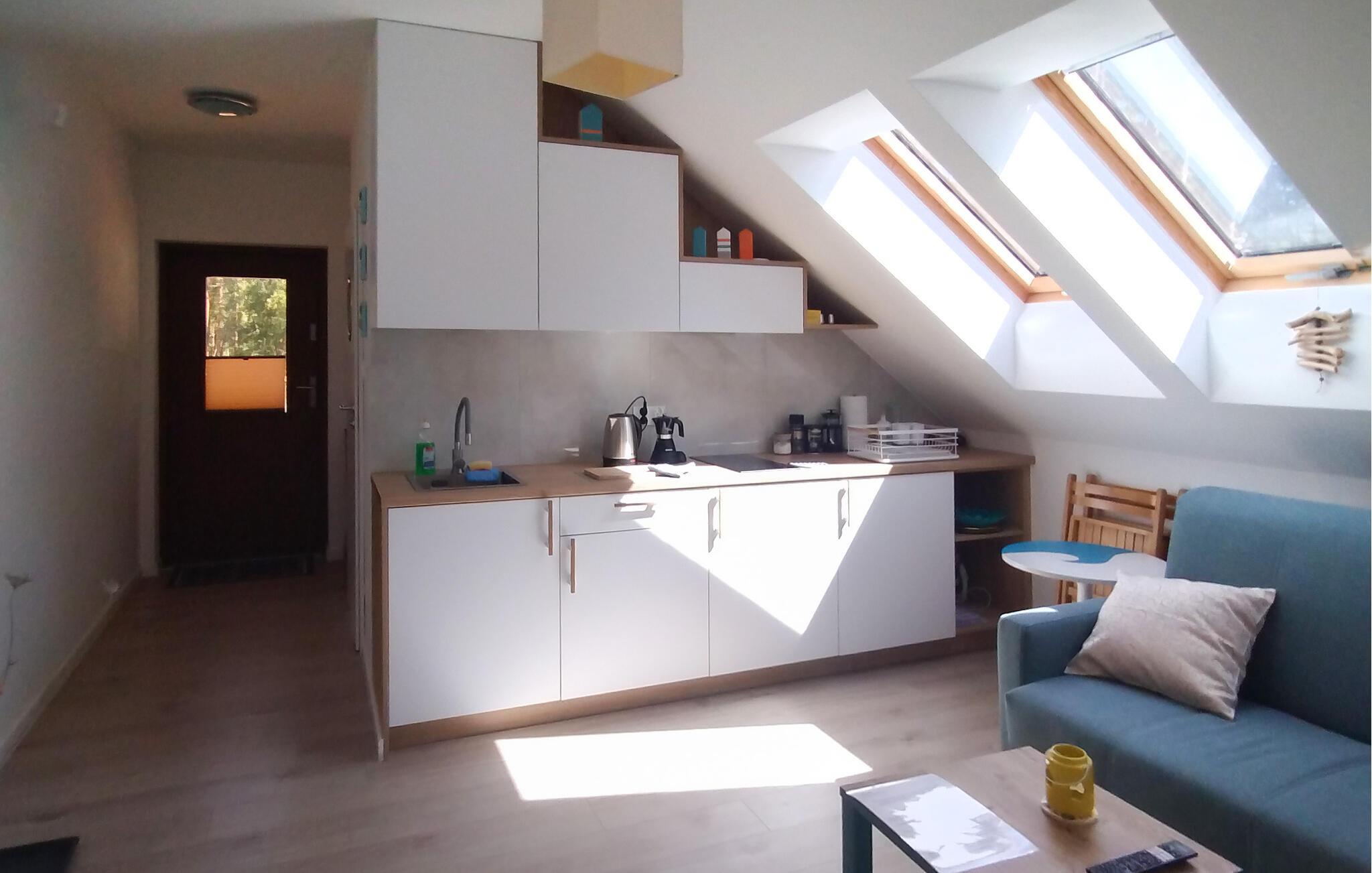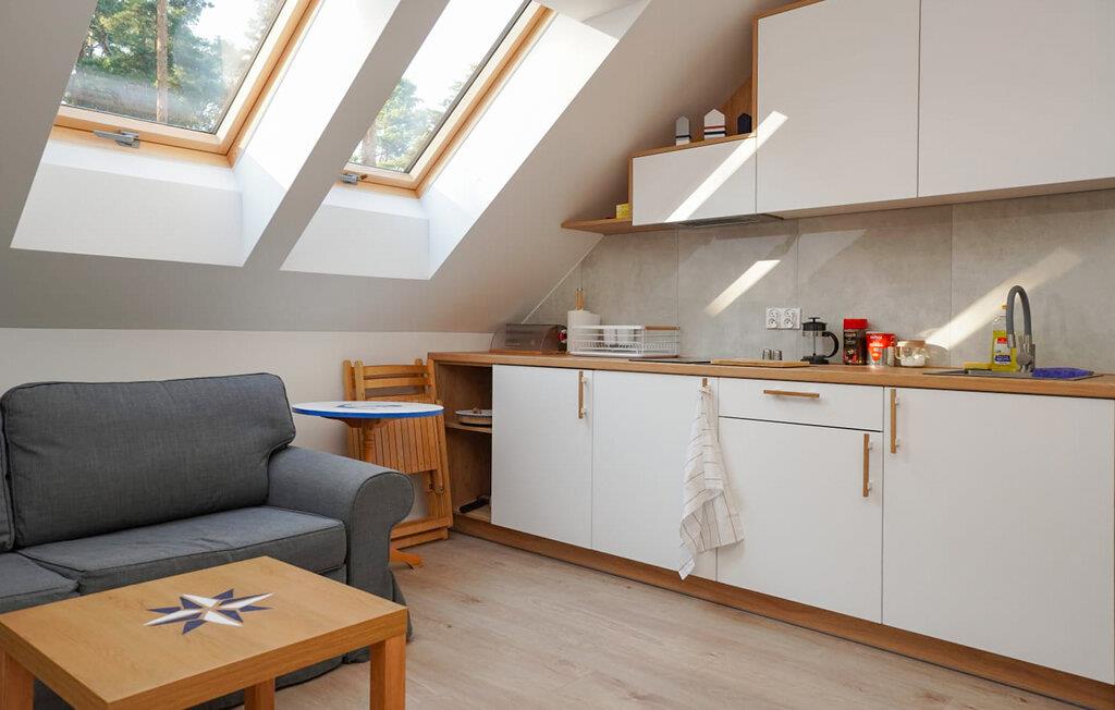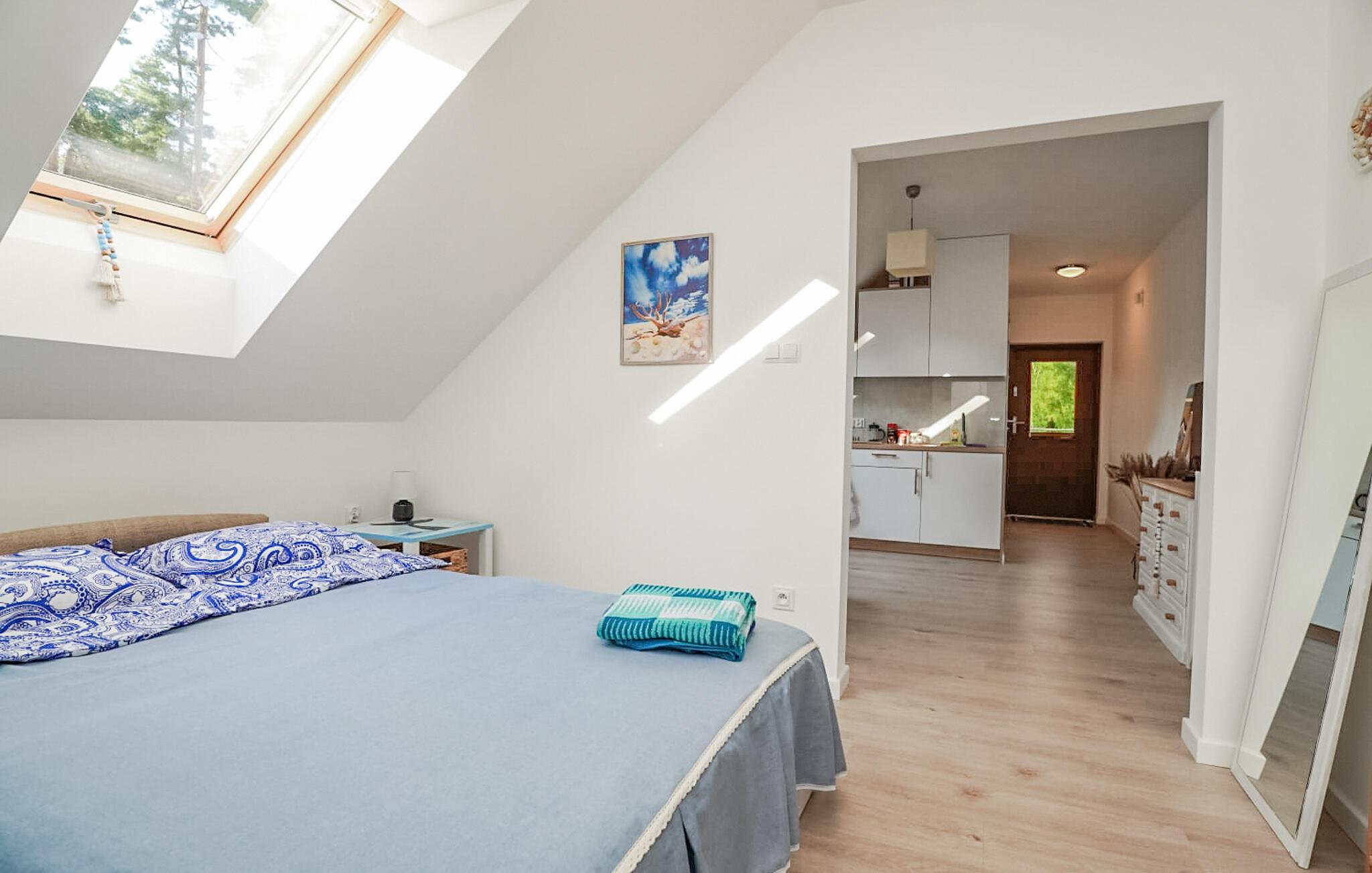 Glæd jer til jeres ferie i den indbydende ferielejlighed tæt på stranden. Denne attraktive lejlighed tilbyder jer ikke kun de ideelle rammer for en viInderlig tid sammen, men også en fremragende beliggenhed for at opdage denne fascinerende kystby. Start jeres dag med morgenmad på jeres terrasse og nyd de første solstråler. Det hyggelige køkken-alrum er ideelt til at koble af efter en begivenhedsrig dag. Føl jer godt tilpas i sofaen sammen og slut dagen med afslapning. Gå en tur til stranden og nyd havet og solen. Prøv også de forskellige vandsportsaktiviteter, der tilbydes her - det være sig sejlads, windsurfing eller kajaksejlads. Selve den charmerende havneby tiltrækker besøgende med sine maritime attraktioner. Gå en tur langs molen og se fiskerbådene eller tag en bådtur for at opleve østersøkysten fra et nyt perspektiv. Udforsk Wolin National Park, kun en kort køretur væk, og nyd de spektakulære klipper, frodige skove og mangfoldige dyreliv.