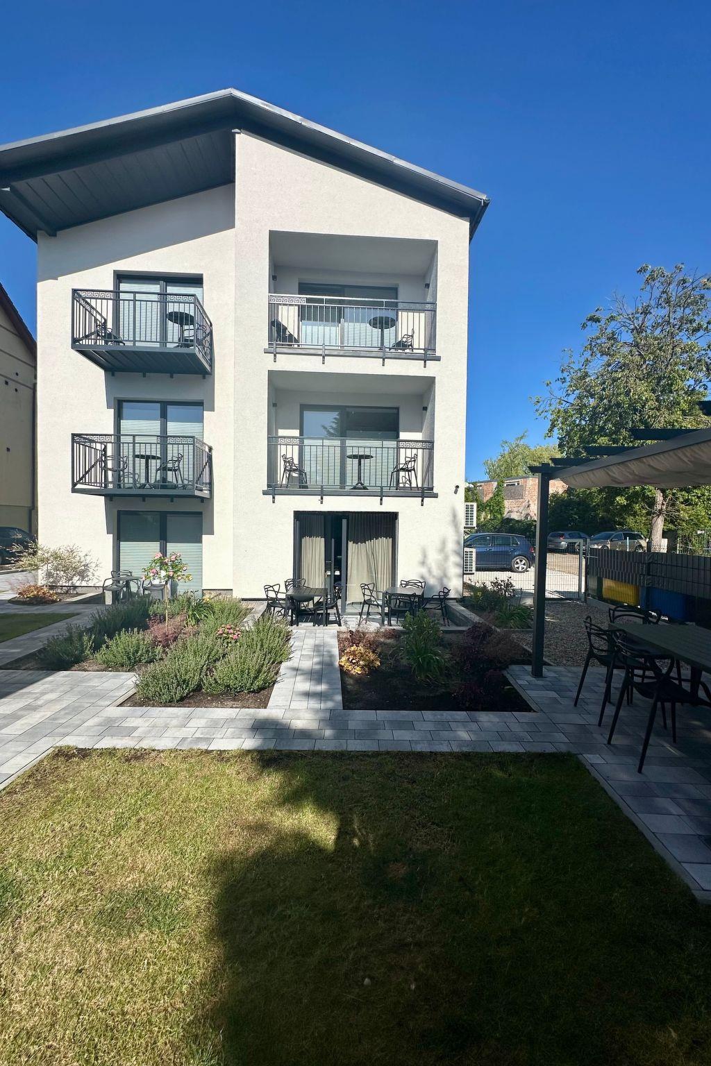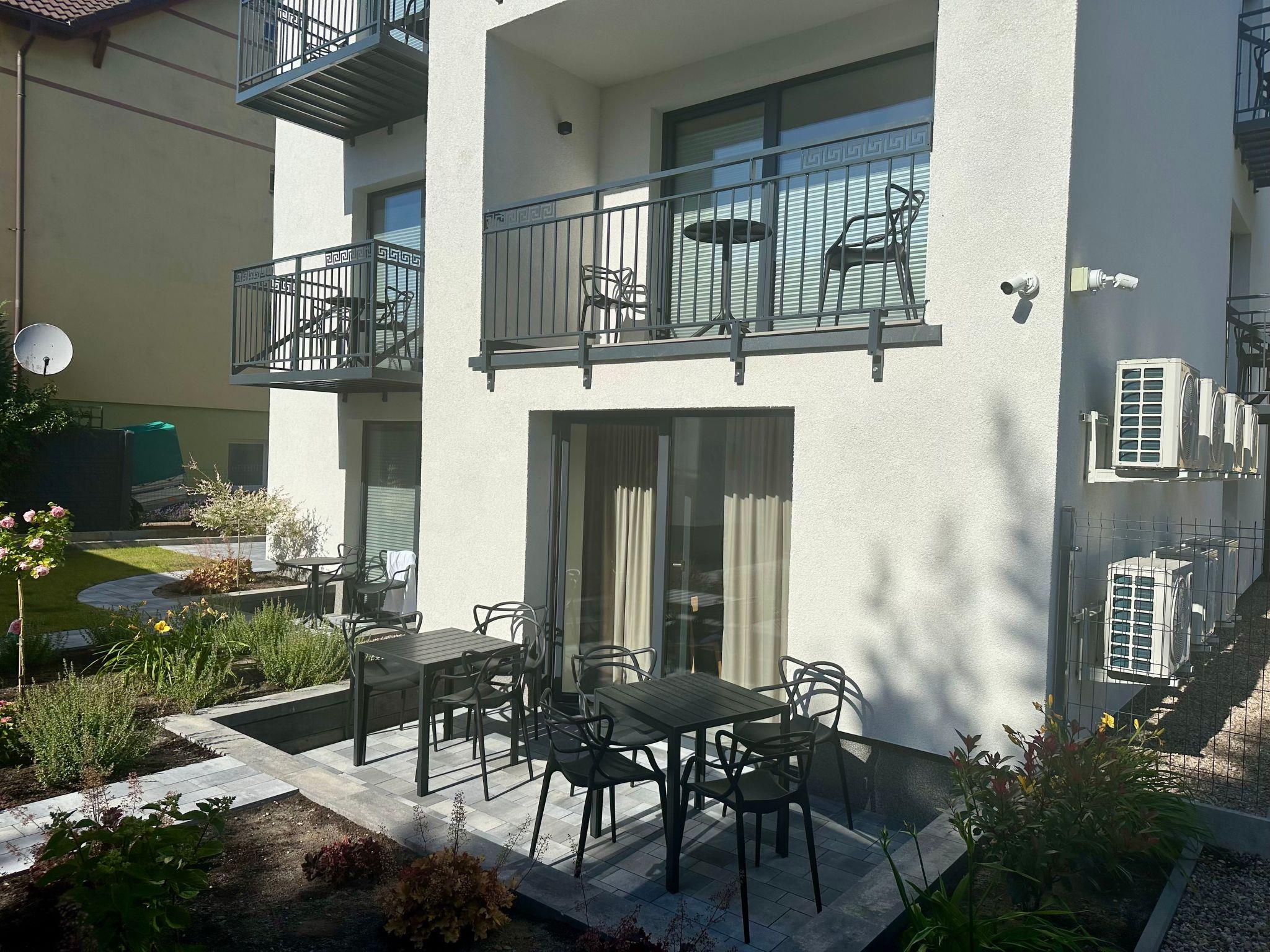 Outside behind the building there is a beautifully landscaped garden with gazebo and gas barbecue at your disposal. In the grounds there is garden furniture, a playground and parking.