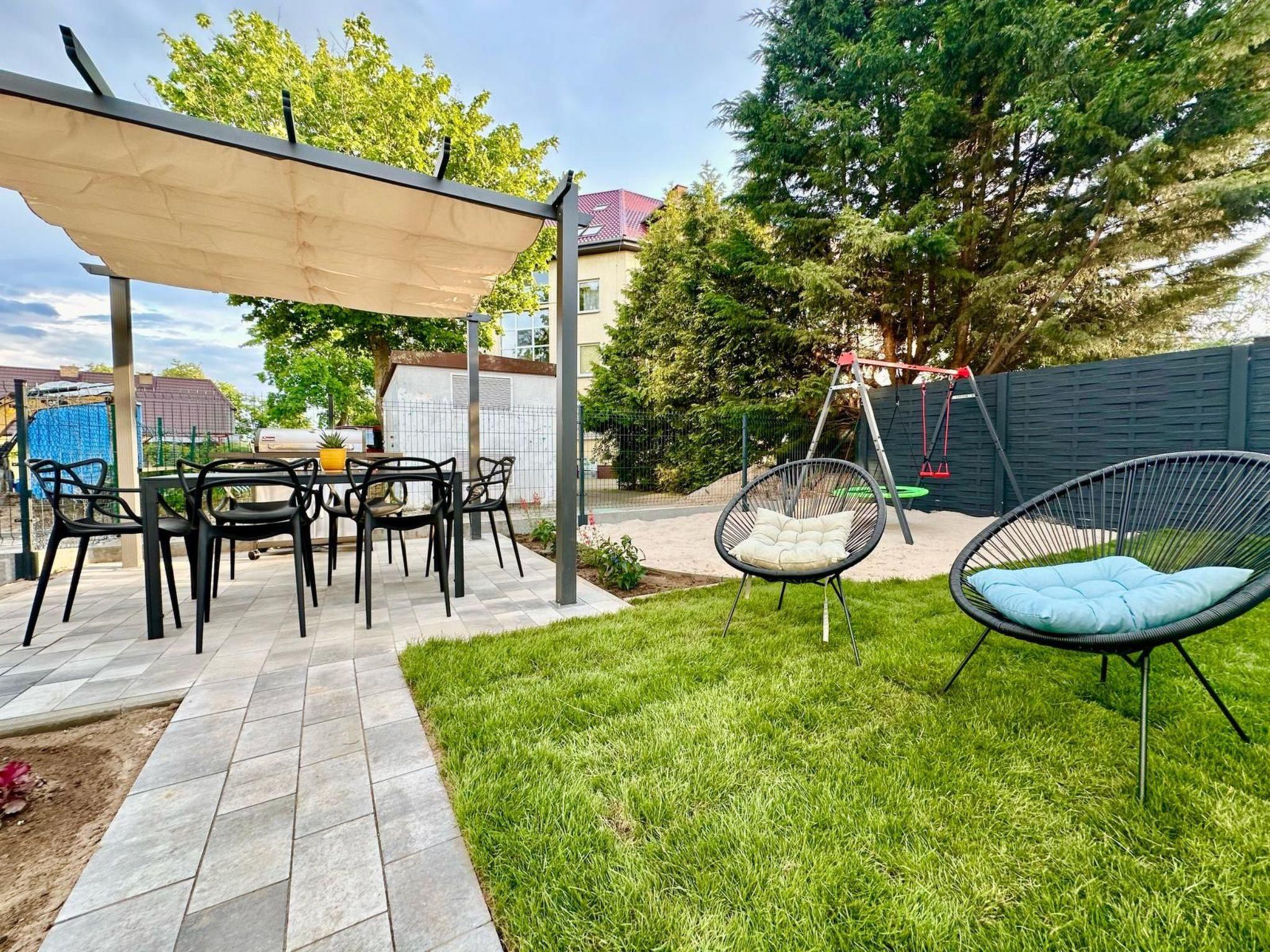 The holiday home is located just 300 m from the Baltic Sea and the river. It is located in a quiet area of detached houses. Restaurants and shops are nearby.