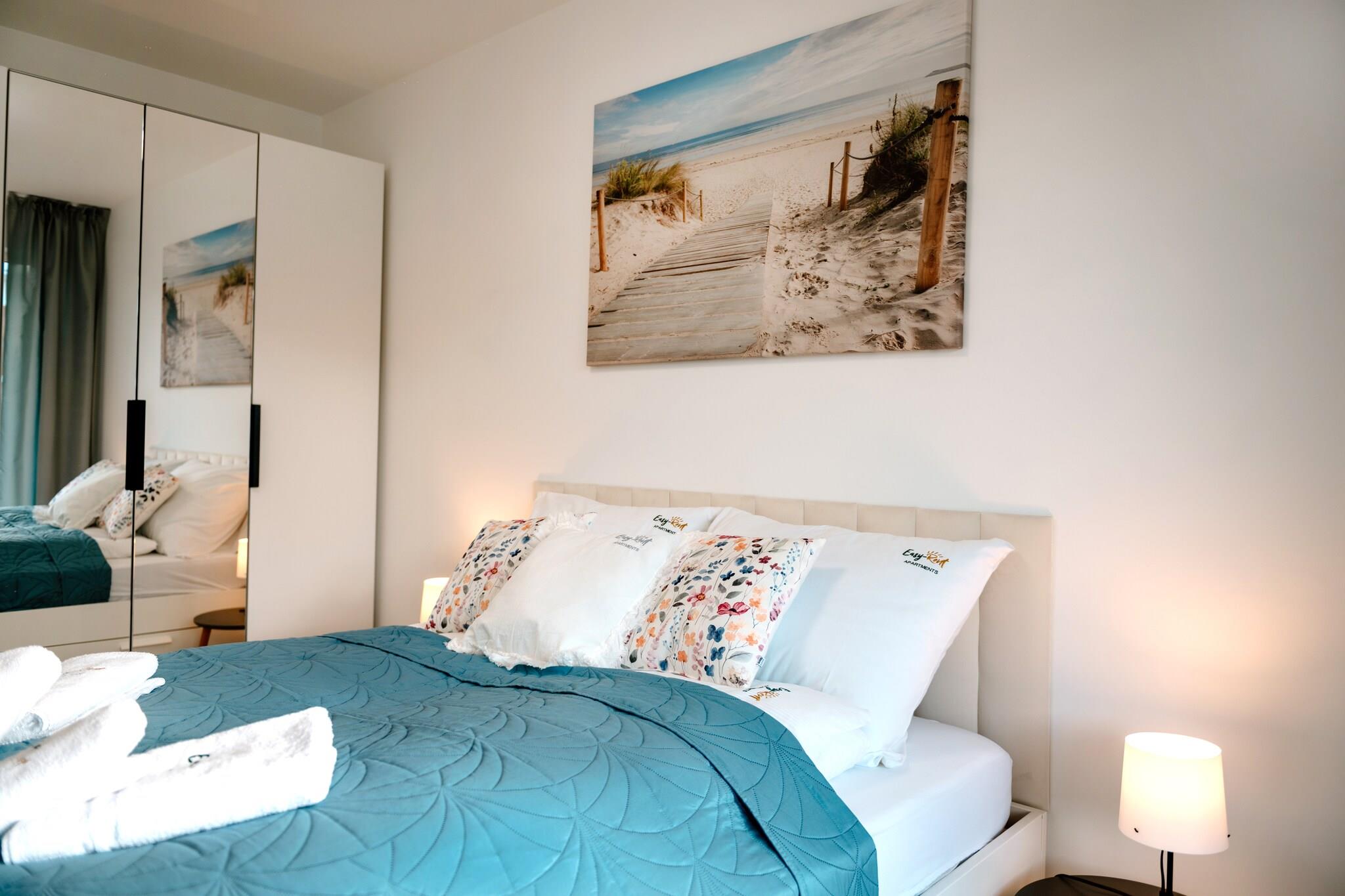 Lejlighedskompleks direkte på bredden af Dziwna-floden. Udover overnatning tilbyder det et SPA-område med indendørs swimmingpool, spabad og sauna. Kun 700 m til stranden. Ca. 250 m til feriestedets centrum. Komfortabel lejlighed på anden sal (der er elevator). Den består af en stue forbundet med et veludstyret køkken, et soveværelse med dobbeltseng og et badeværelse med bruser (der er en vaskemaskine). Stuen har en dobbelt sovesofa, bord og tv. Lejligheden har en stor overdækket terrasse. Centralvarme. Trådløst internet er tilgængeligt. Komplekset har en indendørs swimmingpool (+ soppebassin for børn), et boblebad, en sauna og et fitnessrum. Der er en parkeringsplads for bilister. Prisen for opholdet inkluderer: el- og vandforbrug, swimmingpool, sauna, spabad, fitnessrum, parkeringsplads i underjordisk garage, internet. Barneseng og høj stol til rådighed på anmodning. Dziwnów har en ren, sandet og bevogtet strand, adskilt fra byen af en række klitter. Om sommeren kan børn bruge vandrutsjebanen og oppustelige hoppekonstruktioner. Der stikker træbølgebrydere op af havet, som måger ofte sidder på. Attraktionen er gåpromenaden, der strækker sig langs stranden. Dziwnóws turistattraktion er vindebroen over Dziwna-floden. Det har udsigt over floden. Dens komplekse stålkonstruktion, malet rød, tiltrækker opmærksomhed på afstand. Processen med at løfte broen er meget spektakulær. I den lokale fiskerihavn kan du købe fisk direkte fra kutteren. Der er også salgsstande med røget fisk og andre fiskeprodukter.