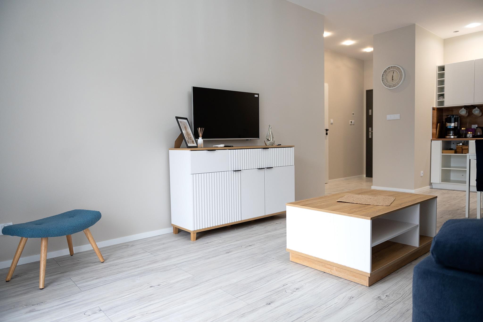 Lejlighedskompleks direkte på bredden af Dziwna-floden. Udover overnatning tilbyder det et SPA-område med indendørs swimmingpool, spabad og sauna. Kun 700 m til stranden. Ca. 250 m til feriestedets centrum. En komfortabel og meget rummelig lejlighed (60 m2) ligger i den høje stueetage. Lejligheden består af en stor stue i forbindelse med et veludstyret køkken, et soveværelse med dobbeltseng og et badeværelse med bruser (der er en vaskemaskine). I stuen er der dobbelt sovesofa, bord og tv. Lejligheden har en stor altan med et sæt havemøbler (indgang fra stue og soveværelse). Centralvarme (+aircondition). Trådløst internet er tilgængeligt. Komplekset har en indendørs swimmingpool (+ soppebassin for børn), et boblebad, en sauna og et fitnessrum. Der er en parkeringsplads for bilister. Prisen for opholdet inkluderer: el- og vandforbrug, swimmingpool, sauna, spabad, fitnessrum, parkeringsplads i underjordisk garage, internet. Barneseng og høj stol til rådighed på anmodning. Dziwnów har en ren, sandet og bevogtet strand, adskilt fra byen af en række klitter. Om sommeren kan børn bruge vandrutsjebanen og oppustelige hoppekonstruktioner. Der stikker træbølgebrydere op af havet, som måger ofte sidder på. Attraktionen er gåpromenaden, der strækker sig langs stranden. Dziwnóws turistattraktion er vindebroen over Dziwna-floden. Det har udsigt over floden. Dens komplekse stålstruktur, malet rød, tiltrækker opmærksomhed på afstand. Processen med at løfte broen er meget spektakulær. I den lokale fiskerihavn kan du købe fisk direkte fra kutteren. Der er også salgsstande med røget fisk og andre fiskeprodukter.