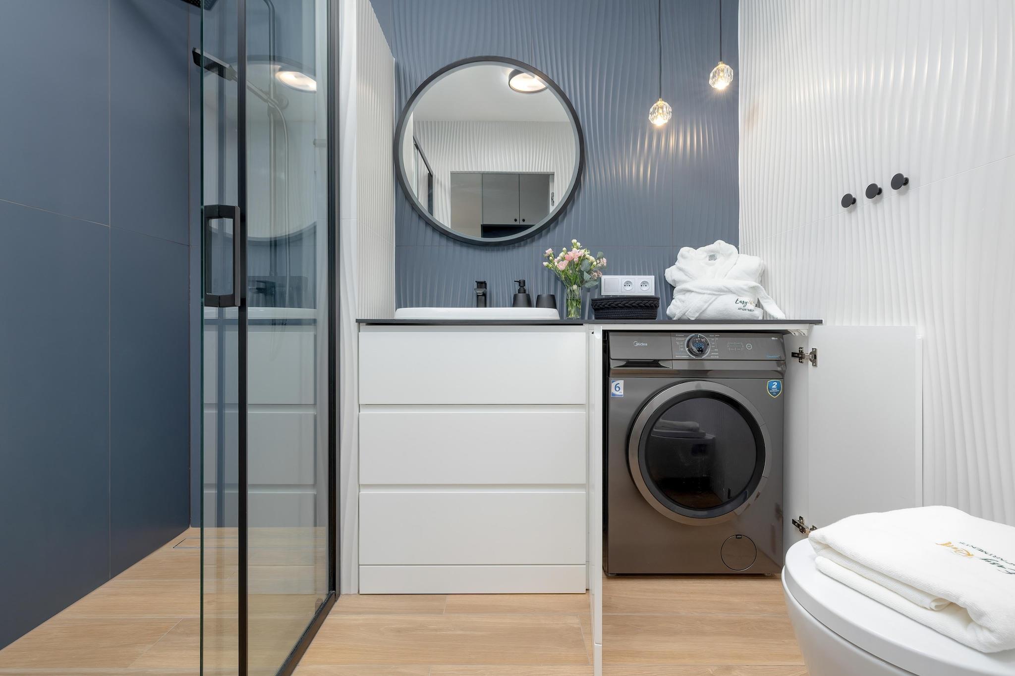 Et lejlighedskompleks beliggende direkte ved bredden af Dziwna-floden. Ud over lejlighederne tilbyder det et SPA-område med indendørs pool, spabad og sauna. Stranden ligger ca. 700 m væk. Den komfortable lejlighed ligger i stueetagen. Den består af en stue forbundet med et veludstyret køkken, et soveværelse med en bred dobbeltseng og et badeværelse med bruser (der er en vaskemaskine). I stuen er der en dobbelt sovesofa, et bord og et tv. Lejligheden har en stor overdækket altan. Centralvarme. Trådløst internet er tilgængeligt. Komplekset har en smuk indendørs swimmingpool (+ børnepool), spabad, sauna og fitnessrum. Der er en parkeringsplads for dem, der ankommer i bil. Prisen for dit ophold inkluderer: el- og vandforbrug, swimmingpool, sauna, spabad, fitnessrum, parkeringsplads i den underjordiske garage, internet. Barneseng og højstol til rådighed på anmodning. Dziwnów har en ren, sandet og bevogtet strand, adskilt fra byen af en stribe klitter. Om sommeren kan børn nyde vandrutsjebanen og oppustelige hoppekonstruktioner. Ud af havet rager træbølgebrydere, hvorpå der ofte sidder måger. Om sommeren kan du også tage en tur på en banan eller et hjul trukket af en motorbåd. En yderligere, fantastisk attraktion ved stranden er promenaden, der strækker sig langs klitterne på den brede sandstrand. Dette er et ideelt sted for vandrere. Mens du slapper af, kan du nyde den smukke udsigt og solnedgangen. I mellemtiden kan du sidde på de bænke, der er blevet installeret langs promenaden. På den lokale fiskerihavn kan du købe fisk direkte fra kutteren. Der er også salgsstande med røget fisk og andre fiskeprodukter.
