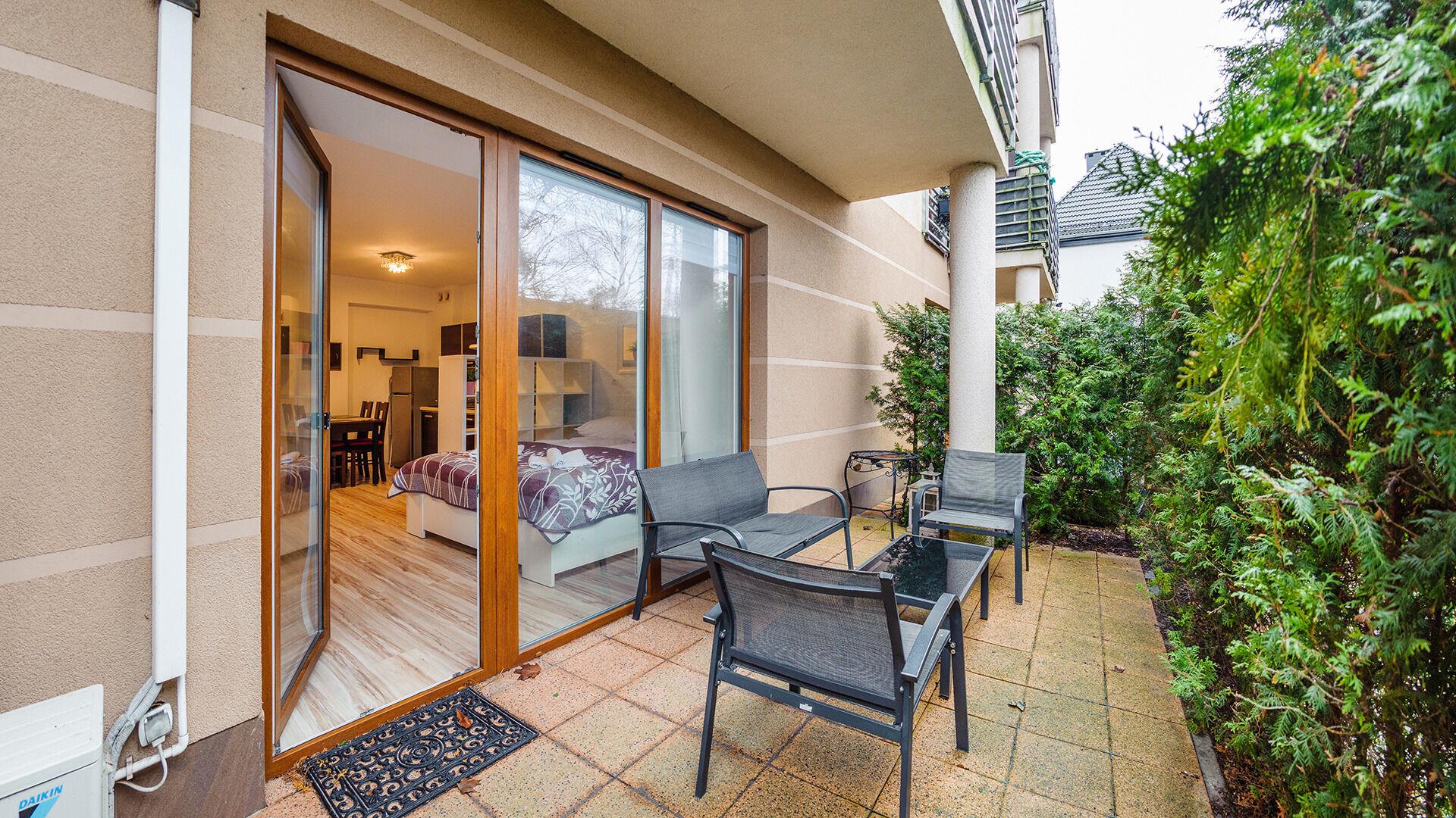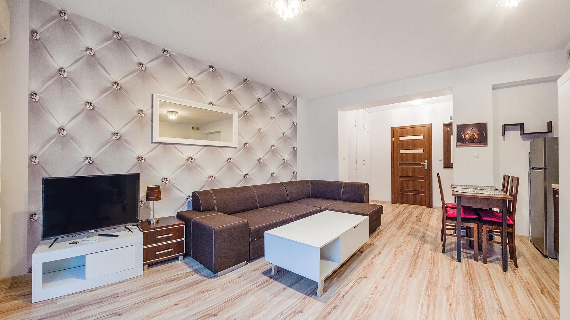 • Haustiere sind in der ausgewählten Wohnung erlaubt. Die Kosten für den Aufenthalt mit einem Haustier betragen 40 PLN pro Tag.