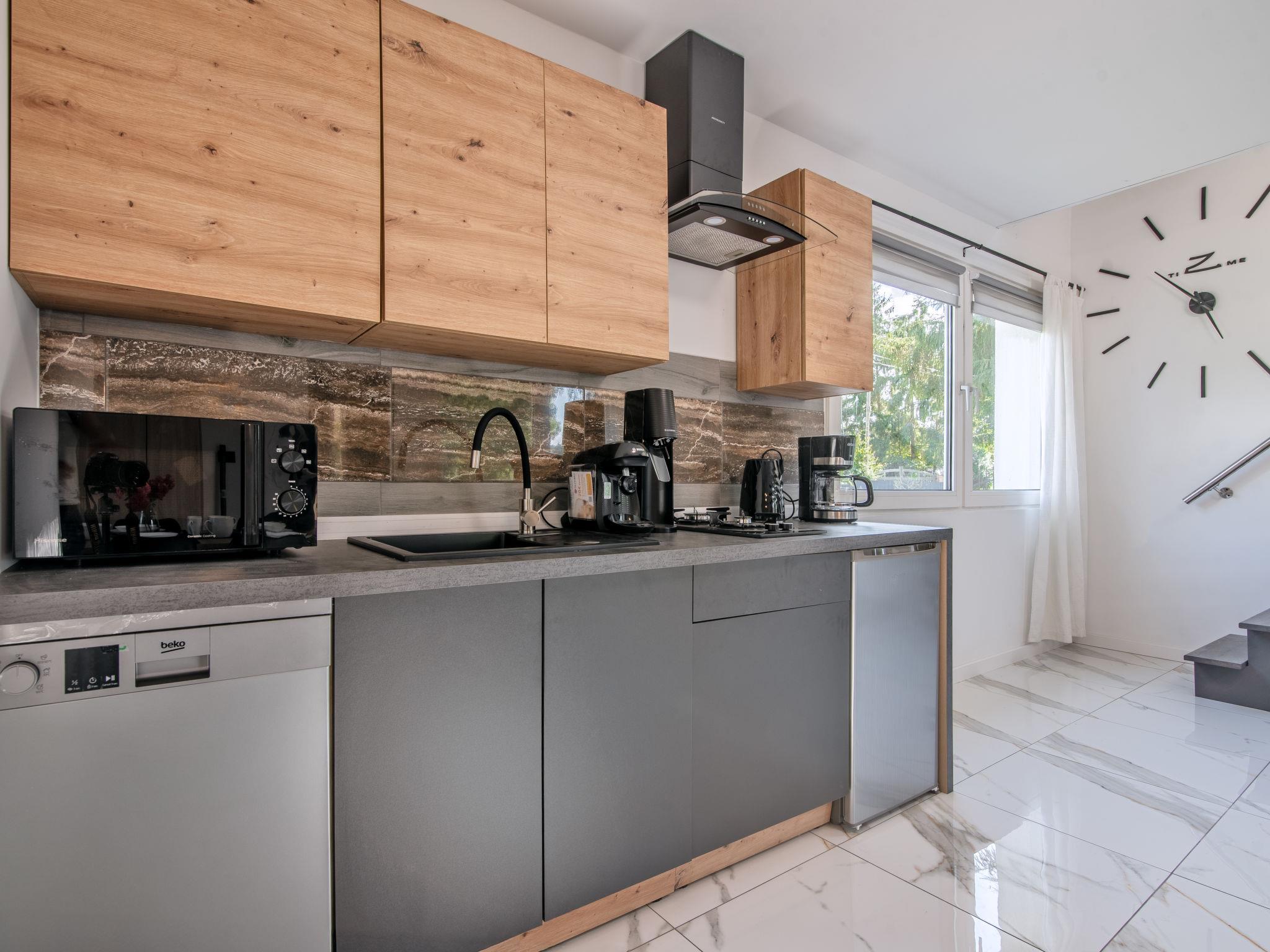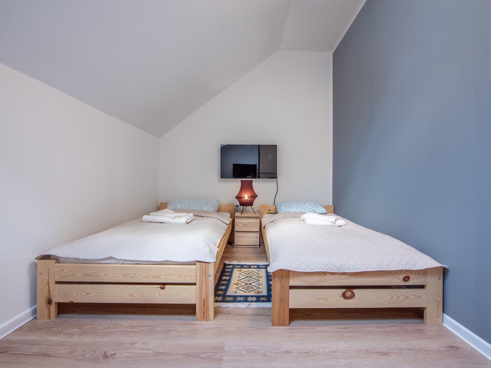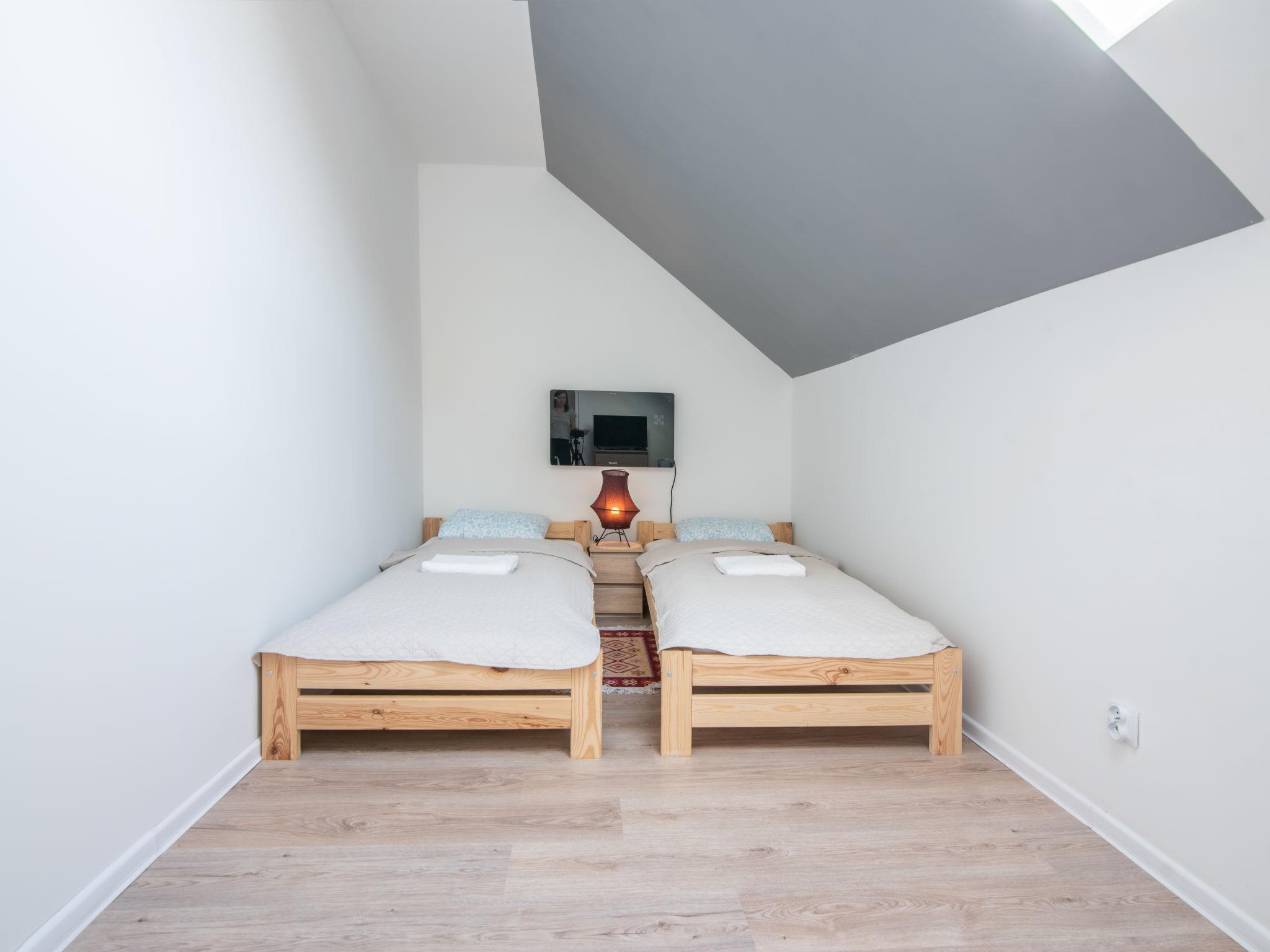 "Gesia Kepa", 3-room house 70 m2 on 2 levels. Comfortable and modern furnishings: living/dining room with 1 sofabed, flat screen, radio and hi-fi system. Exit to the garden. Open kitchen (dishwasher, 2 ceramic glass hob hotplates, microwave, electric coffee machine) with dining table. Shower/WC. Electric heating, solar energy heating, boiler (50 litres). Top floor: 1 room with 1 french bed. 1 room with 2 beds. Garden. Deck chairs (2). View of the countryside. Facilities: Internet (WiFi). Parking at the house. Maximum 1 pet/ dog allowed.