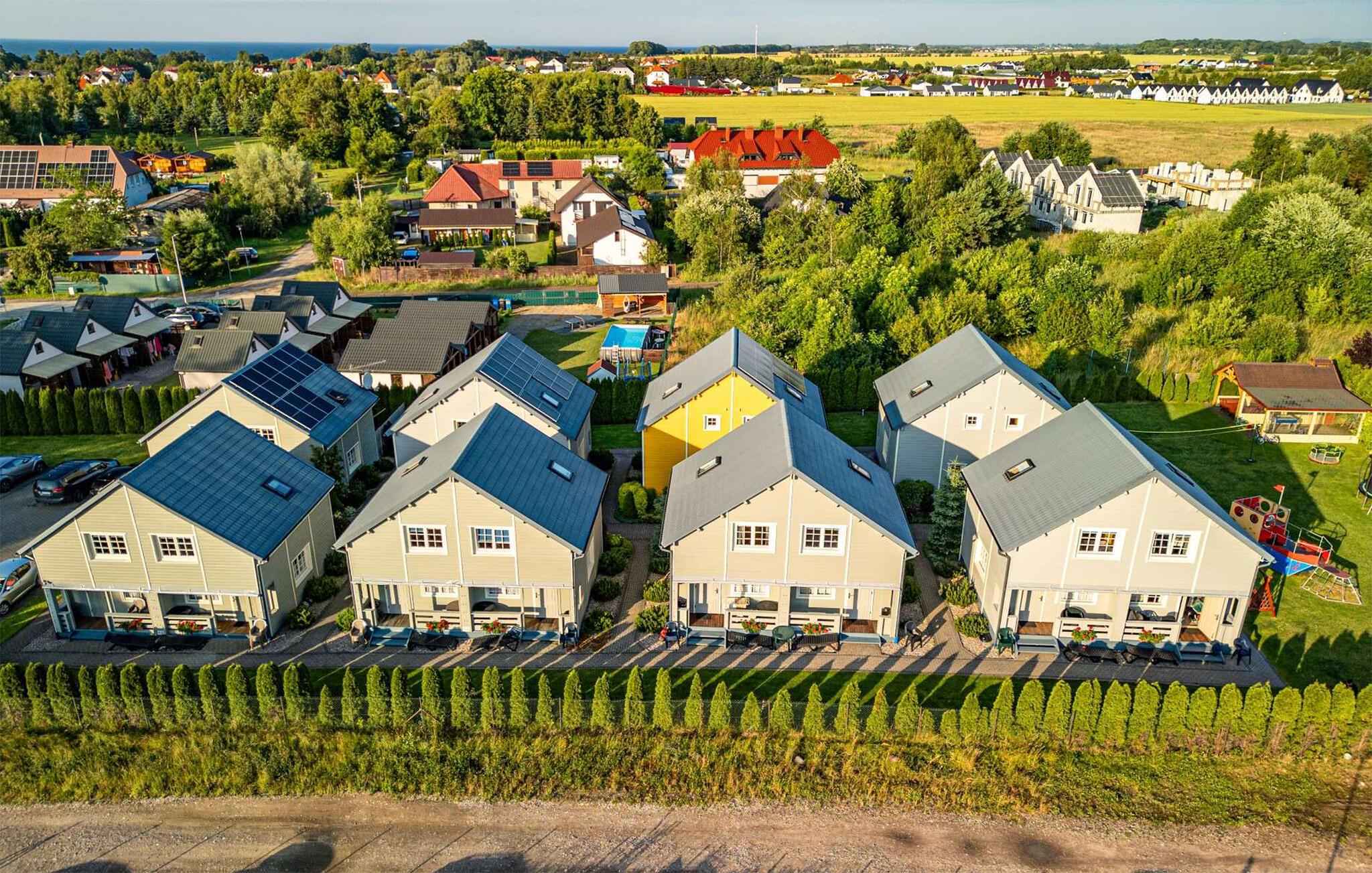 Det sikre fællesområde lokker jeres børn til at lege udendørs med en række forskellige legemuligheder. Udfordr hinanden ved bordfodboldbordet, spil barfodsvolleyball på den velholdte græsplæne, og nyd den idylliske atmosfære under hyggelige grillaftener.