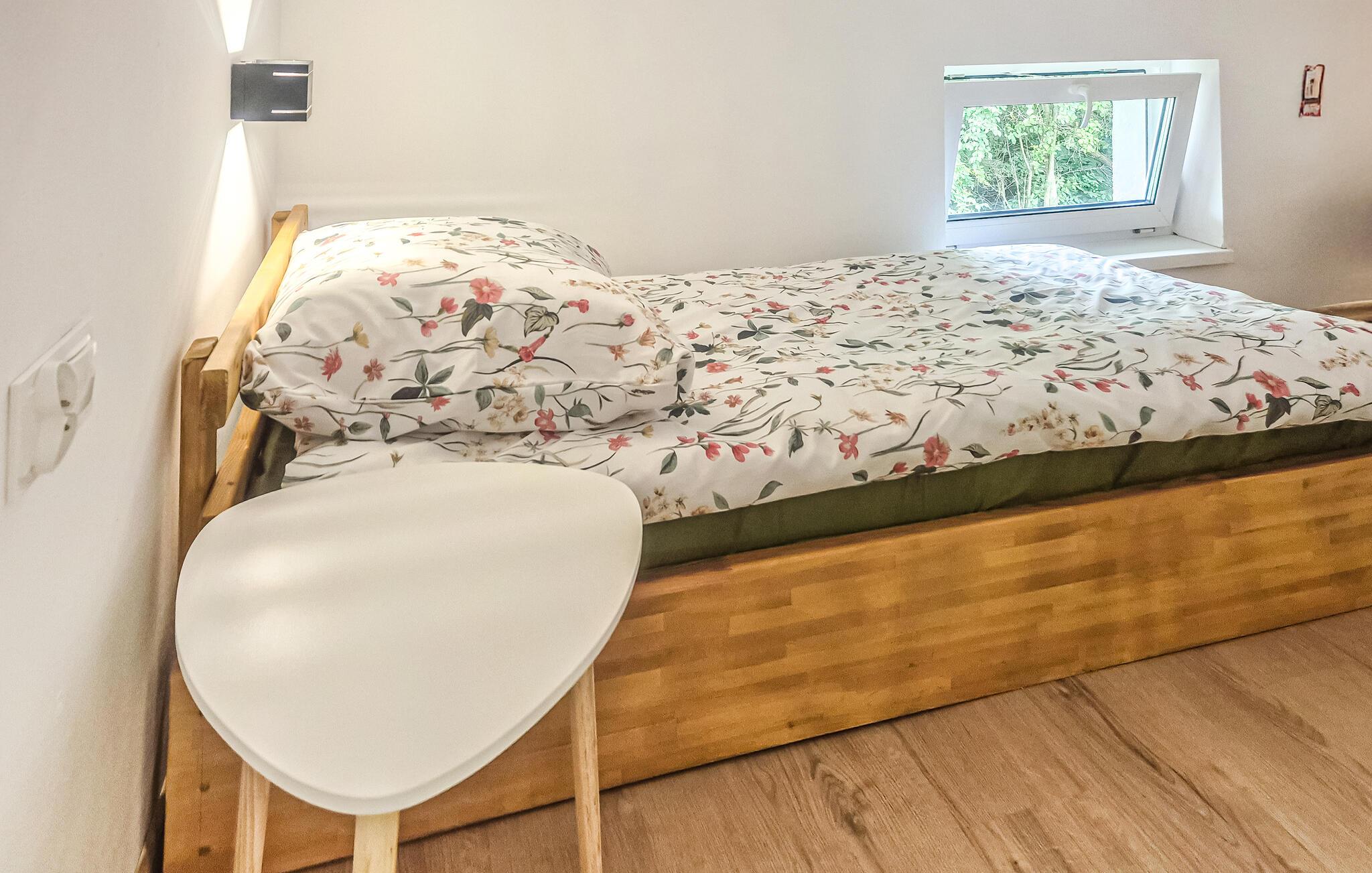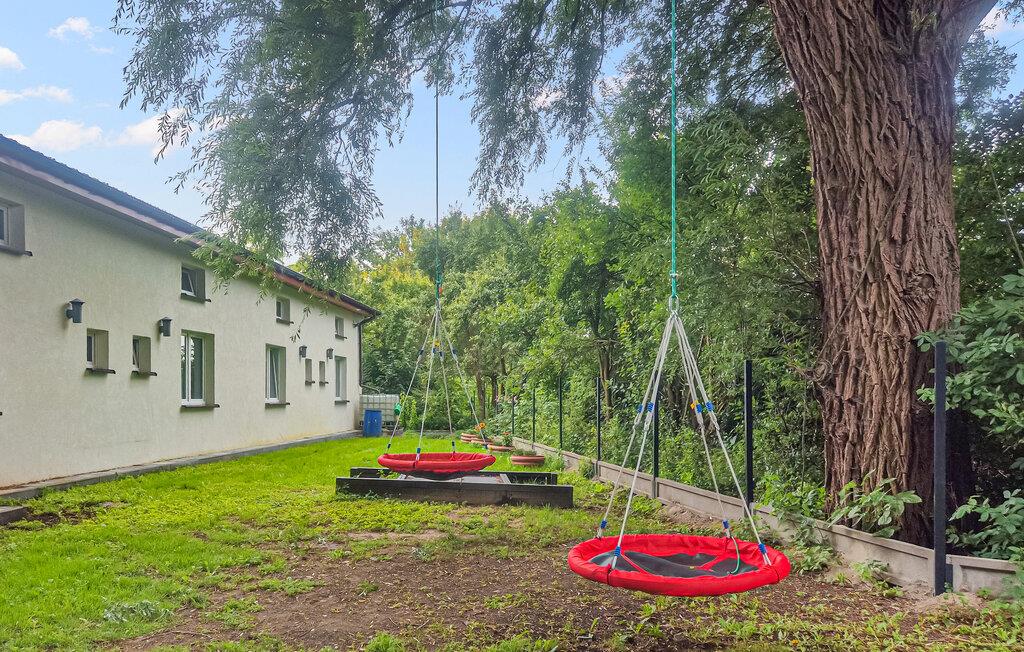 Oplev afslappende dage i dette hyggelige feriehus ikke langt fra kysten. Dette charmerende feriehus byder jer velkommen med en lys og venlig atmosfære og tilbyder et behageligt tilflugtssted, mens I udforsker regionens natur og kultur samt kilometervis af sandstrande. Tilbered jeres yndlingsmåltider og planlæg jeres aktiviteter ved det indbydende spisebord, hvor I kan slappe af om aftenen med sjove spil. Jeres børn kan få nye venner på dejlige legepladser i den rummelige, fælles have. I mellemtiden kan I forkæle jer selv med afslappende øjeblikke i hængekøjen eller snakke over en forfriskende drink på terrassen og nyde hyggelige timer omkring grillen. Tag en bådtur på Drawsko-søen og vandr eller cykl gennem vidtstrakte skove. Slentr gennem den historiske markedsplads i Drawsko Pomorskie og besøg det lokale slot. Tag en dagstur til Drawienski Naturpark, observer dyrelivet eller oplev rustikke vandrestier. Flyv med hjemmelavede drager på stranden og prøv polsk køkken i hyggelige restauranter.
