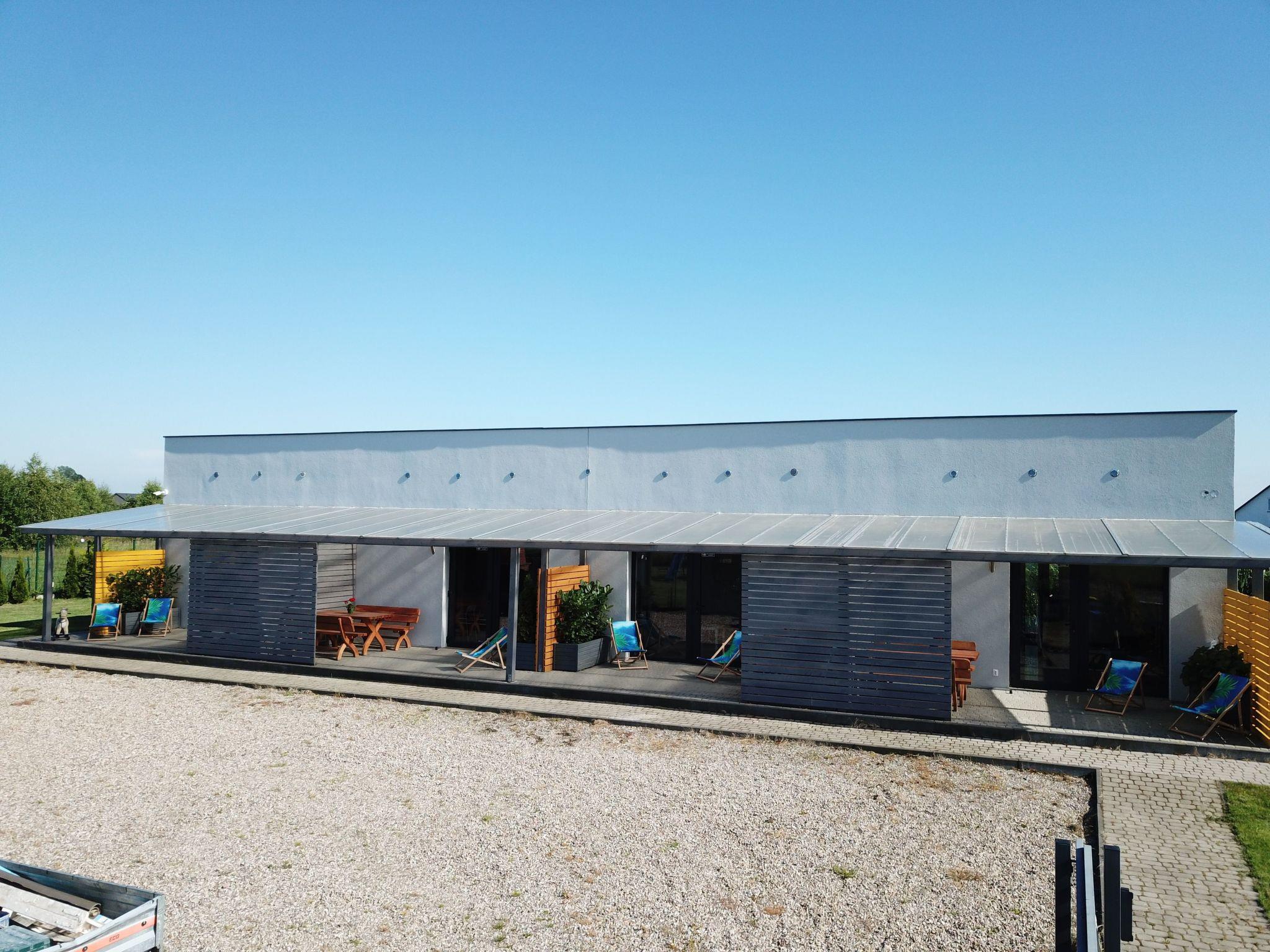 Our property is 1 of 4 terraced houses. It is located in a secluded place in Gaski, 1000m from the beach and 800m from the centre. It is situated on a dead end street as the last building, so there is no car traffic and noise. It is a one-storey brick building, year-round. There are 4 terraced houses. Each house is a single-storey house of about 40m2. It consists of a bedroom, a bathroom and a living room with a kitchenette.