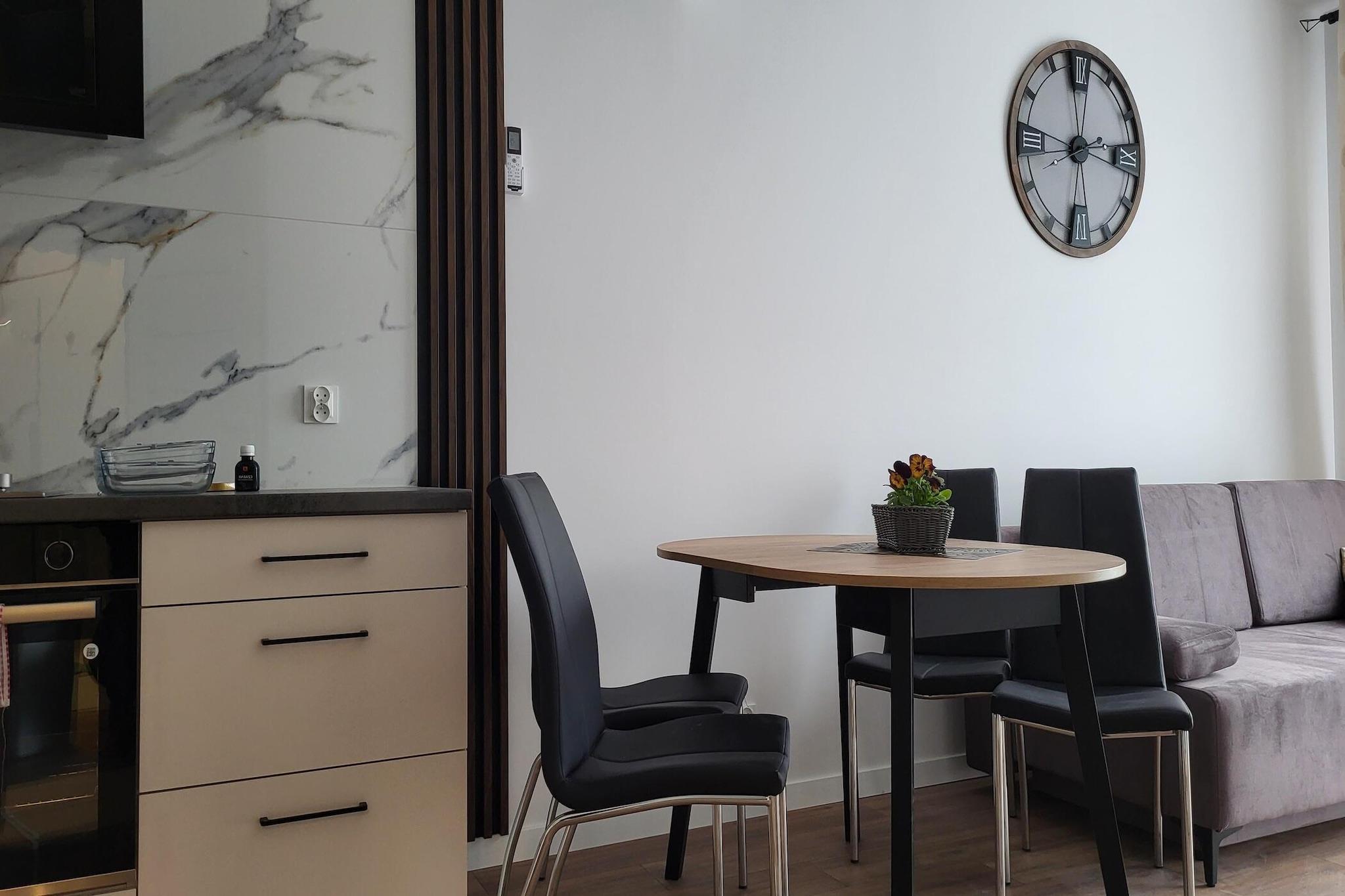 Den lille lejlighedsbygning har en ideel beliggenhed i centrum af feriestedet, kun 170 m fra den smukke strand ved havet. Byens karakteristiske vartegn - det imponerende fyrtårn - ligger ca. 350 m væk. En komfortabel lejlighed med aircondition, beliggende på 3. sal (der er elevator) i en lille bygning. Meget tæt på havet. Lejligheden har en komfortabel balkon med et sæt loungemøbler. Lejligheden består af en stue i forbindelse med køkkenet, et soveværelse og et badeværelse med bruser. I stuen er der en 2-personers sofa og tv. Køkkenet er meget veludstyret. Lejligheden har varme. Trådløst internet er tilgængeligt. Der er gratis parkering foran bygningen (1 plads). Prisen for opholdet inkluderer: sengelinned, håndklæder, el- og vandforbrug, aircondition, slutrengøring, internet, parkering (1 plads). Gaski er et lille sommerferiested ved Østersøen, men i sæsonen er der også mange butikker og barer. Der er flere restauranter og butikker, også åbne uden for feriesæsonen, i nabolandet Sarbinowo. Gaski er et ideelt sted for feriegæster, der ønsker at tage en pause fra byens stress og jag, som værdsætter fred og ro, såvel som for familier med børn. Den største attraktion ved Gaski er det næststørste fyrtårn i Polen (51,2 m højt). Fyrtårnet i Gaski er åbent for besøgende. Fra toppen kan du beundre et smukt panorama over området. Nærliggende attraktioner: Strandstriben omkring Gaski er et ideelt sted, ikke kun for naturskønne gåture, men også for længere cykelture. Den baltiske cykelrute R-10 løber igennem her, hvilket giver dig mulighed for bekvemt at besøge de nærliggende badebyer på cykel: Sarbinowo, Chlopy, Mielenko, Mielno.