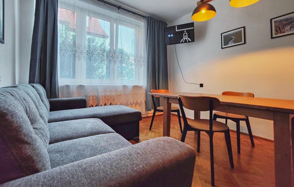 Oplev en afslappende og oplevelsesrig ferie i denne ferielejlighed i Gdansk. Den tilbyder jer alt, hvad I har brug for til et afslappende ophold. Gør jer det behageligt på den komfortable grå sofa og nyd en pause med en god bog eller jeres yndlingsserie. Brug det store træbord til en fælles morgenmad eller en hyggelig middag med familie og venner.