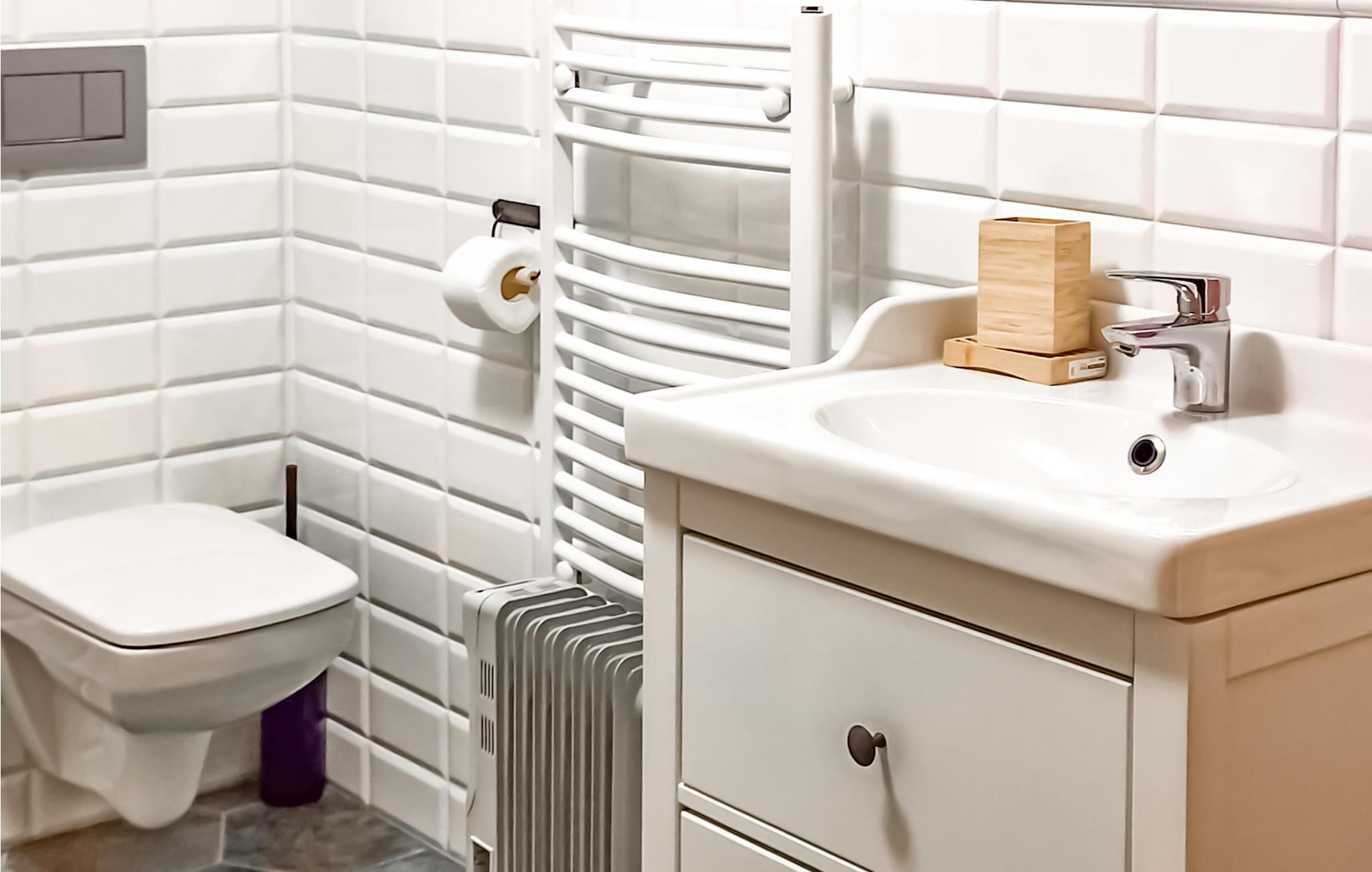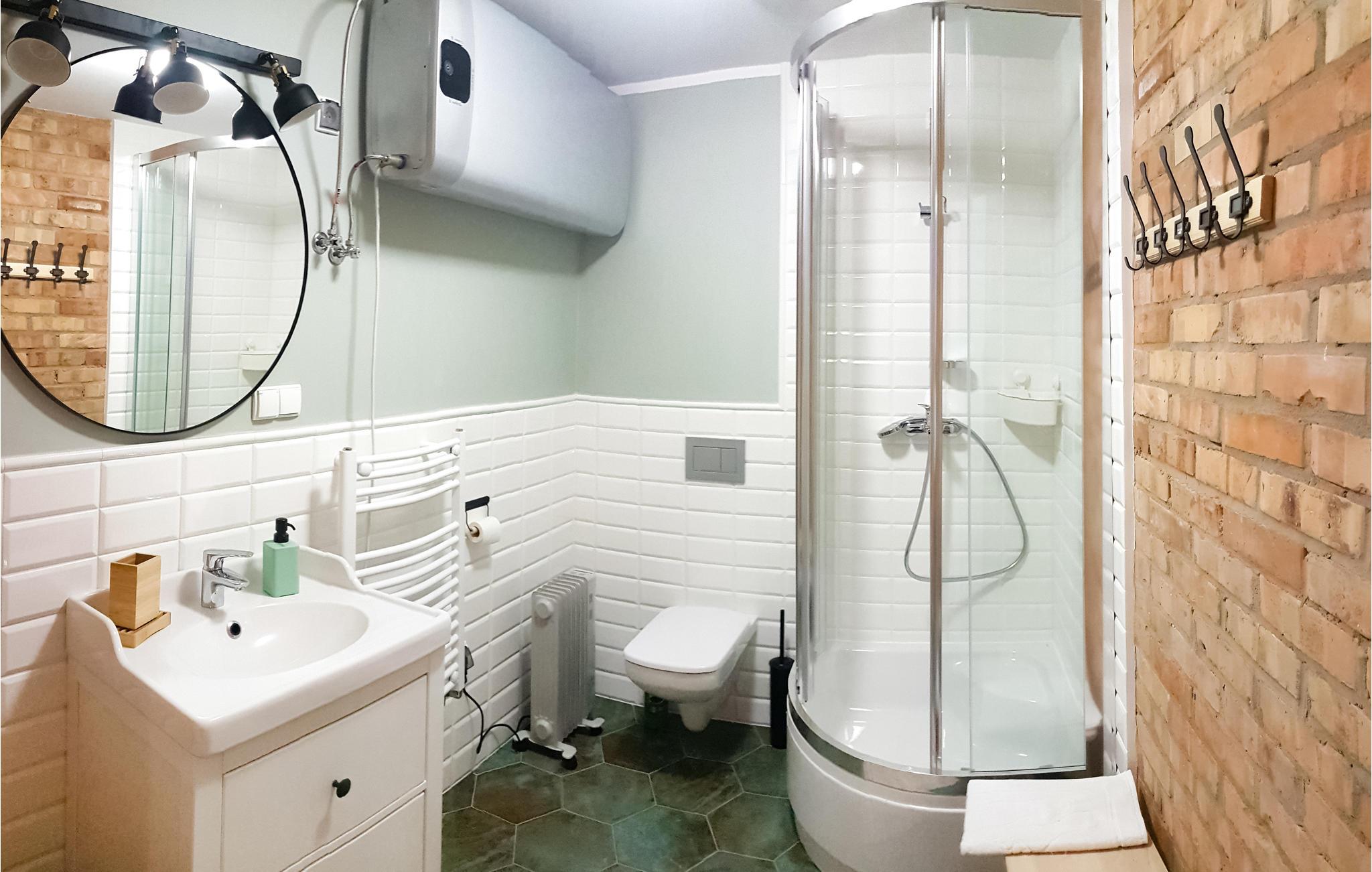 Badeværelse (nr. 1) - WC. Varmt og koldt vand. Bruser