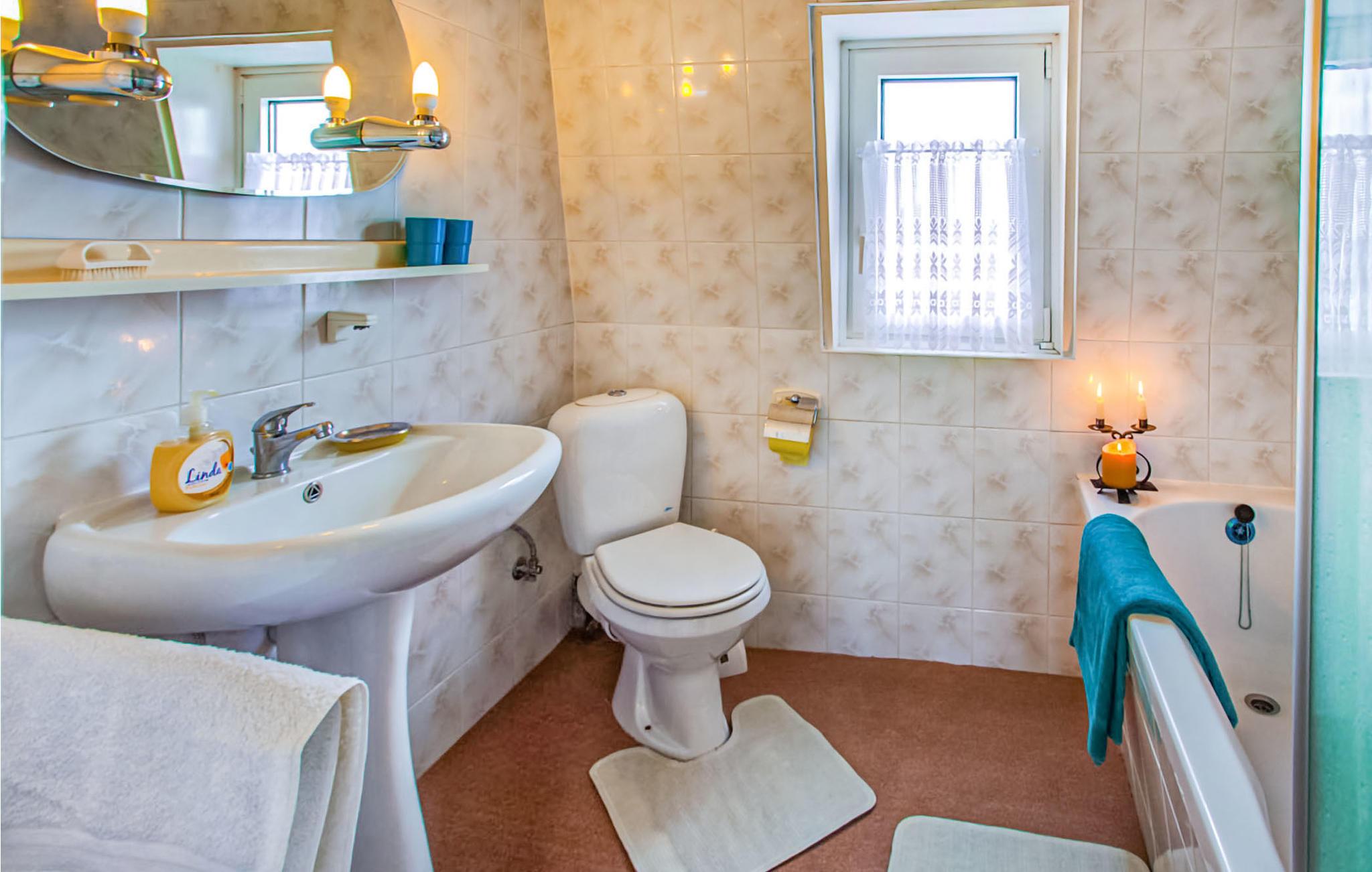 Badeværelse 4m2 (nr. 3) - WC. Varmt og koldt vand. Bruser og badekar