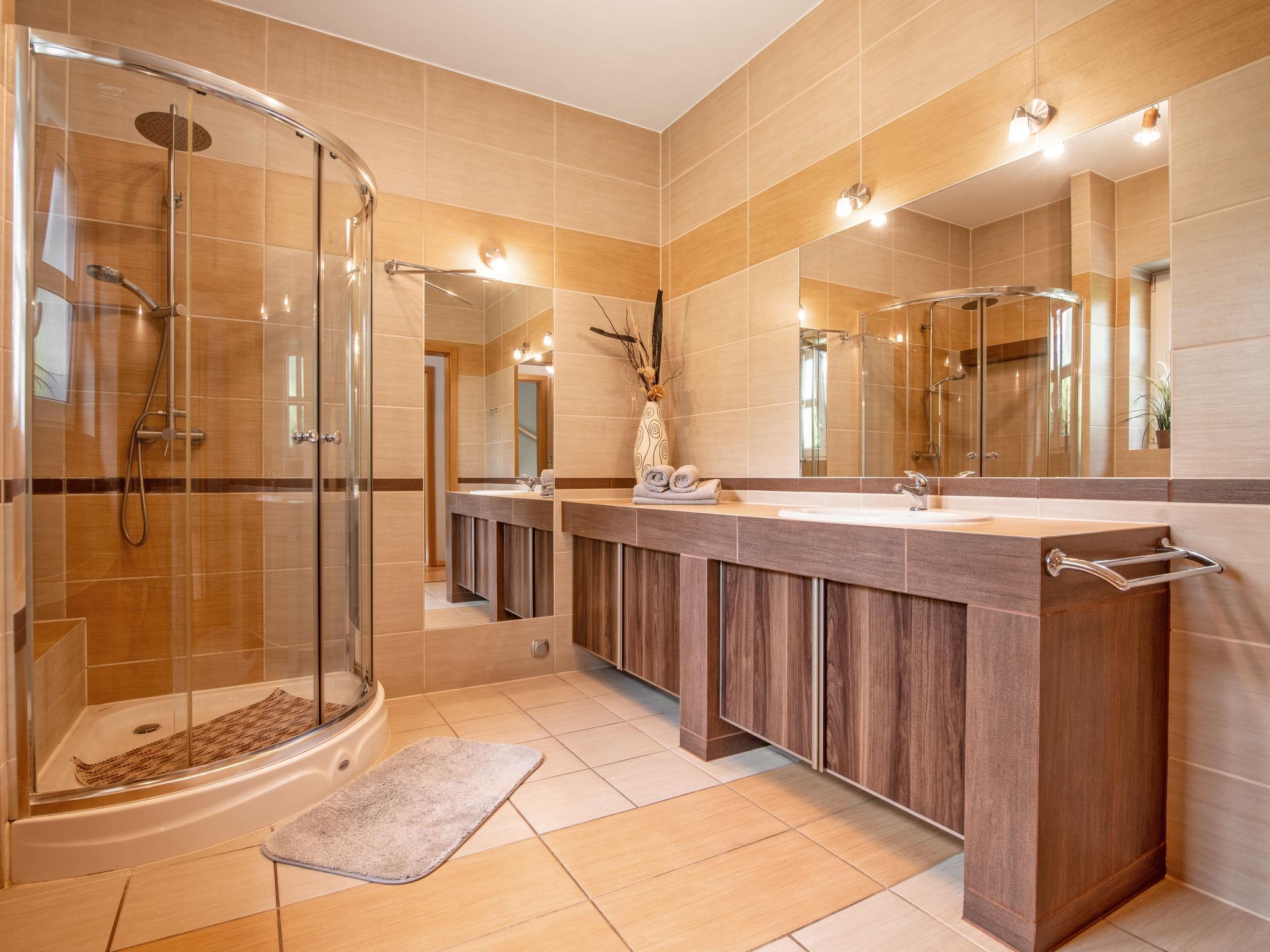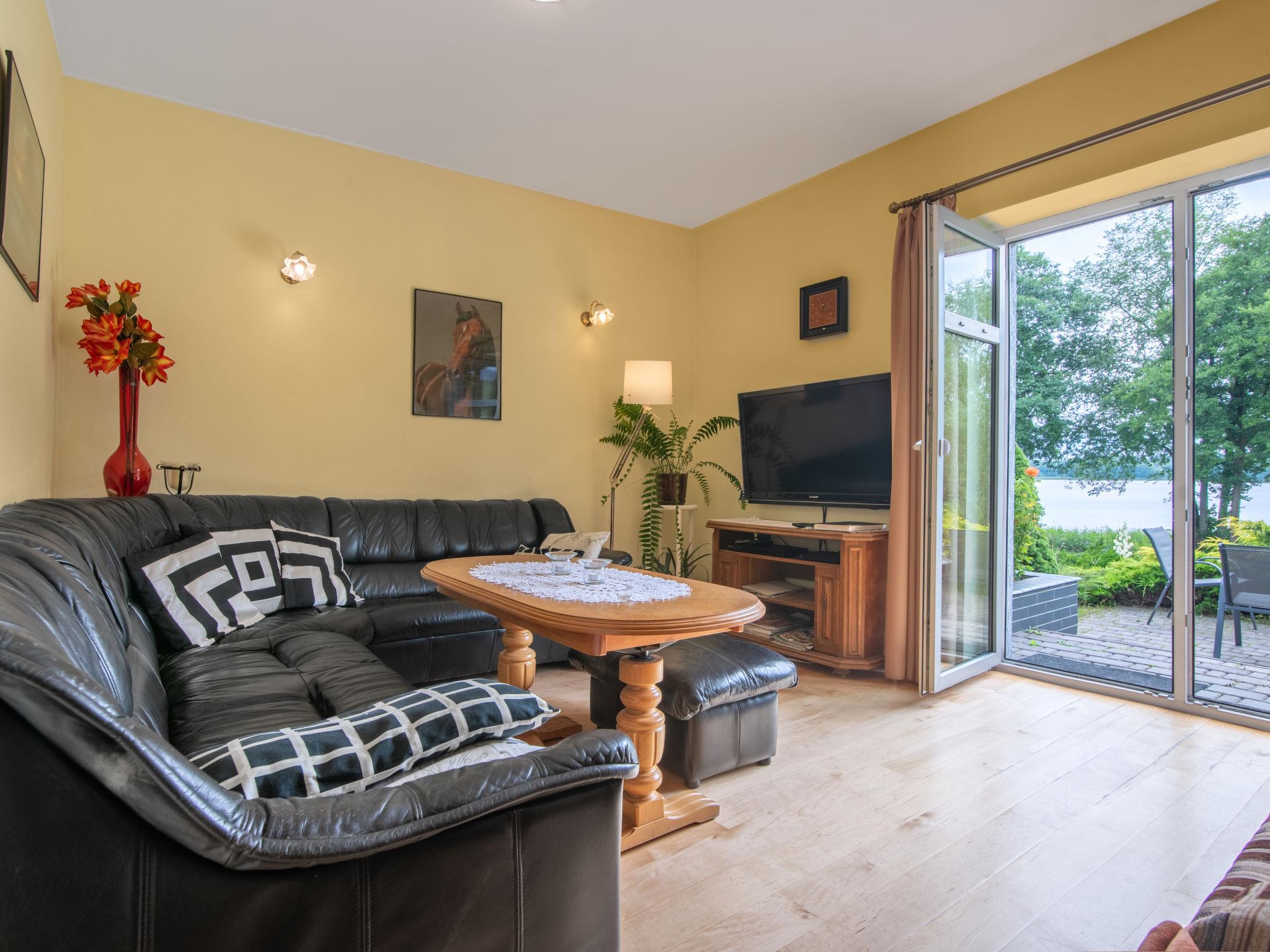 2-room apartment 60 m2, on the ground floor. Modern furnishings: living room 15 m2 with 1 double sofabed, satellite TV, radio and DVD. Exit to the garden, to the terrace. 1 room 12 m2 with 1 double bed (2 x 80 cm, length 200 cm). With Dressing room. Kitchen 8 m2 (4 ceramic glass hob hotplates, microwave, electric coffee machine) with dining table. Exit to the terrace. Shower/WC. Heating, forced-air heating. Terrace. Terrace furniture. Marvellous panoramic view of the lake and the forest. Facilities: washing machine, dryer. Internet (WiFi, free). Parking at the house. Please note: non-smokers only. Maximum 1 pet/ dog allowed. Private entrance, smoke alarm. Bookable with the owner on request (extra): 1 additional room for 3 persons on the attic floor.