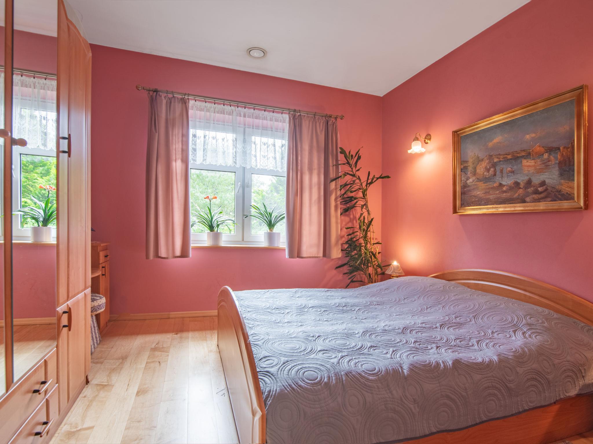 The house is located at the edge of the nature reserve "Drawski Park Krajobrazowy", in a quiet position between the two lakes Krosino and Okole Wielkie and by the Drawa river. 2-family house "Gleboczek 21", built in 2008, surrounded by trees. In a quiet, sunny, elevated position, along the wooded area, 10 m from the lake, 200 m from the river, in the countryside. For shared use: property 3'500 m2 (fenced), garden lawn and trees. Arbour, children's playground (swing). Private: terrace, barbecue. In the house: trampoline, washing machine, tumble dryer. Available: canoe, boat (extra). Motor access to the house (100 m via unmade road). Parking at the house on the premises. Grocery 5 km, supermarket 12 km, restaurant 5 km, bus stop 5 km, railway station 12 km, grass beach "mala przy dzialce" 10 m. Tennis 5 km, riding stable 2 km. Please note: car recommended. Fishing [permit required]. The owner lives in the same residence. The owner has a dog. Please on the property have the dog on a lead. It is possible to rent canoes (extra). Numerous discovery trails are near the house. The second sandy beach with a large jetty on Lake Krosino at the mouth of the Drawa to the lake (approx. 300 m from the facility). DE channels on TV.